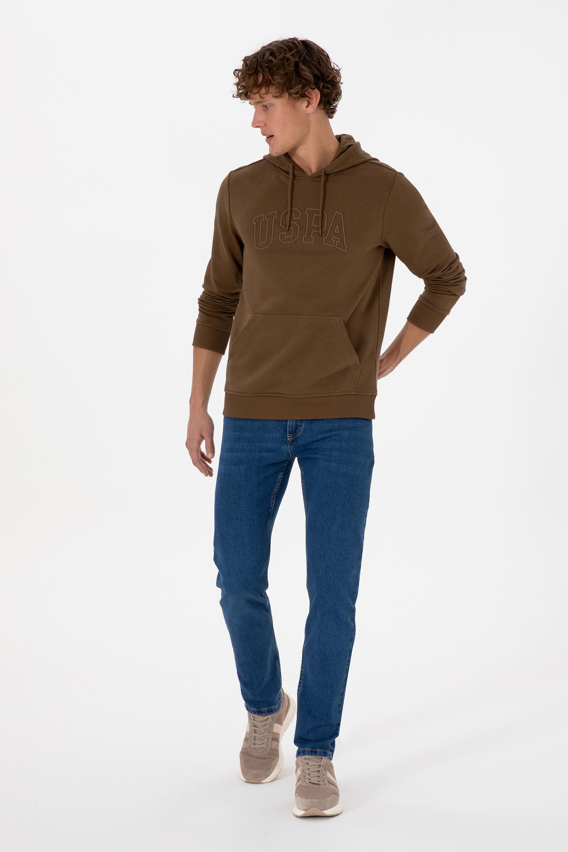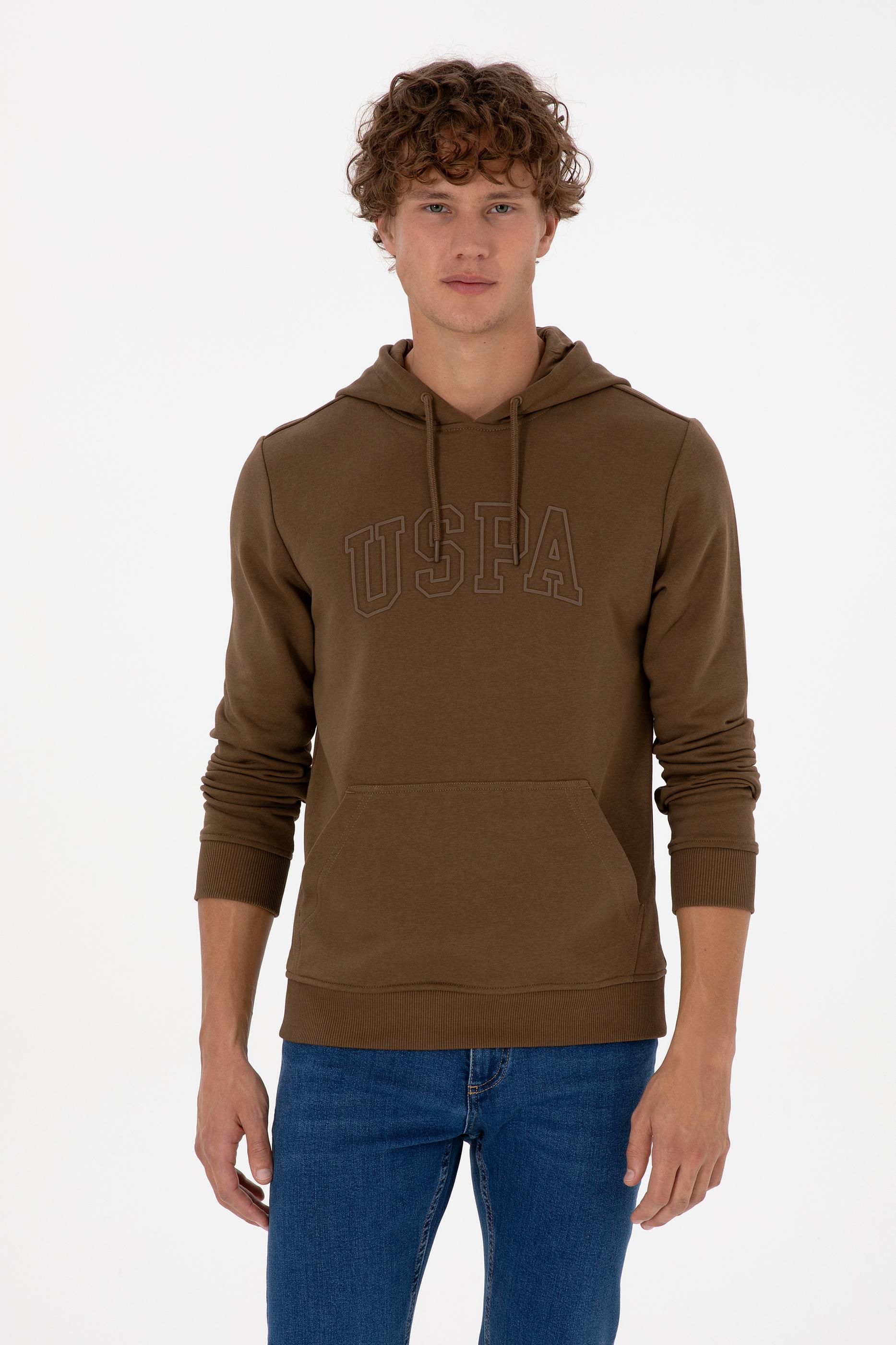 - Erkek Regular Fit Kapüşonlu Haki Basic Sweatshirt
