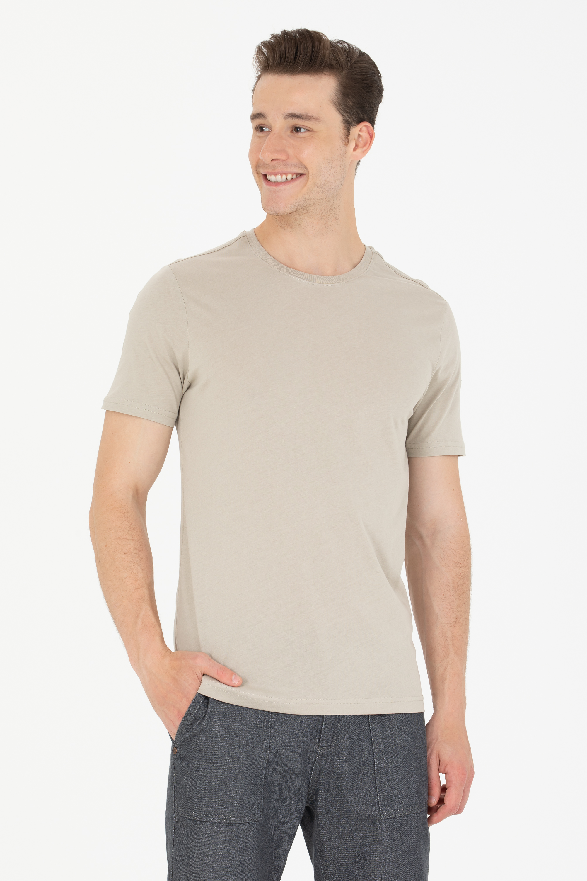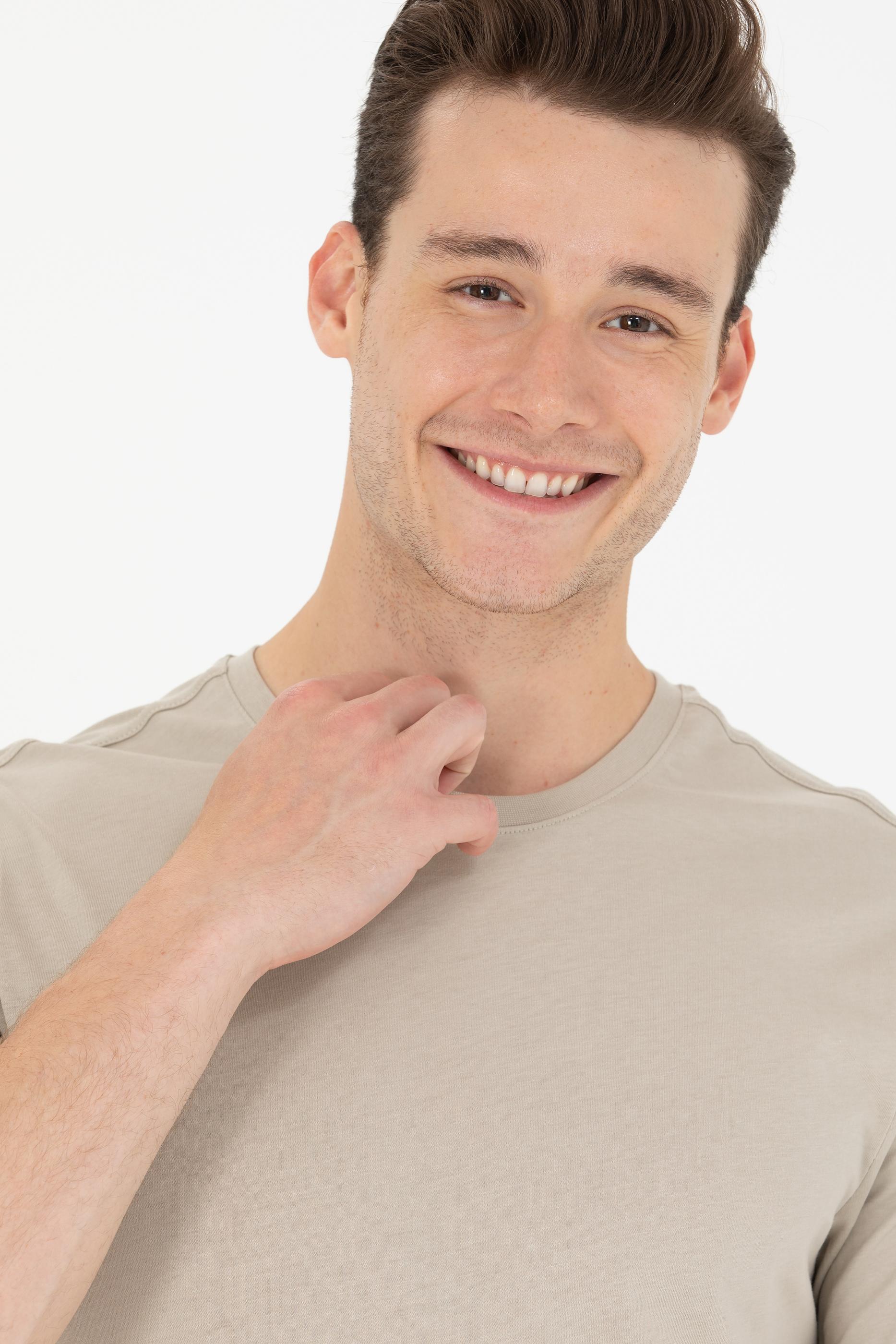 Erkek Haki Basic Bisiklet Yaka Tişört - 50264916048