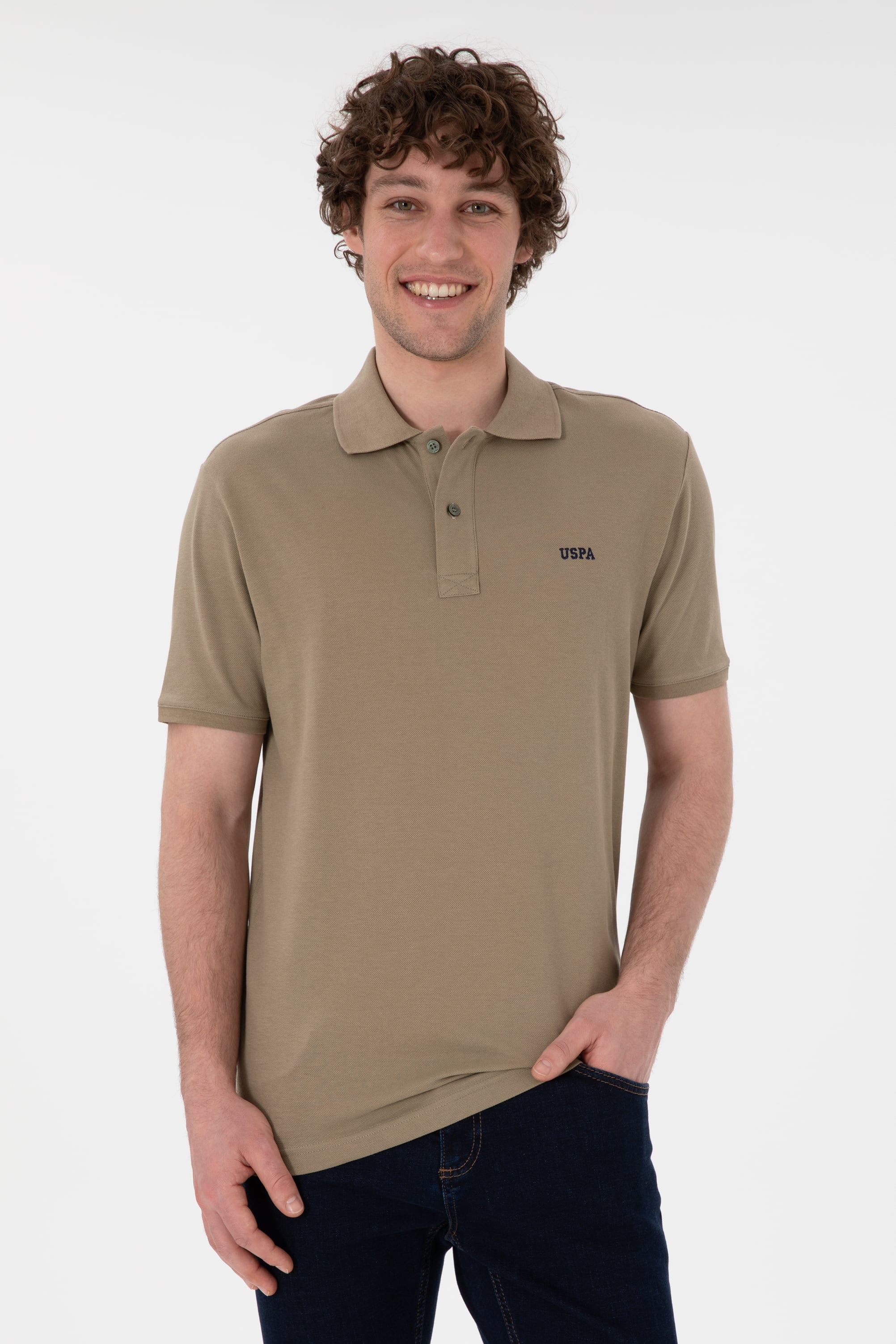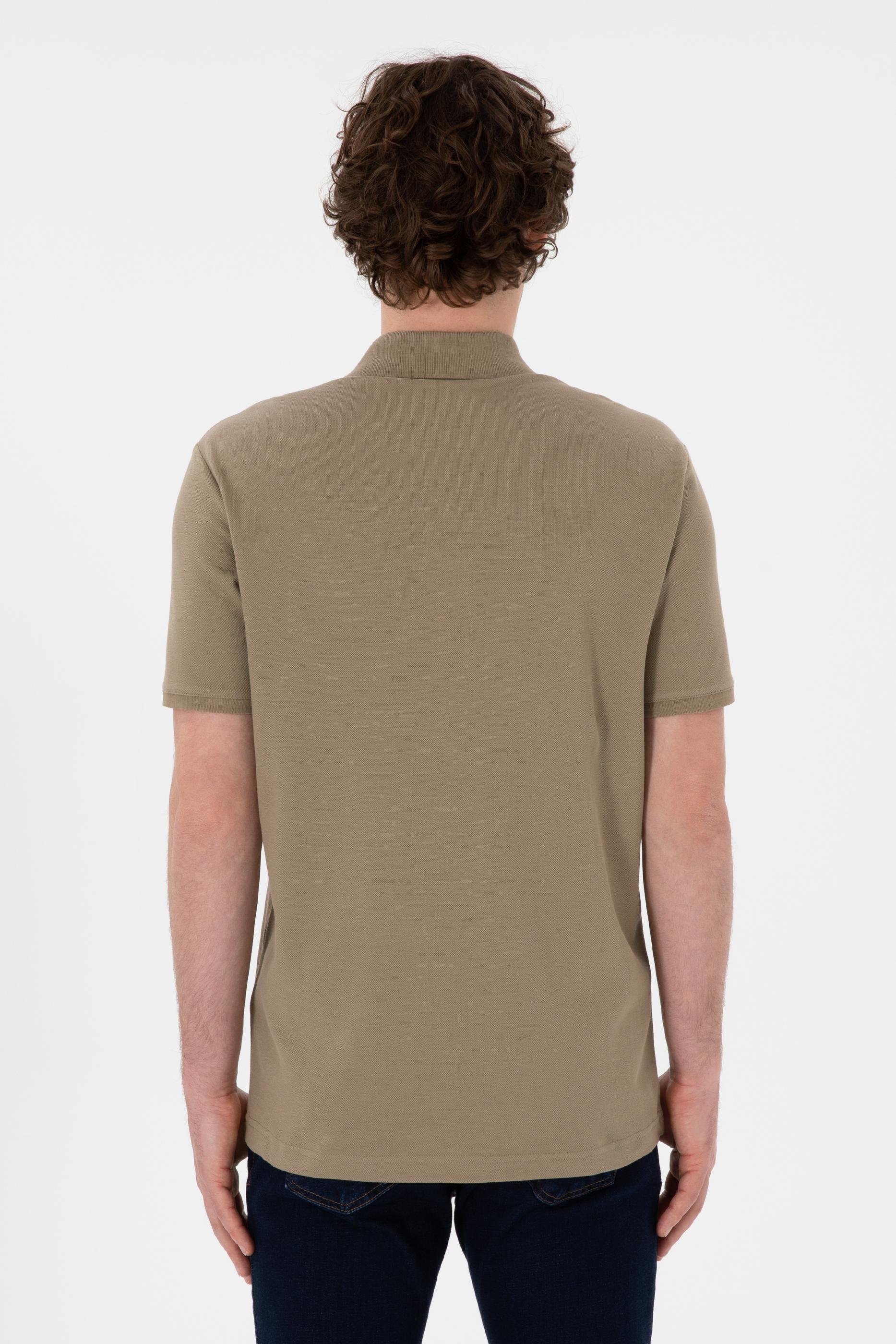 Erkek Regular Fit Polo Yaka Haki Basic Tişört