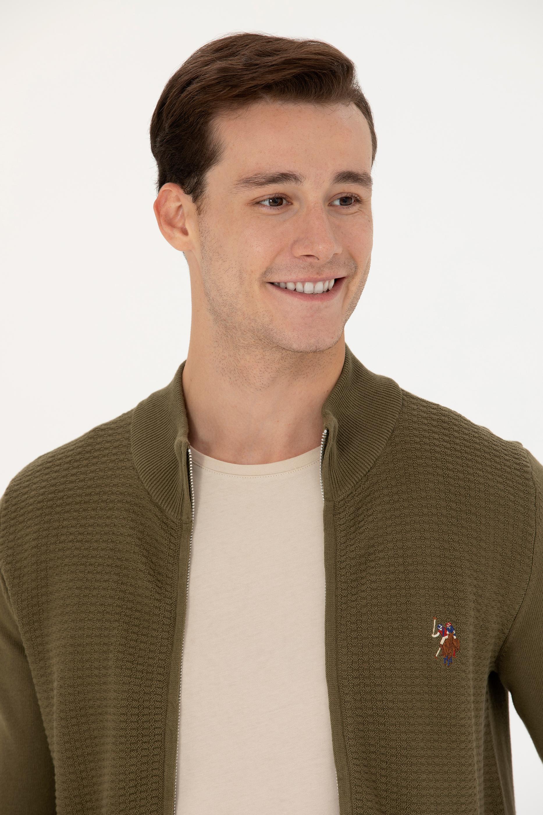 Erkek Haki Basic Triko Hırka