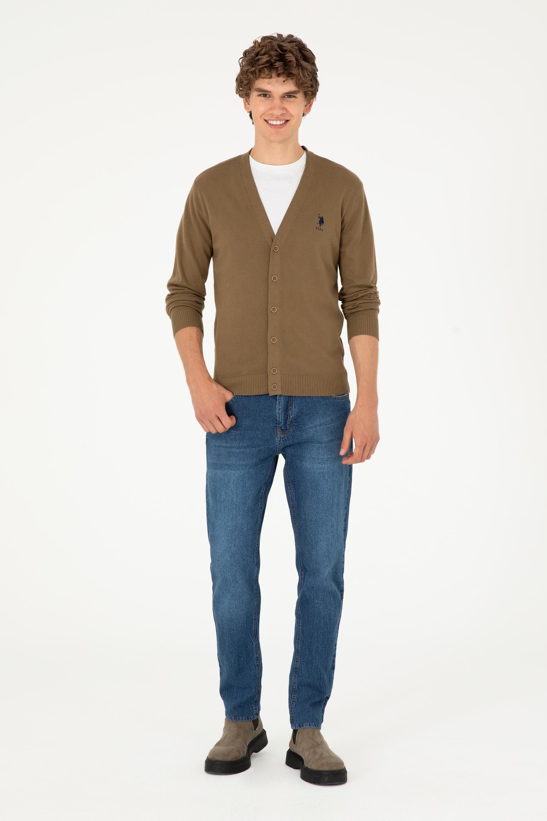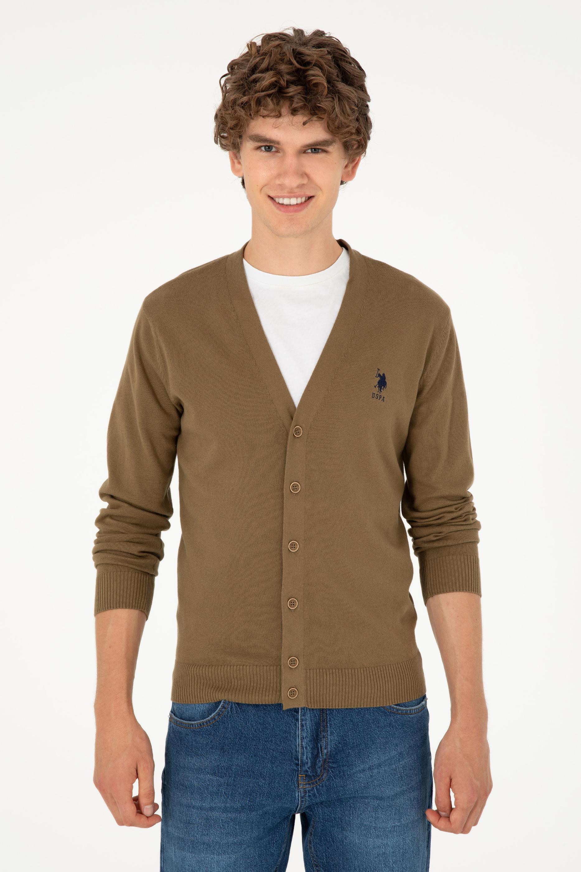 Erkek Haki Basic Triko Hırka