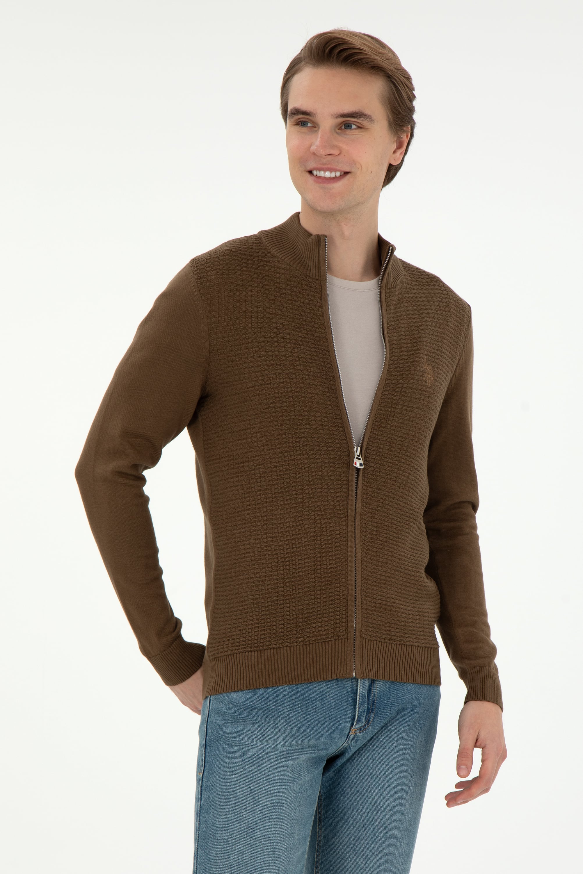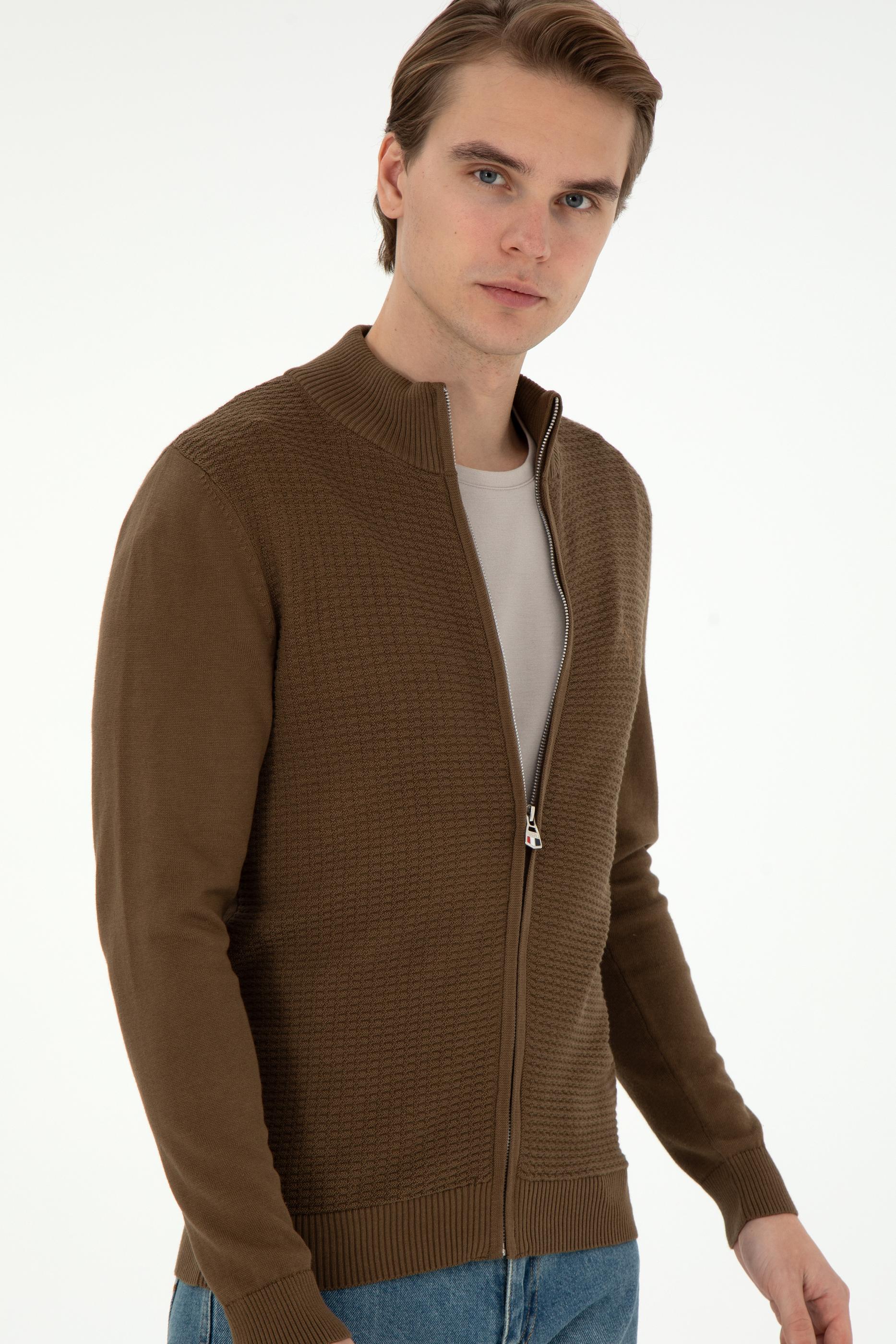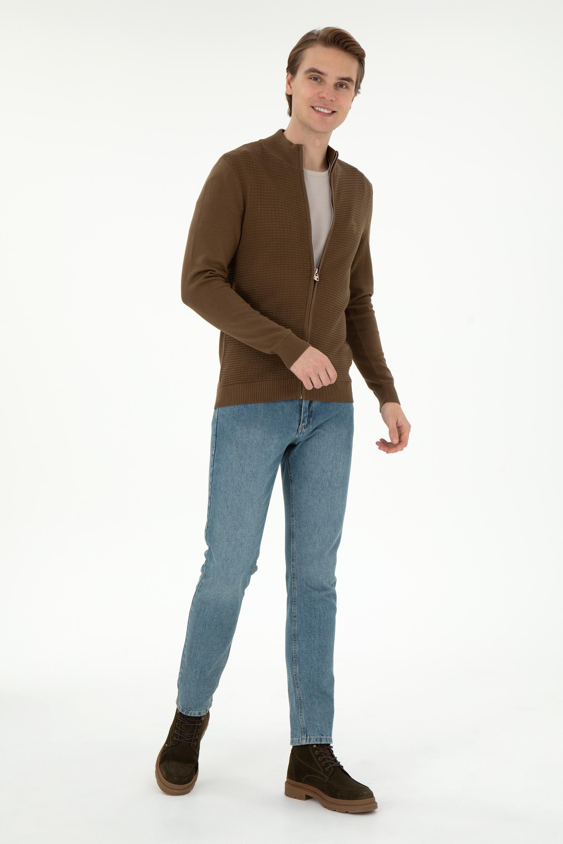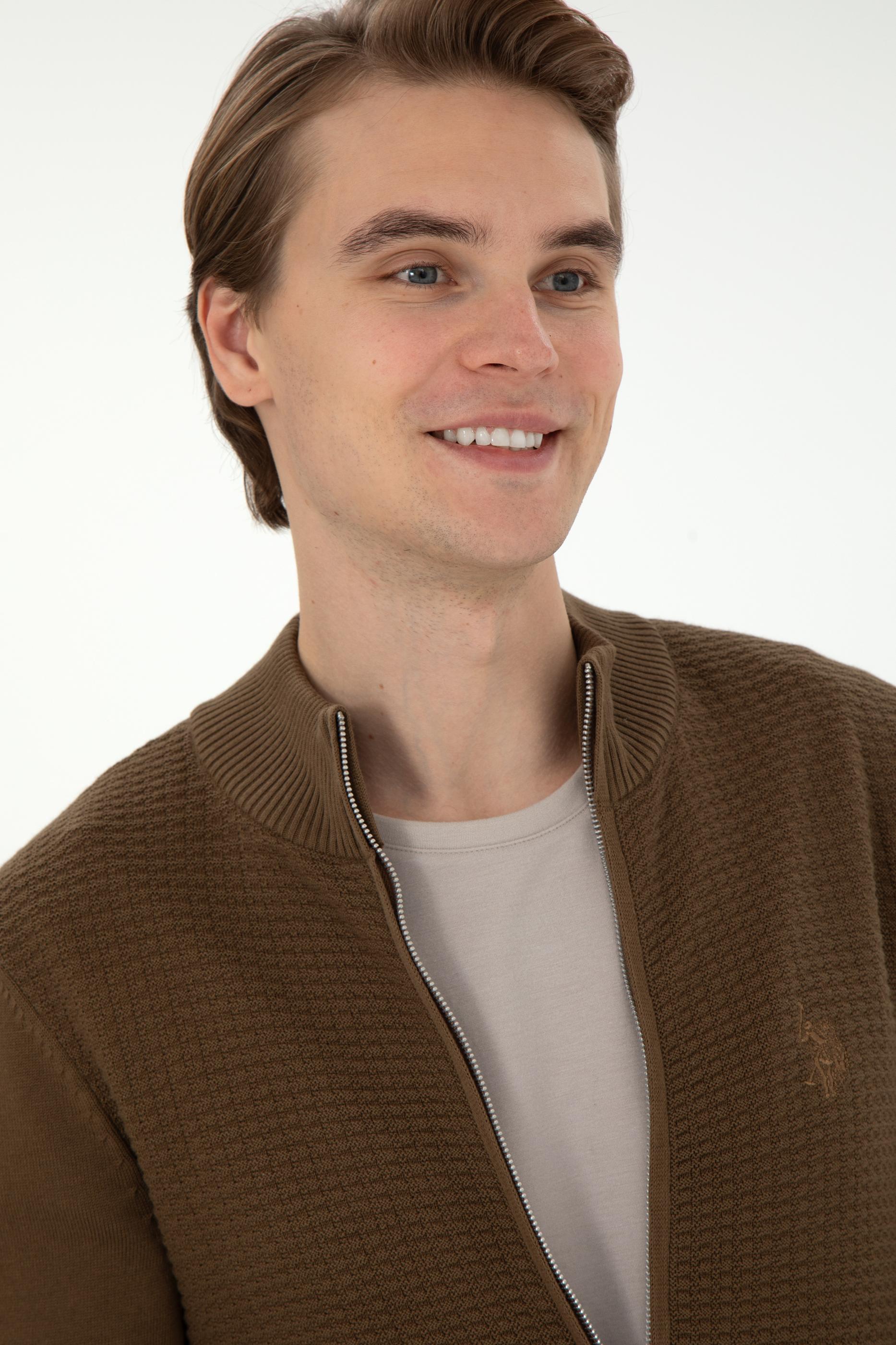 Erkek Haki Basic Triko Hırka