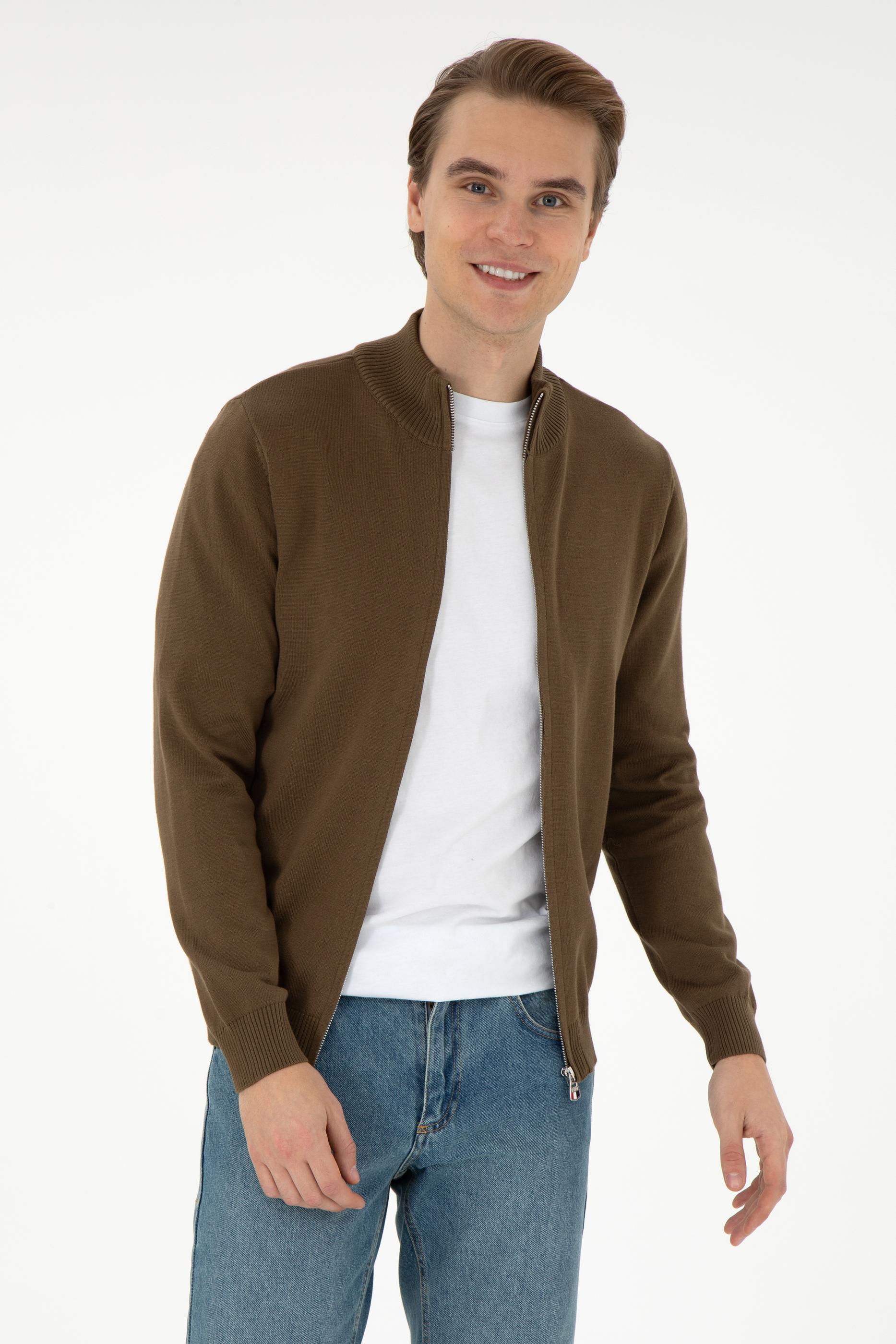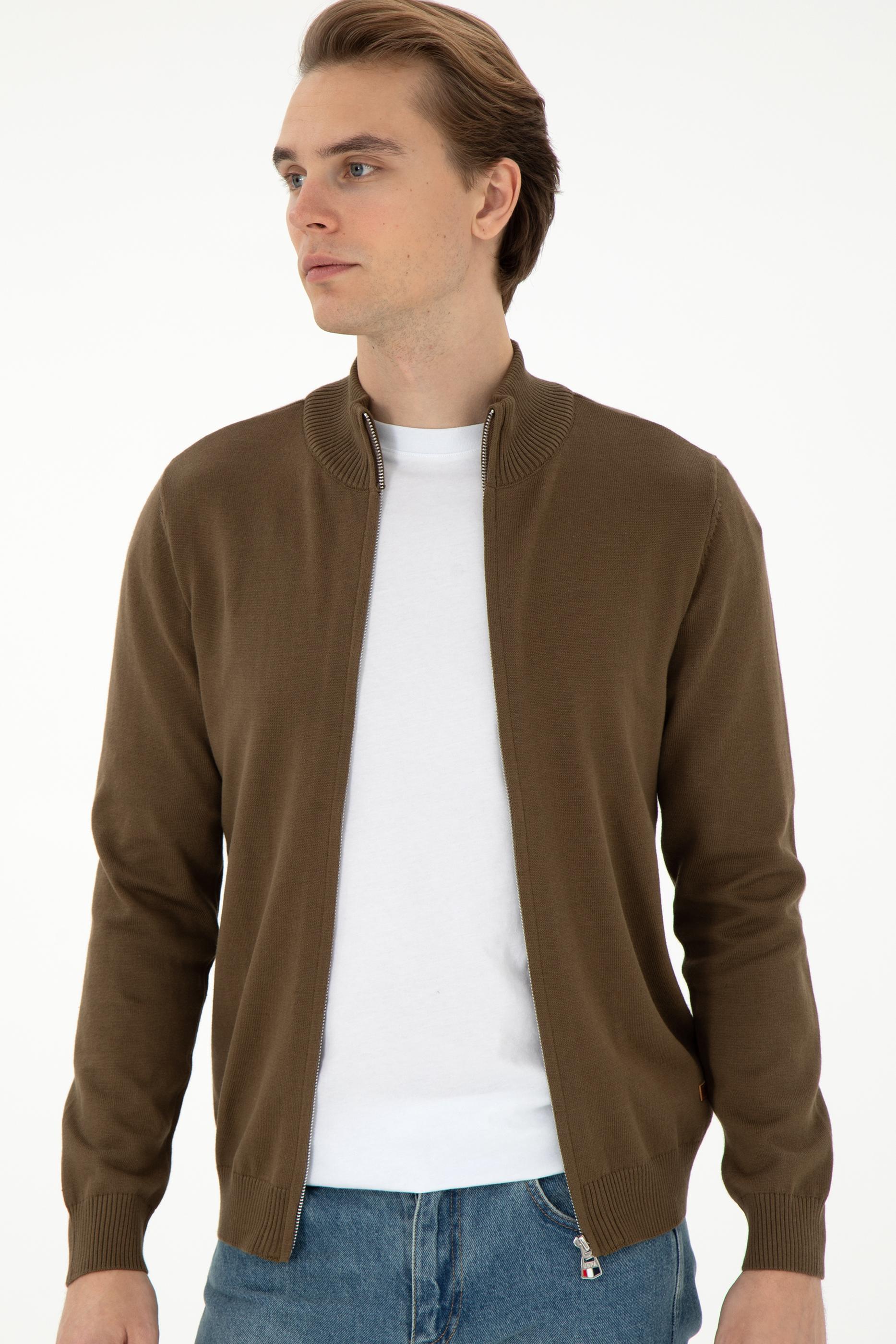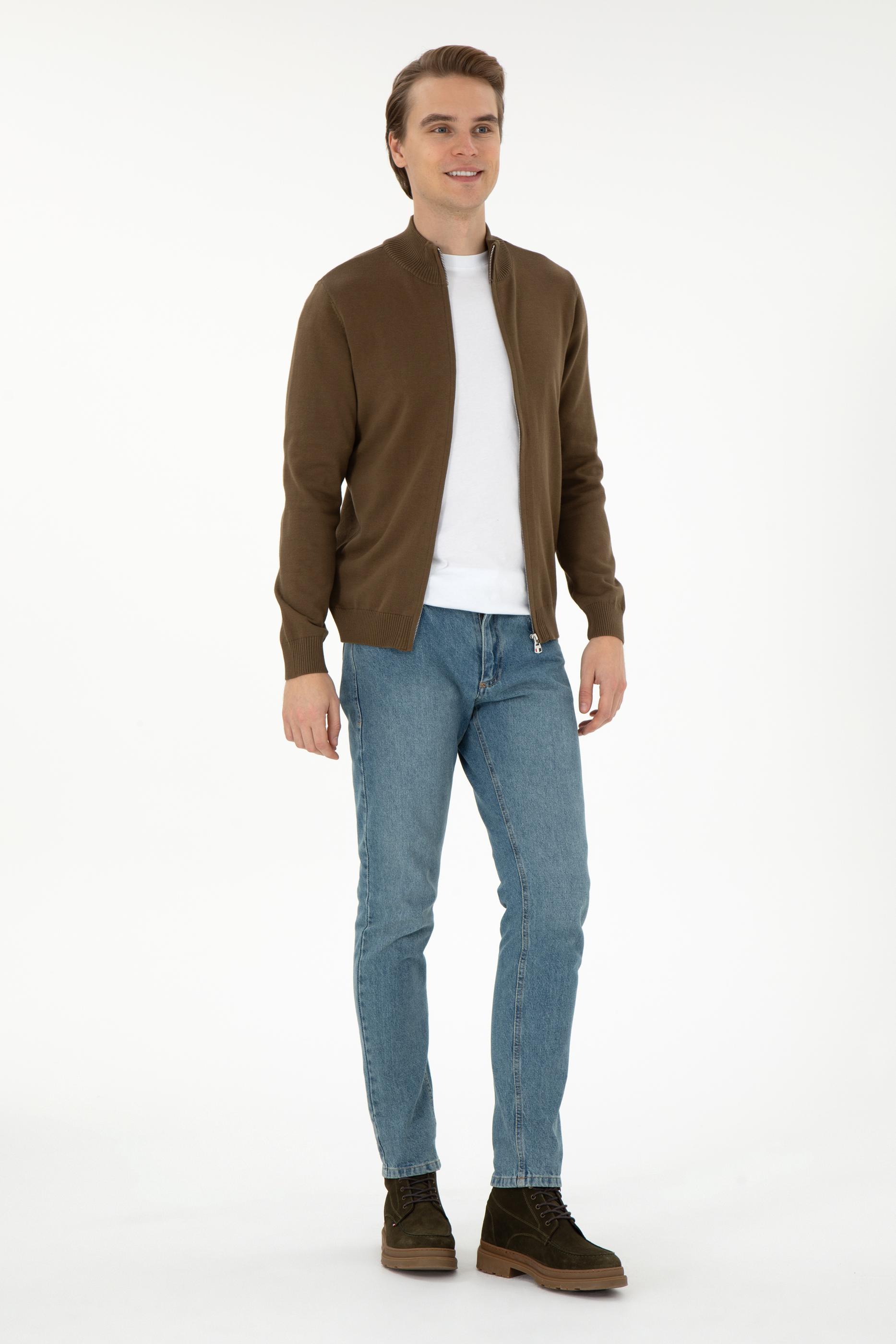 Erkek Haki Basic Triko Hırka