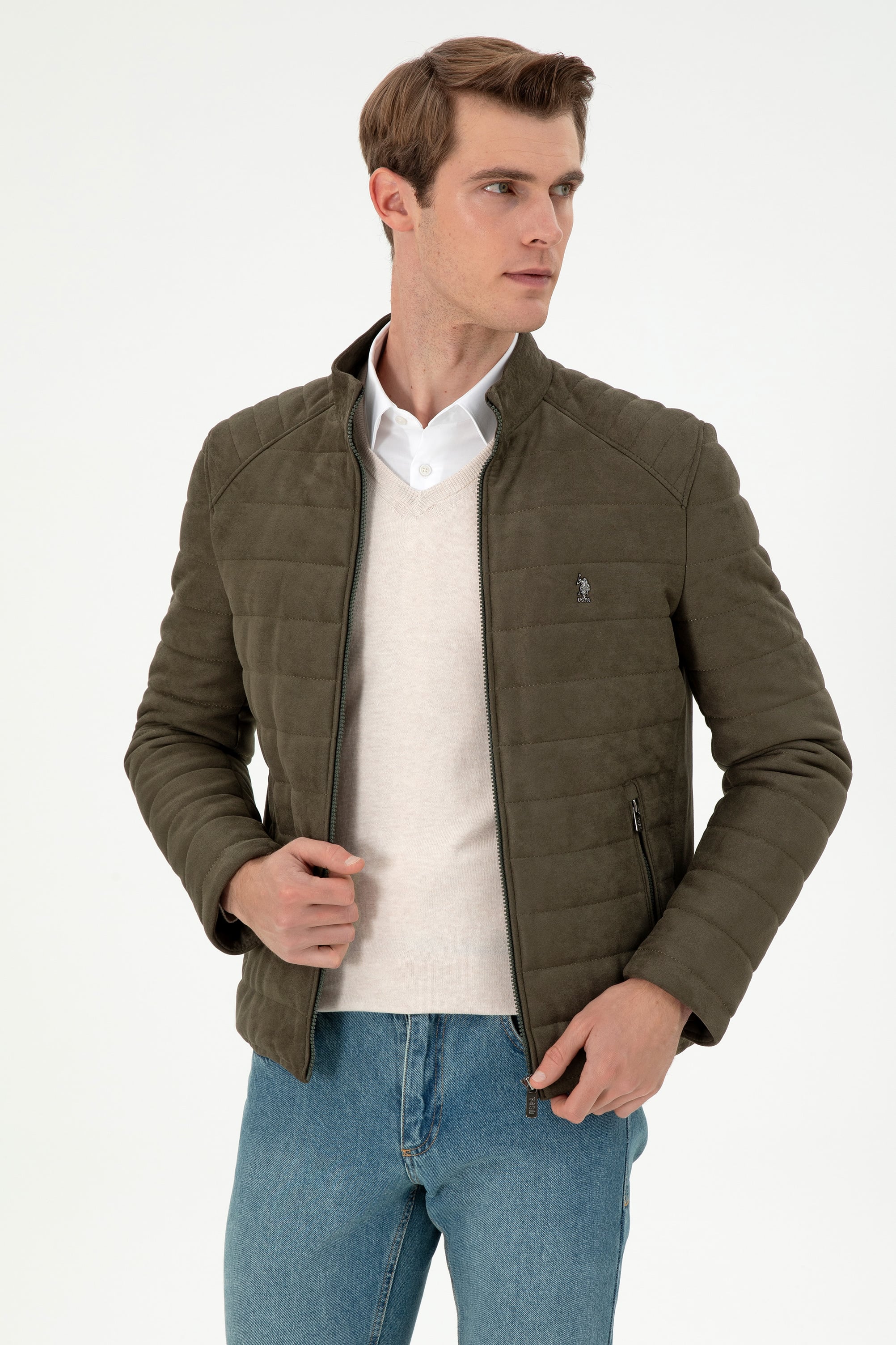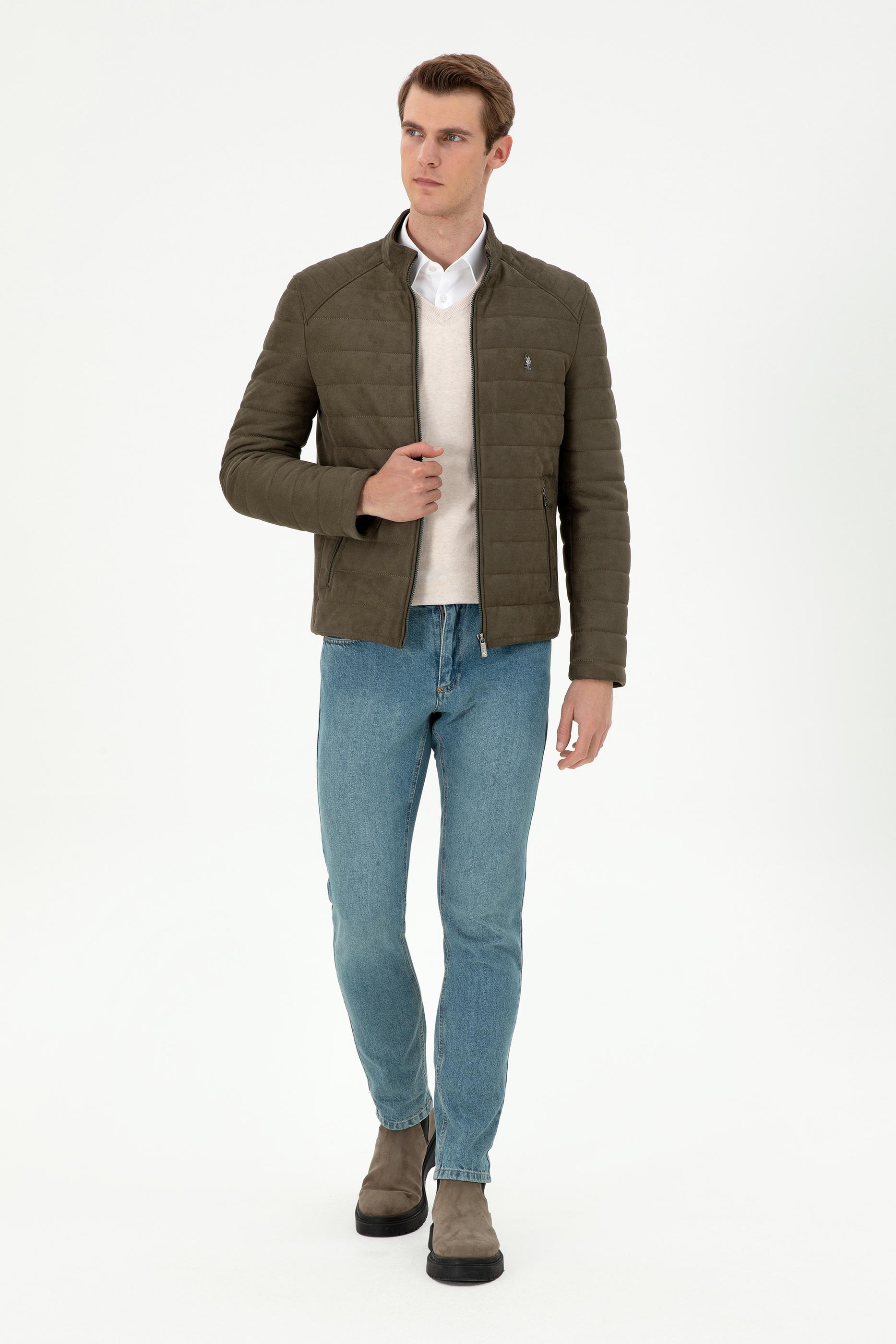 "name": "Erkek Haki Deri Ceket",