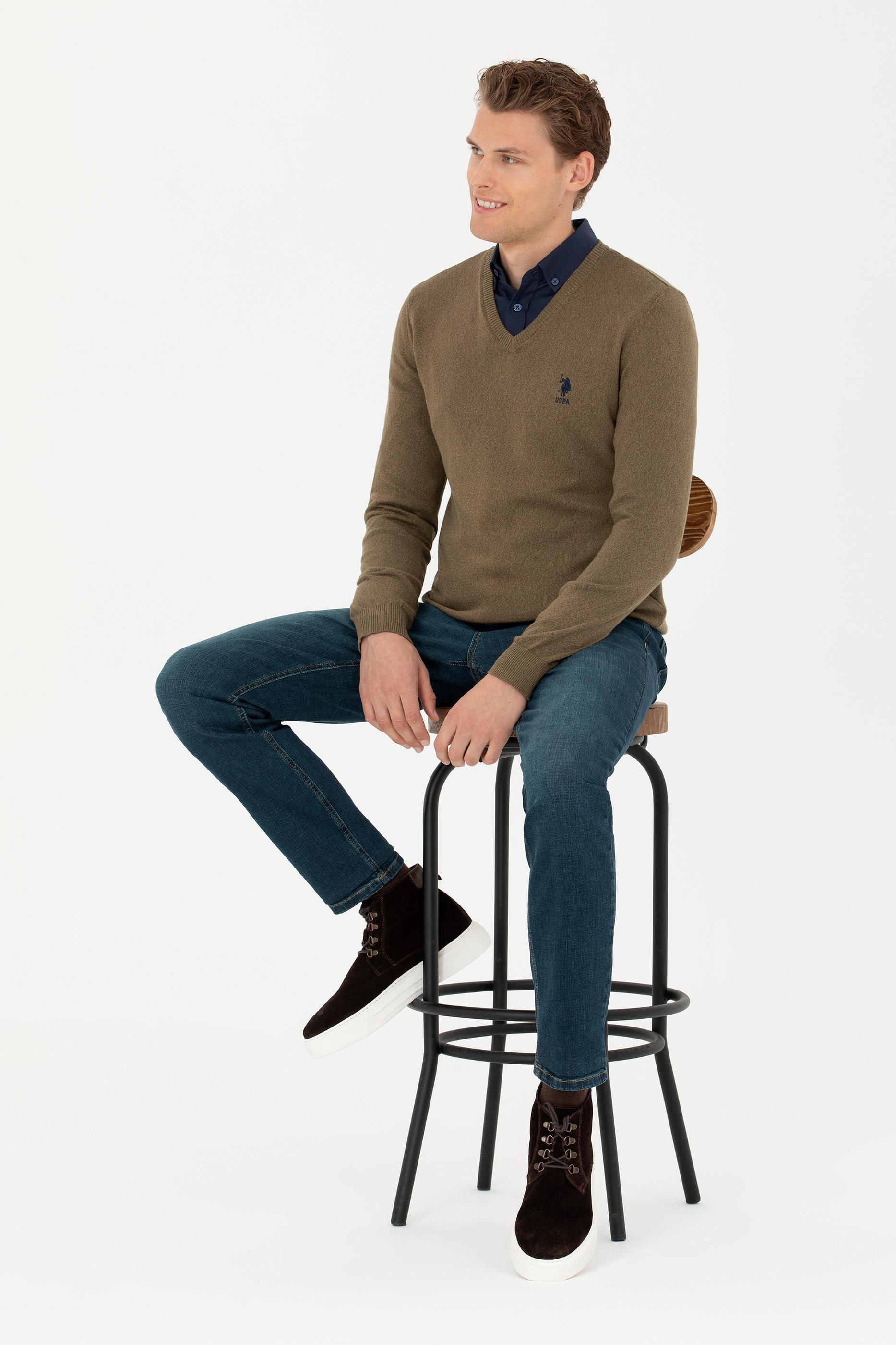 Manşet ve etek uçlarında lastikli form bulunan, %100 pamuk erkek triko kazak modelimiz, cildinize nefes aldıran, yüksek kalite iplikler kullanılarak üretilmektedir. Casual’dan klasiğe pek çok görünüme uyum sağlayabilecek, tek başına ya da gömlek veya tişörtlerle birlikte kombinleyebileceğiniz V yaka slim fit erkek triko kazak modelimiz sadece Online’a özel olarak satışa sunulmaktadır.