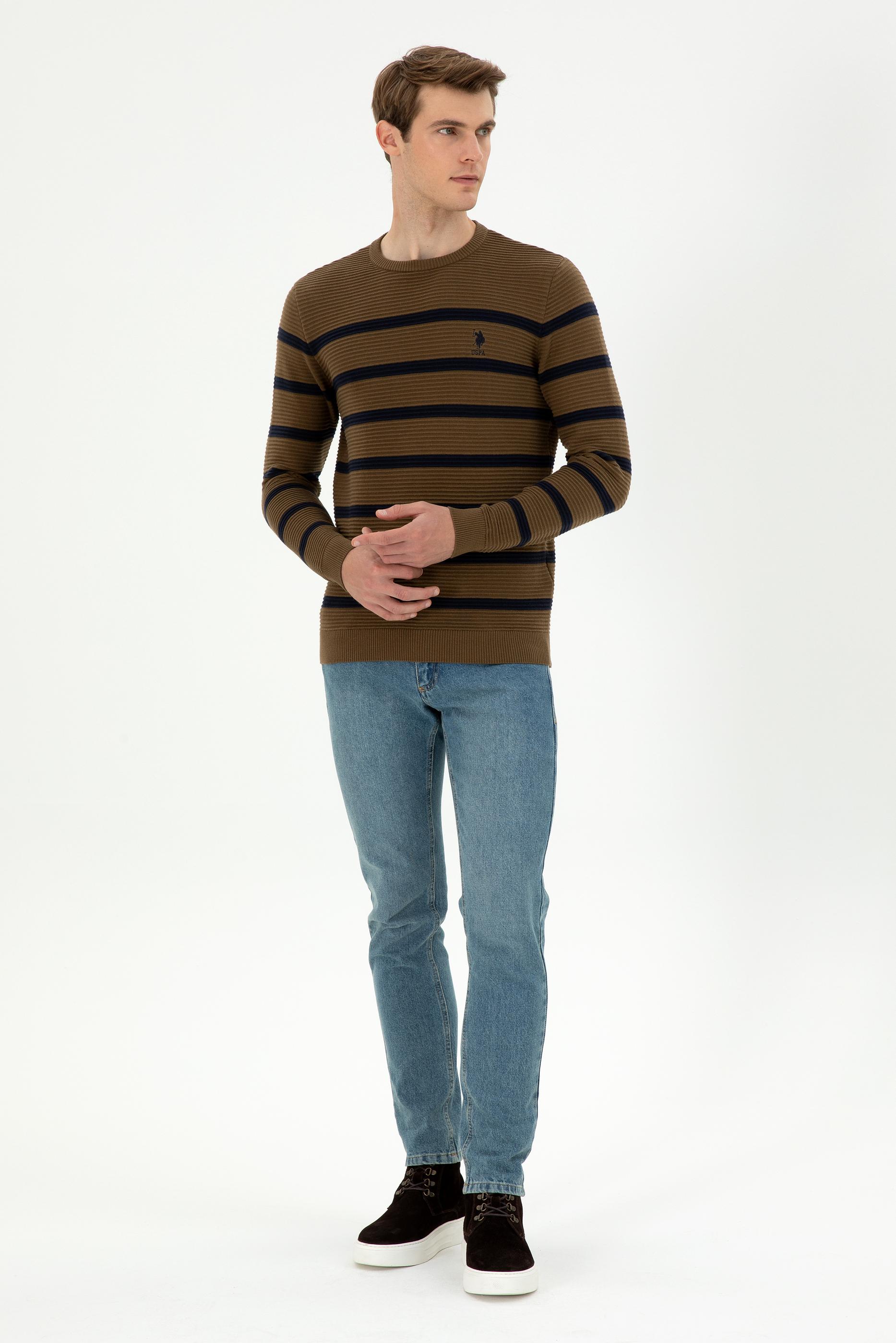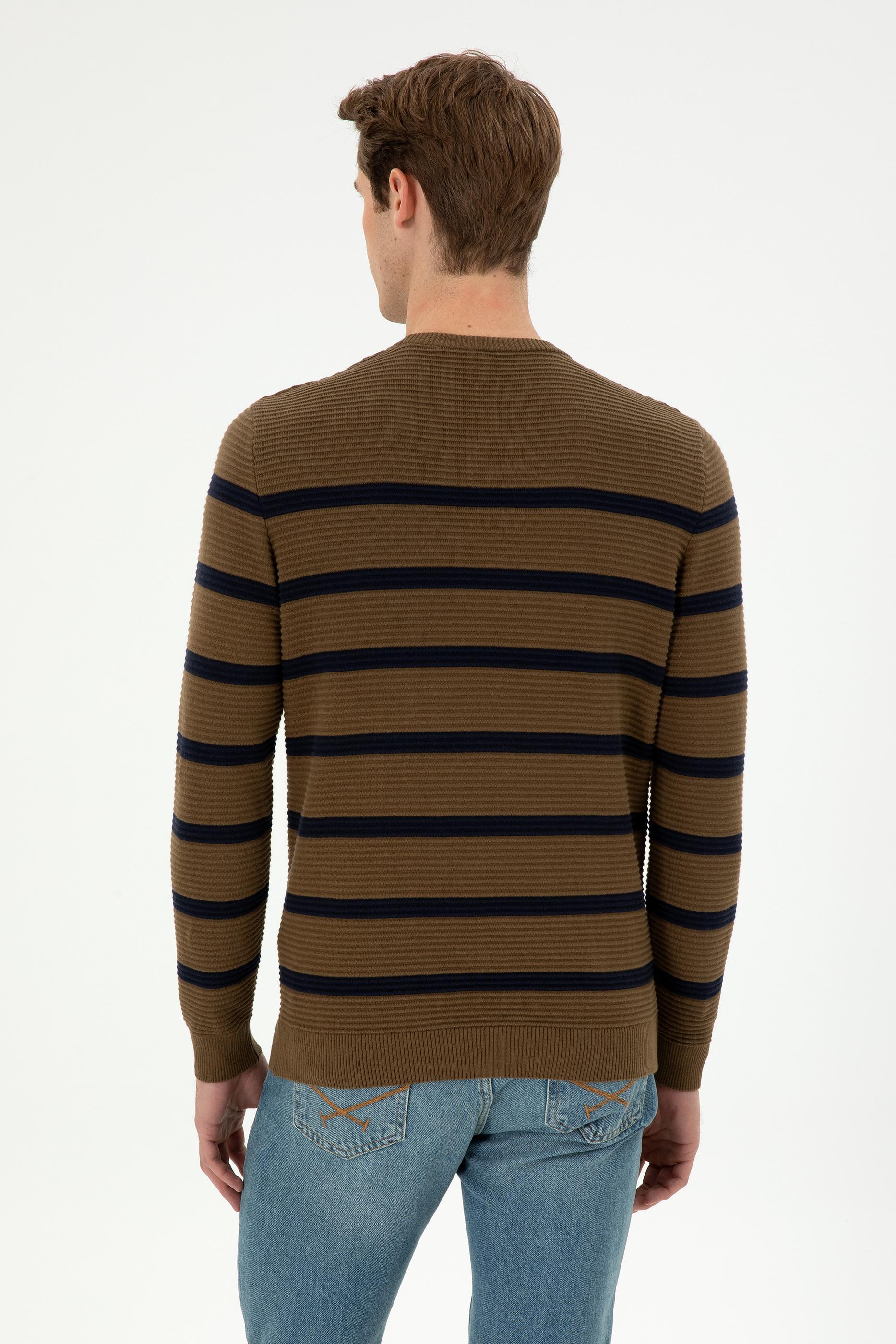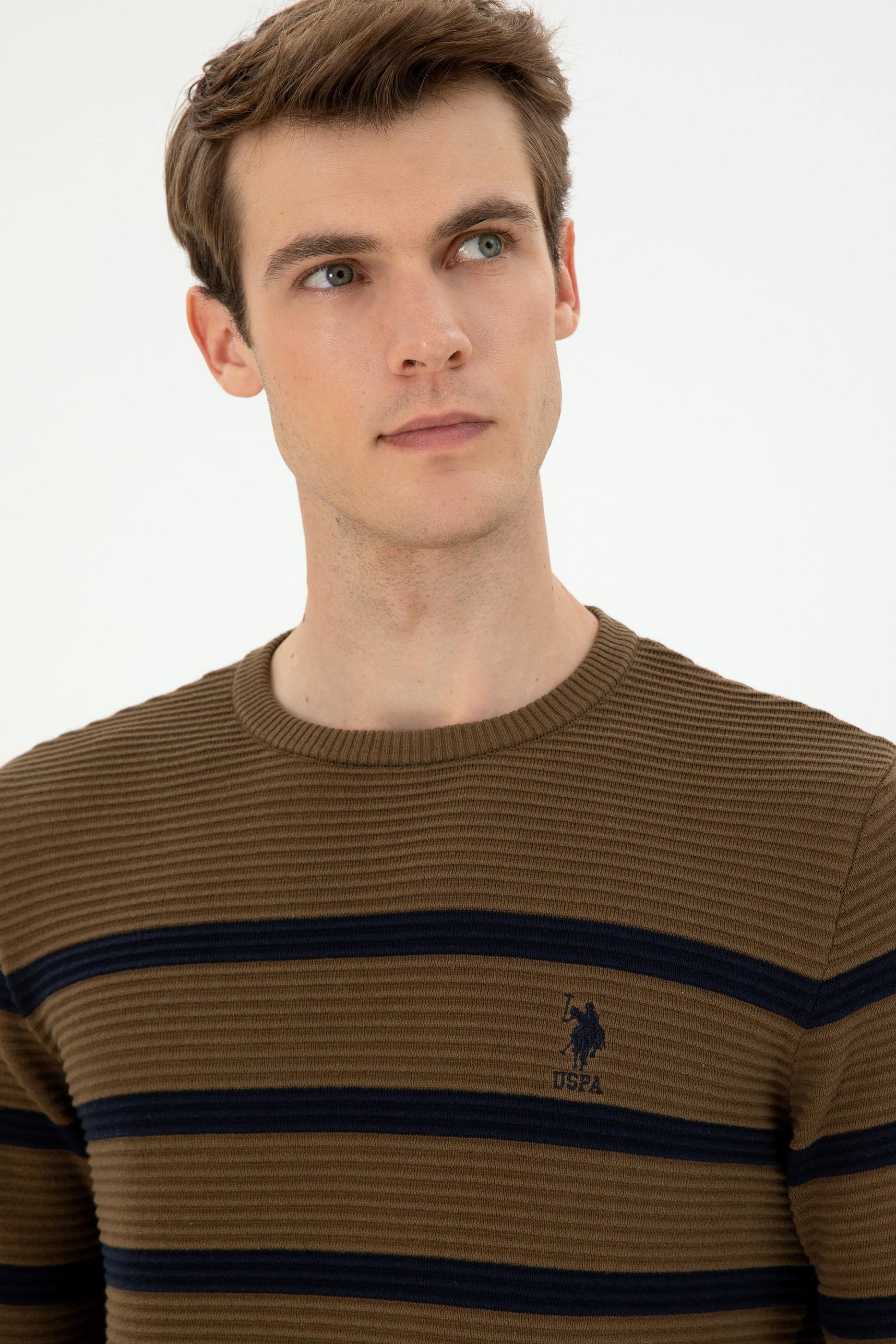 Erkek Slim Fit Bisiklet Yaka Haki Kazak