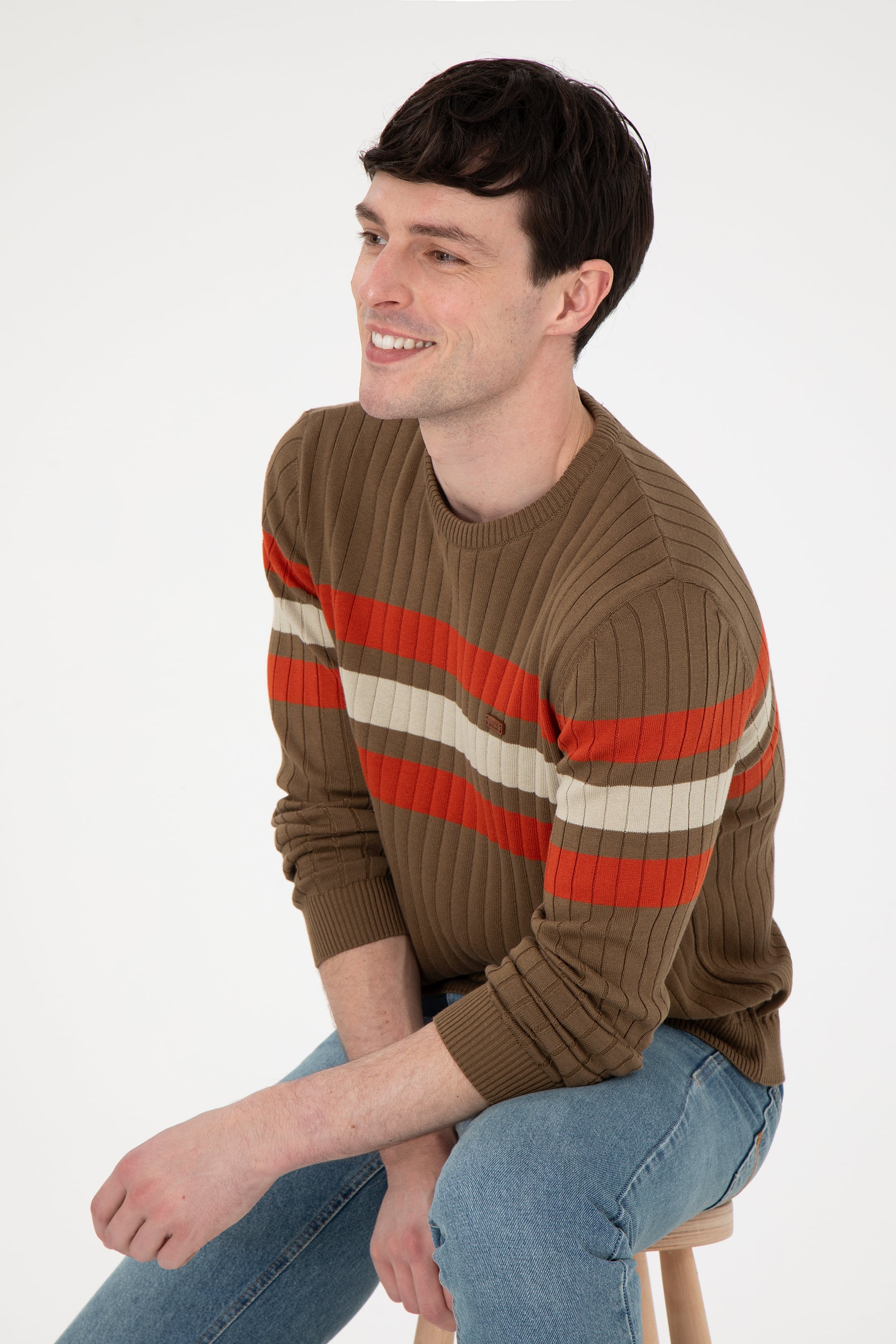 - Erkek Slim Fit Bisiklet Yaka Haki Kazak