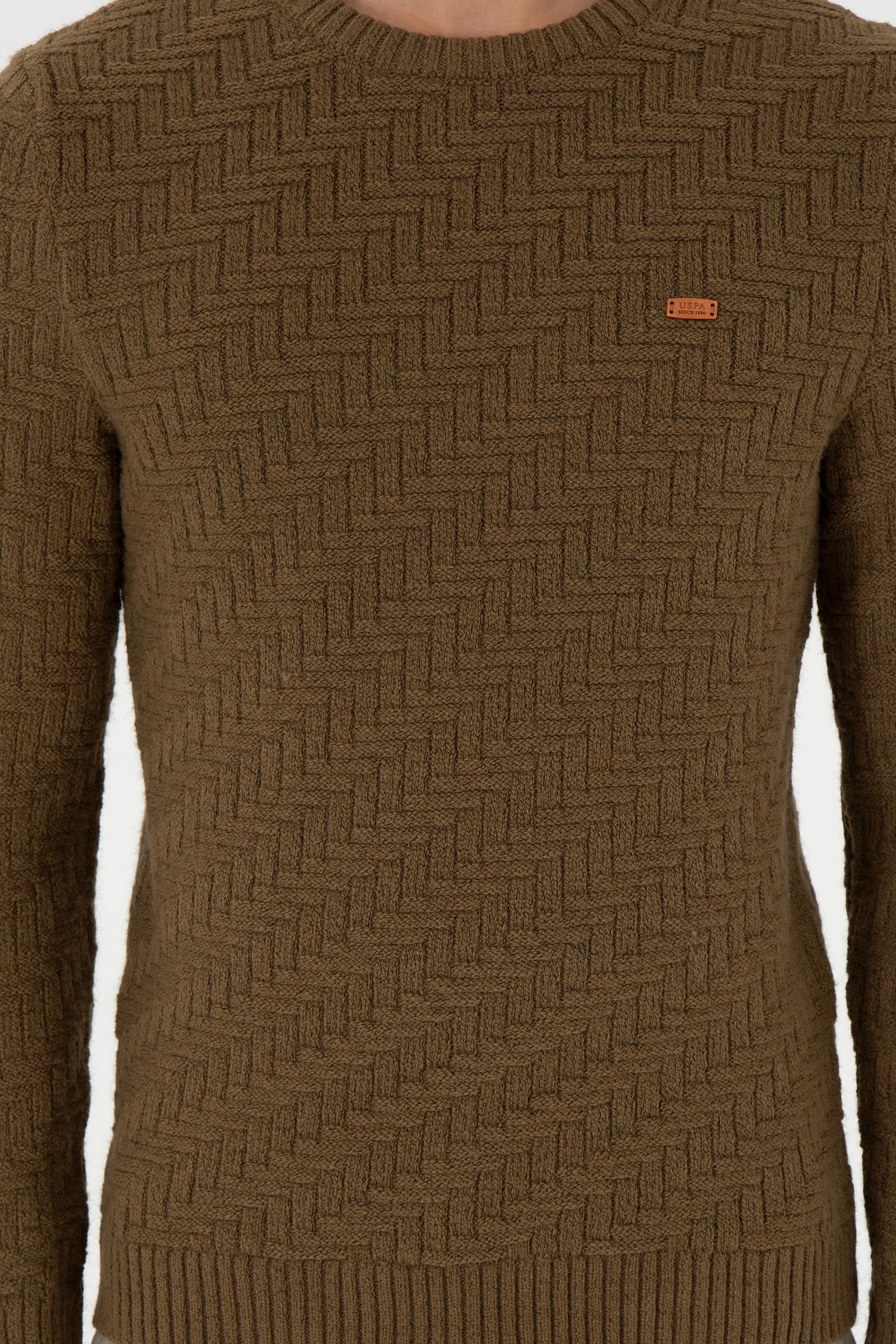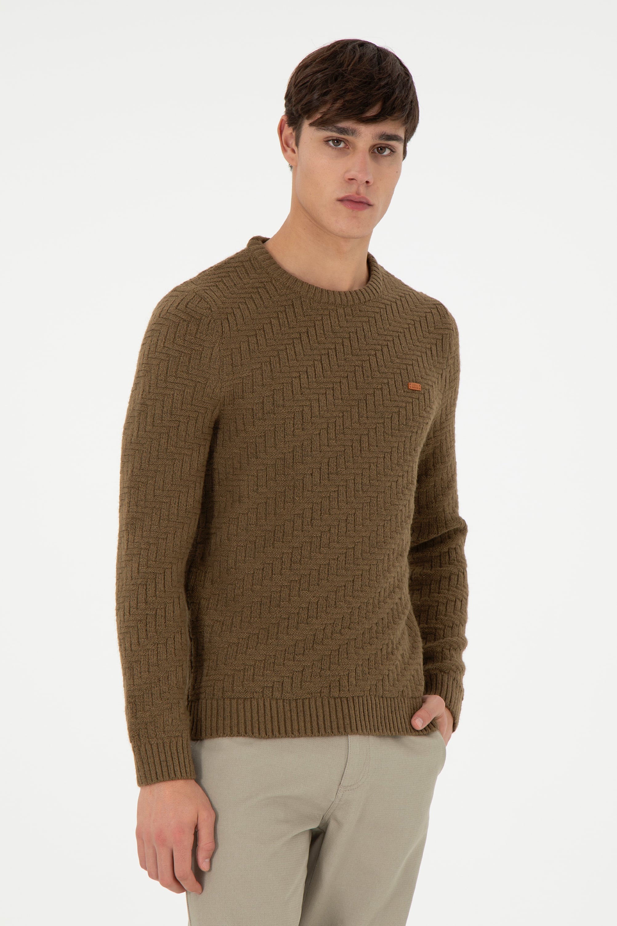 Erkek Slim Fit Bisiklet Yaka Haki Kazak