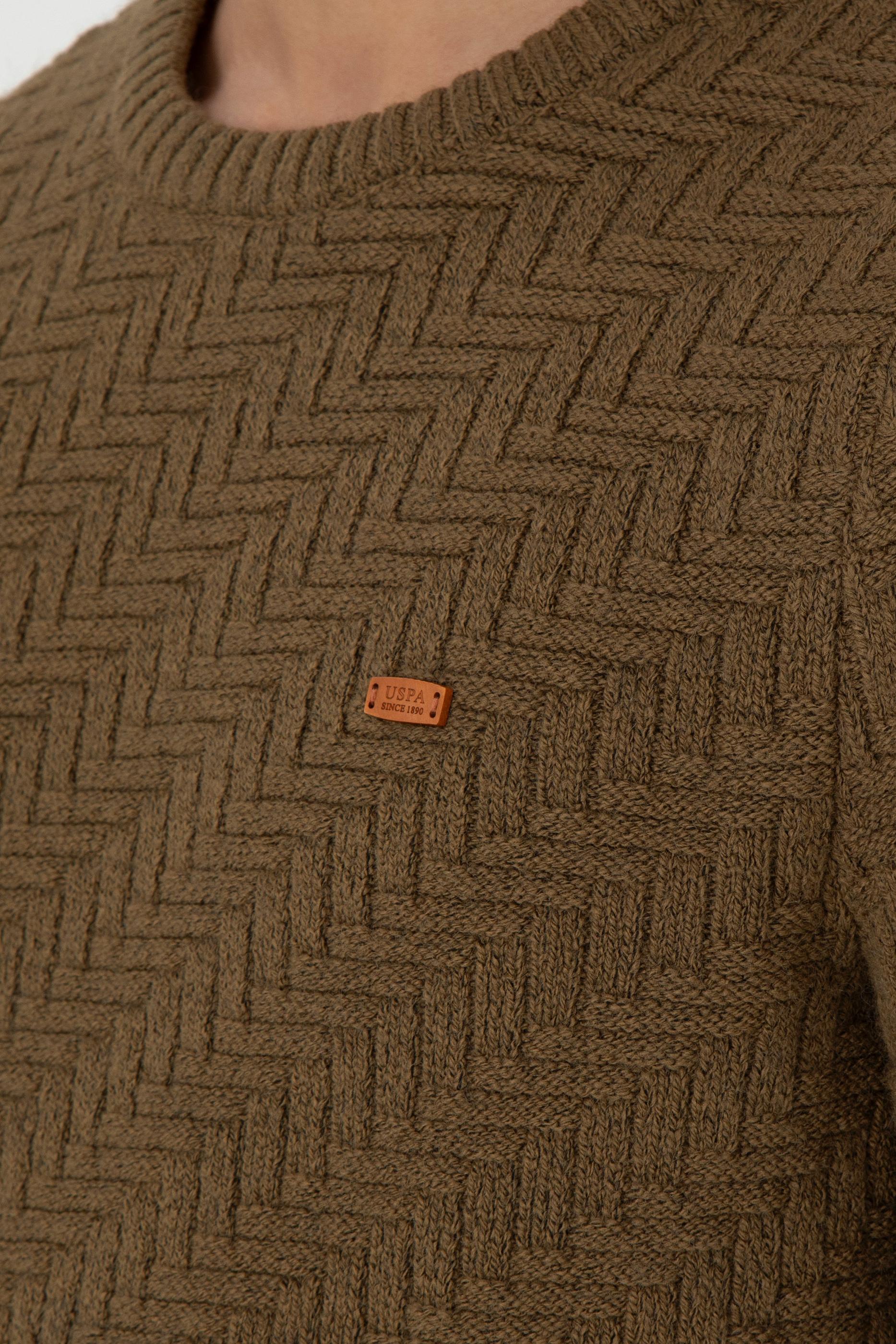 - Erkek Slim Fit Bisiklet Yaka Haki Kazak