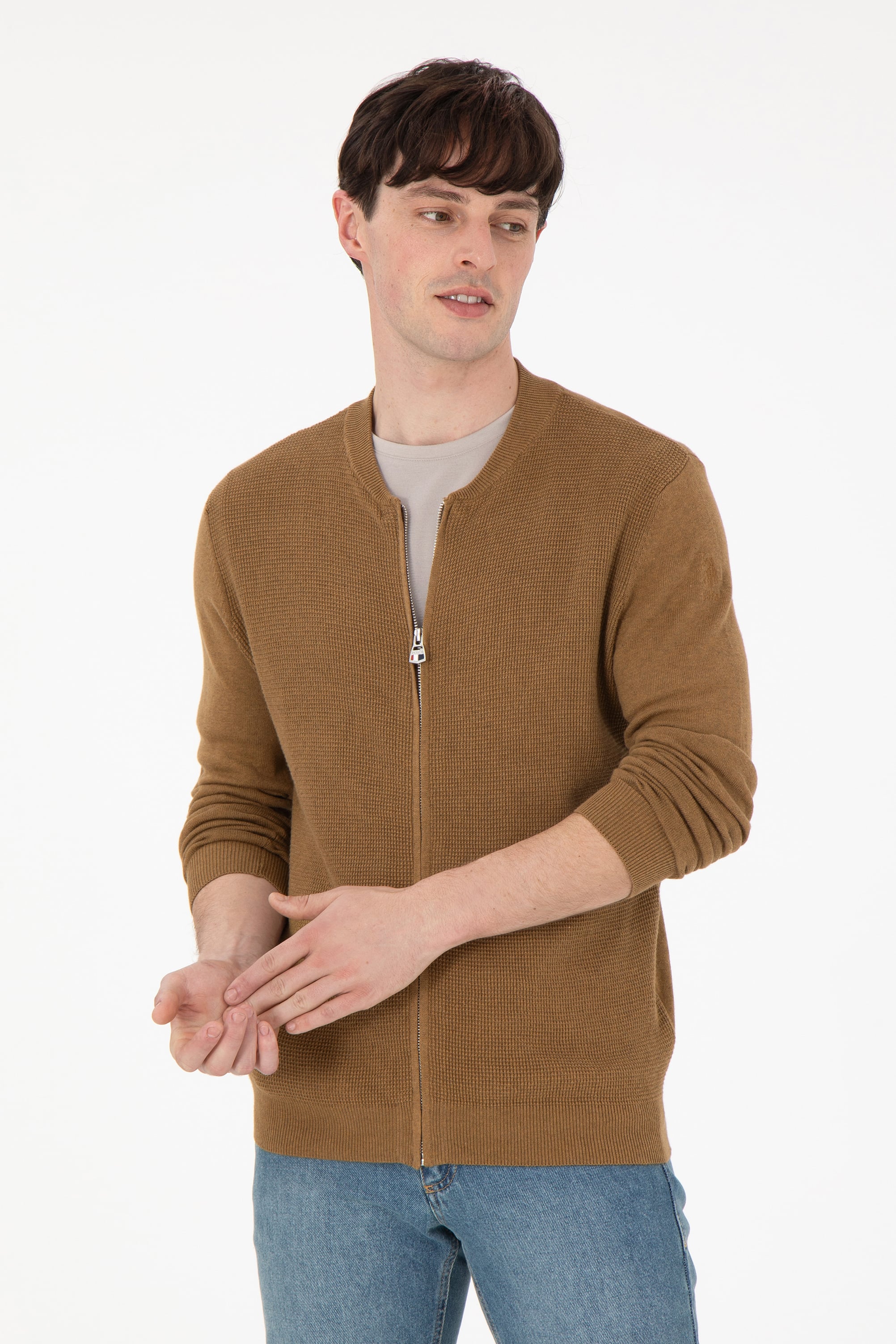 Erkek Haki Melanj Basic Triko Hırka - 50288870037