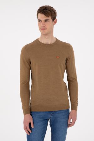 Erkek Slim Fit Bisiklet Yaka Haki Melanj Kazak