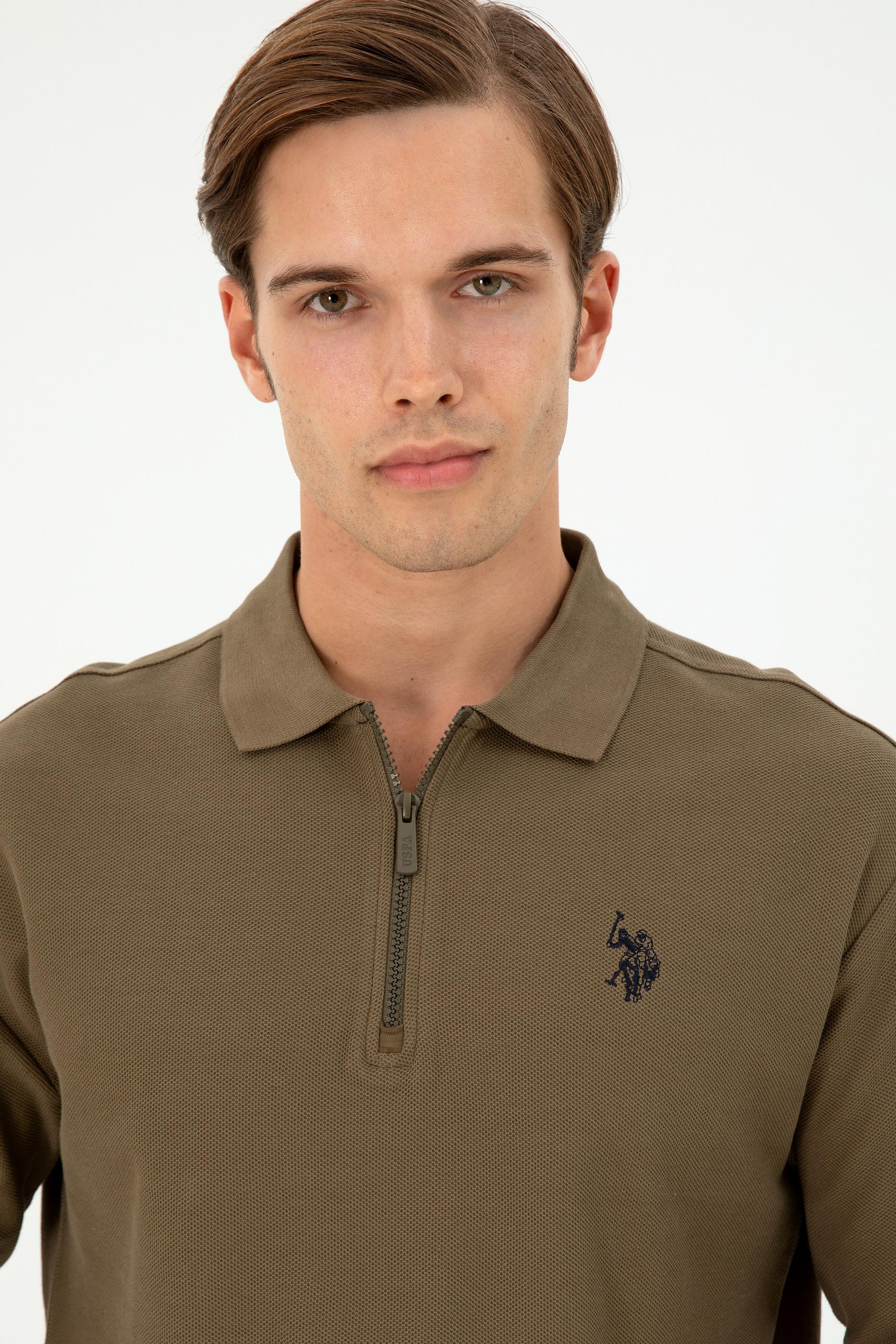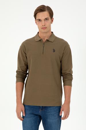 Erkek Comfort Fit Yarım Fermuarlı Haki Sweatshirt
