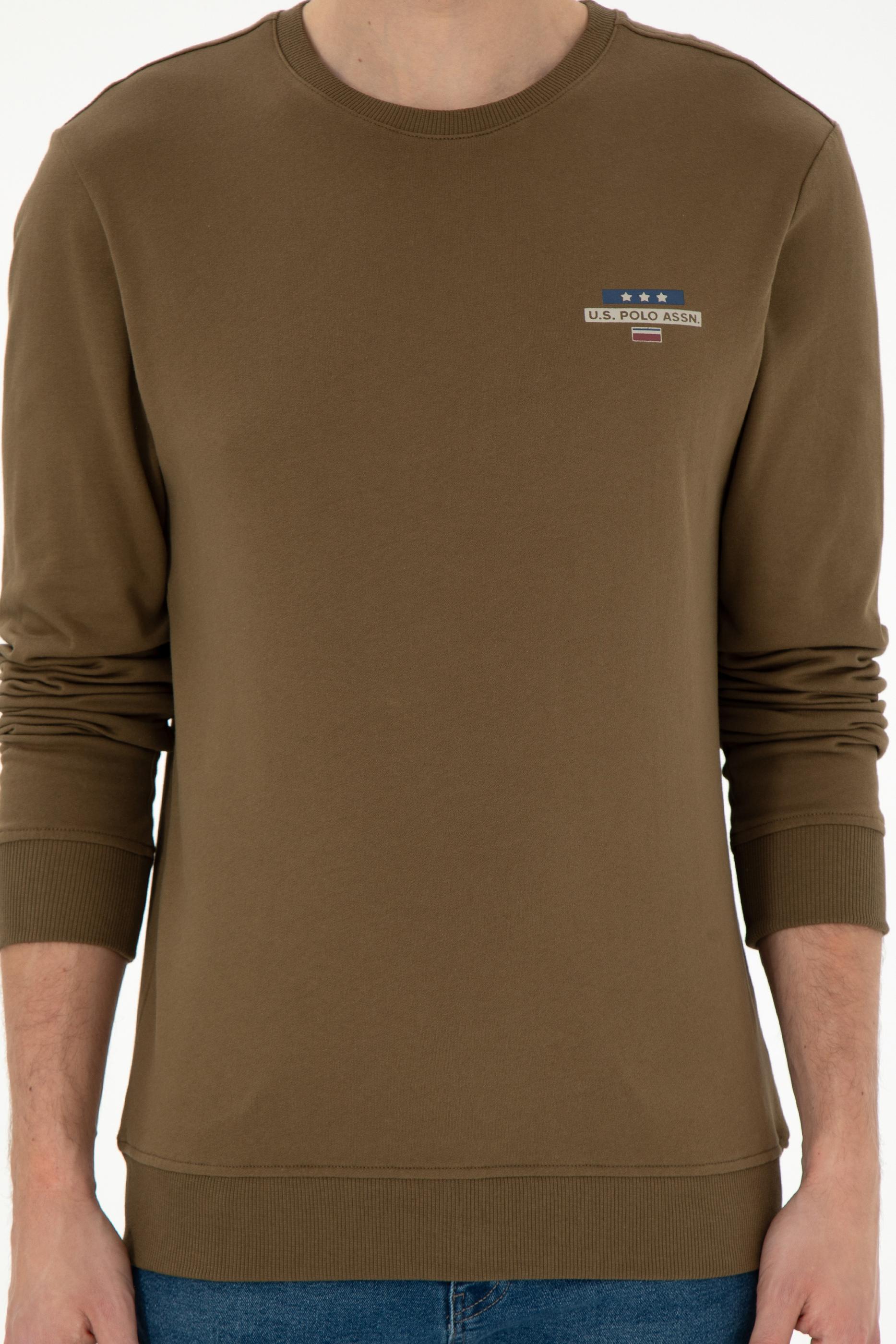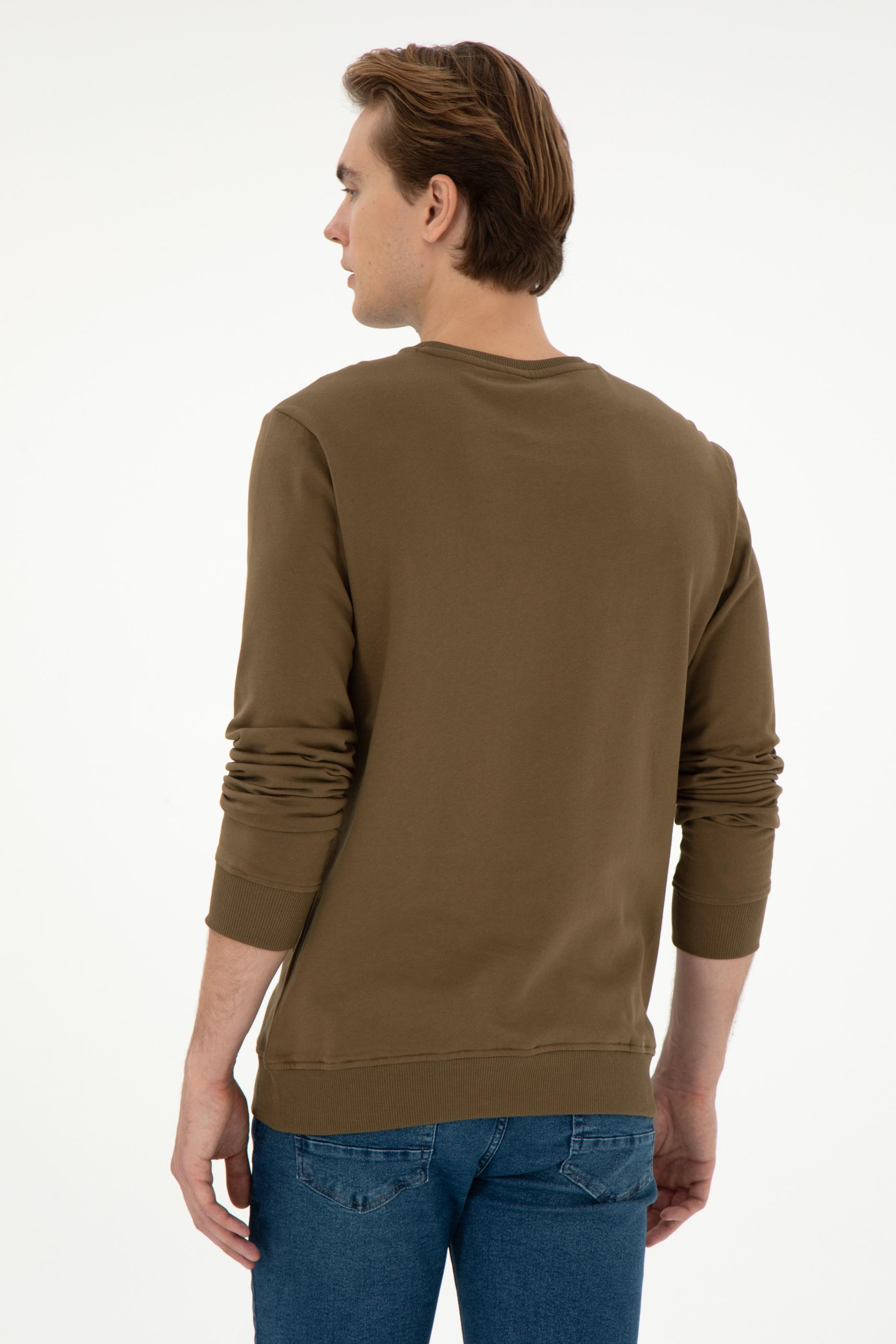 Erkek Regular Fit Bisiklet Yaka Haki Sweatshirt