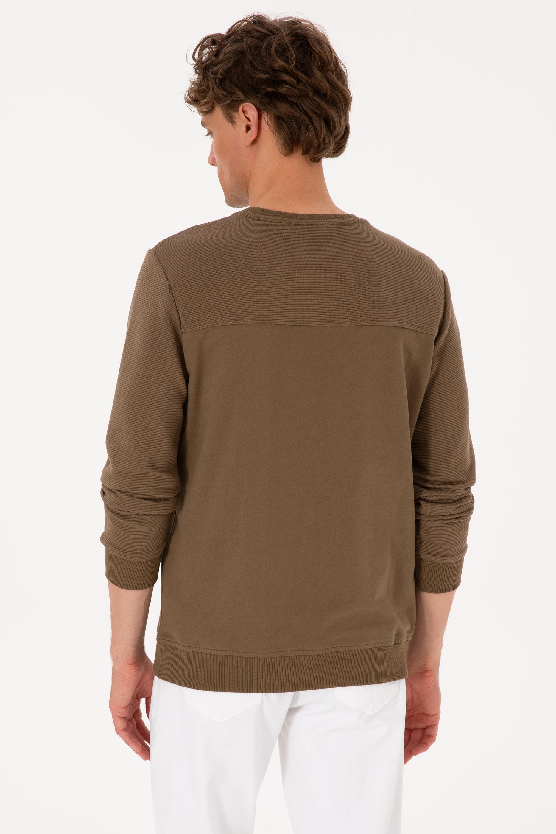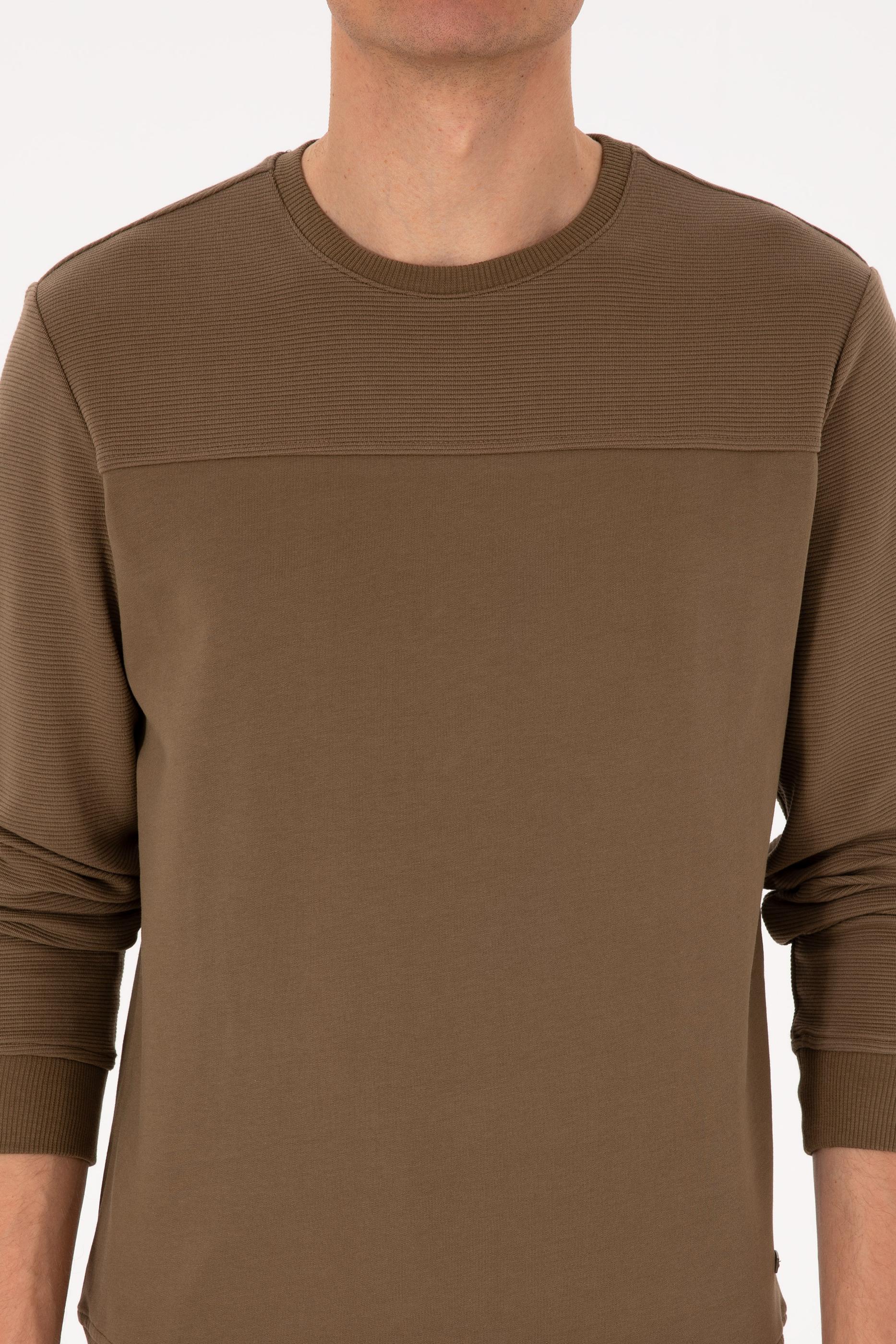 - Erkek Bisiklet Yaka Regular Fit Haki İnce Sweatshirt