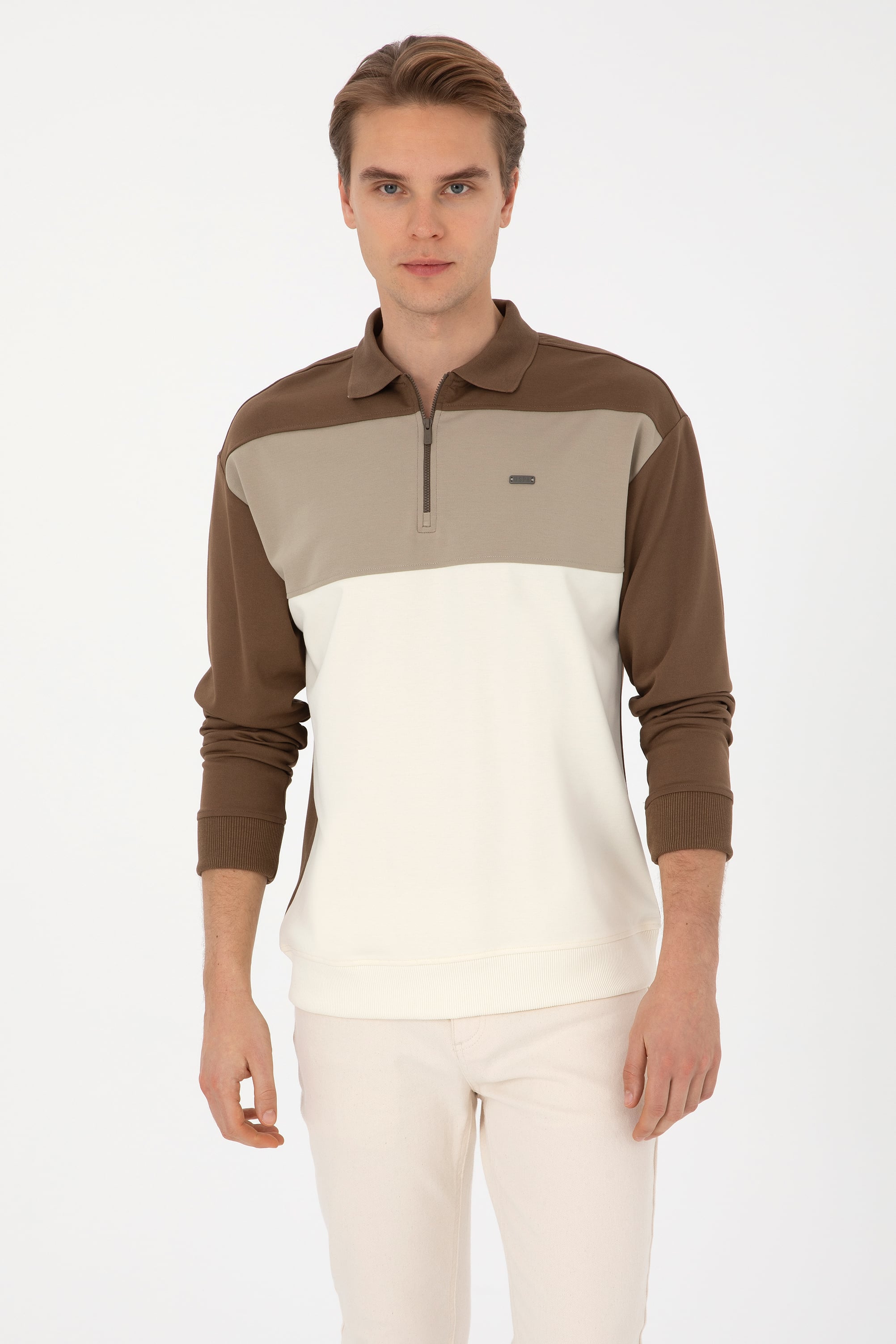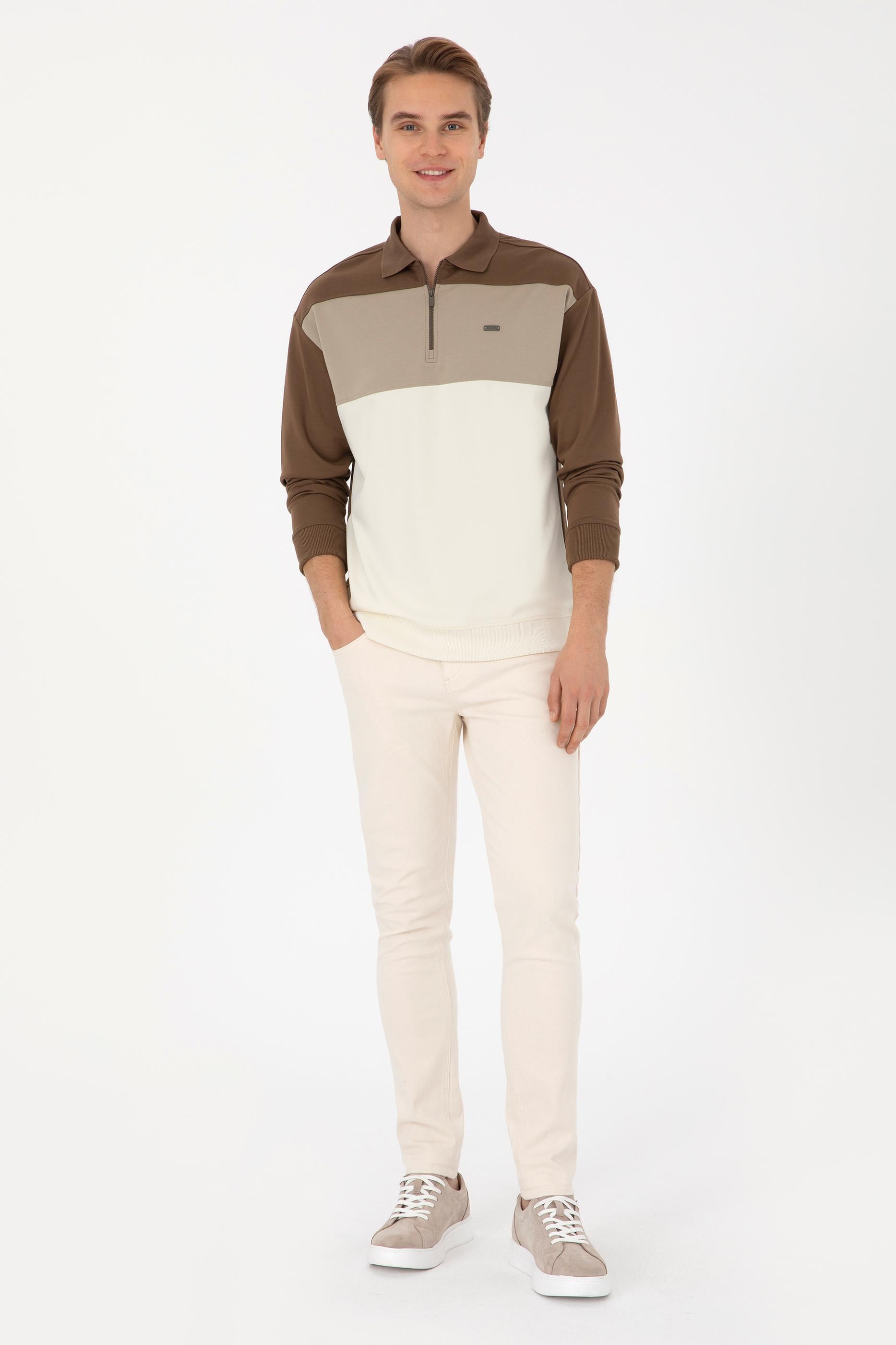 - Erkek Comfort Fit Yarım Fermuarlı Haki Sweatshirt