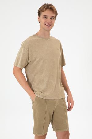 Erkek Comfort Fit Bisiklet Yaka Haki Yıkamalı Tişört