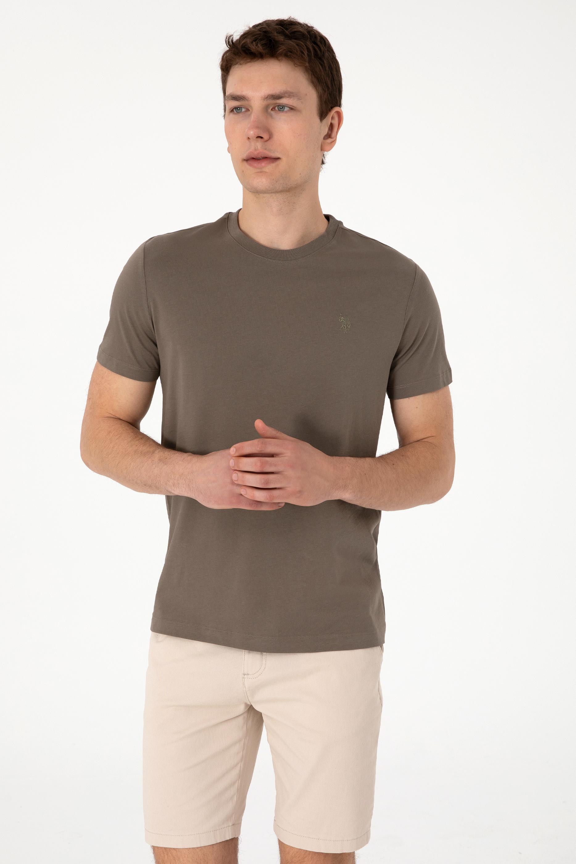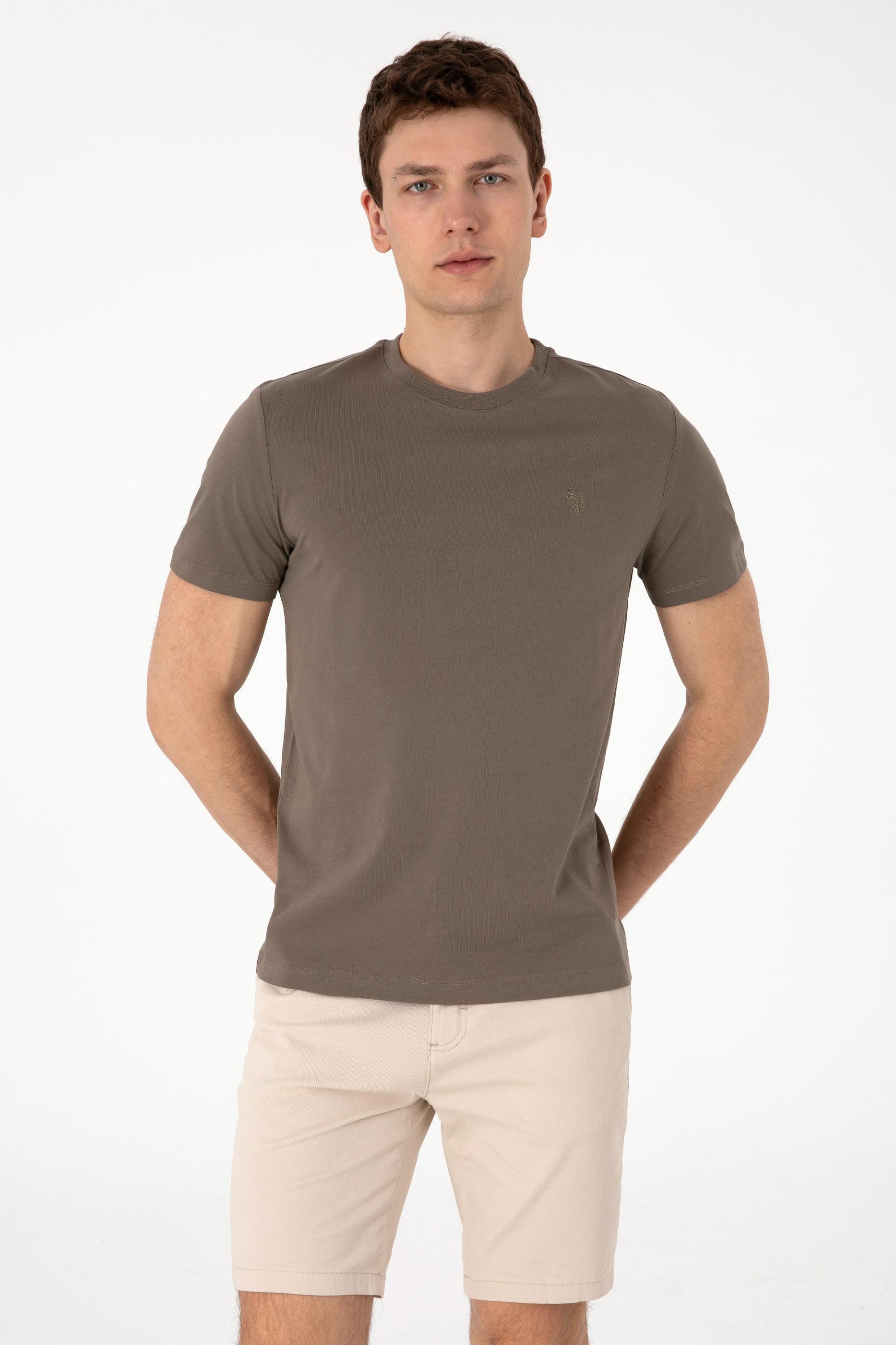 Erkek Regular Fit Bisiklet Yaka Haki Tişört