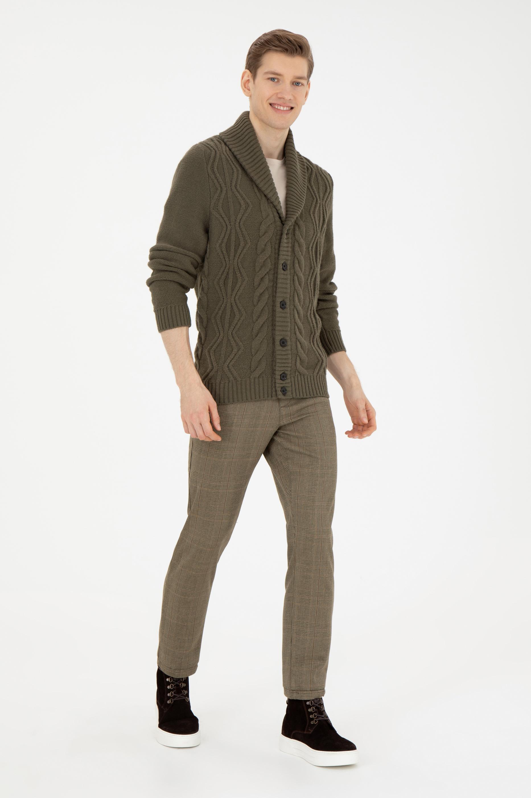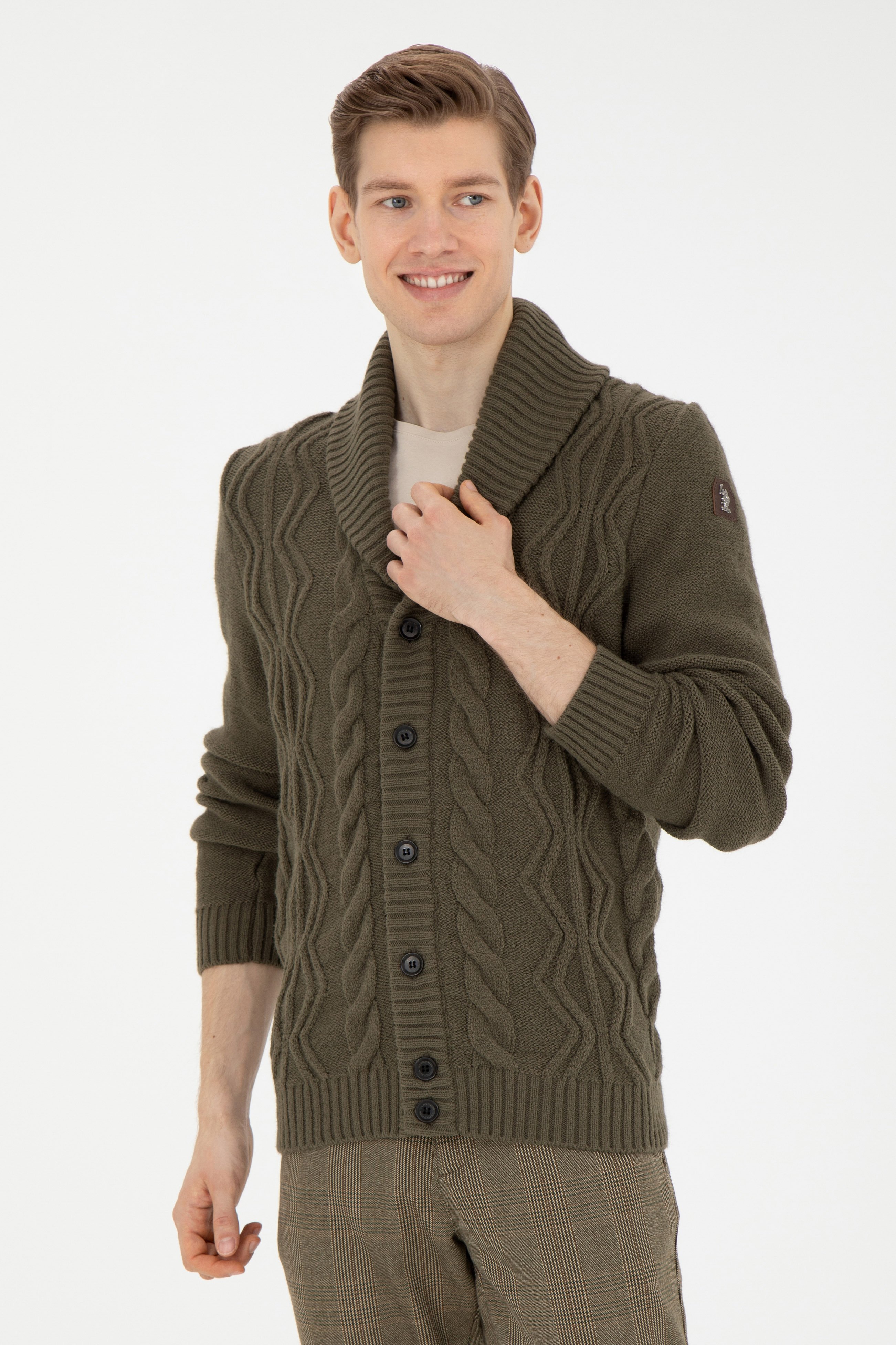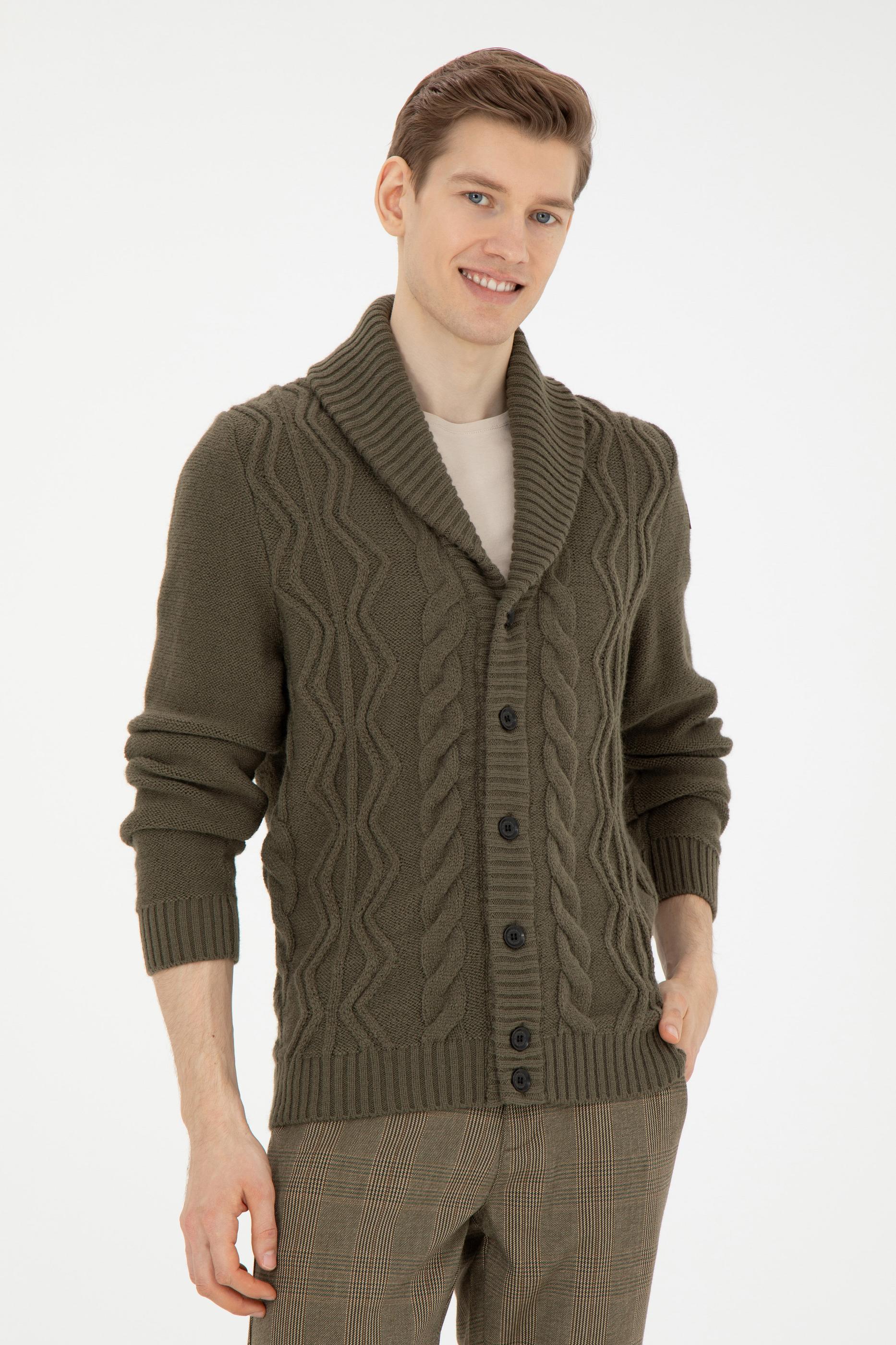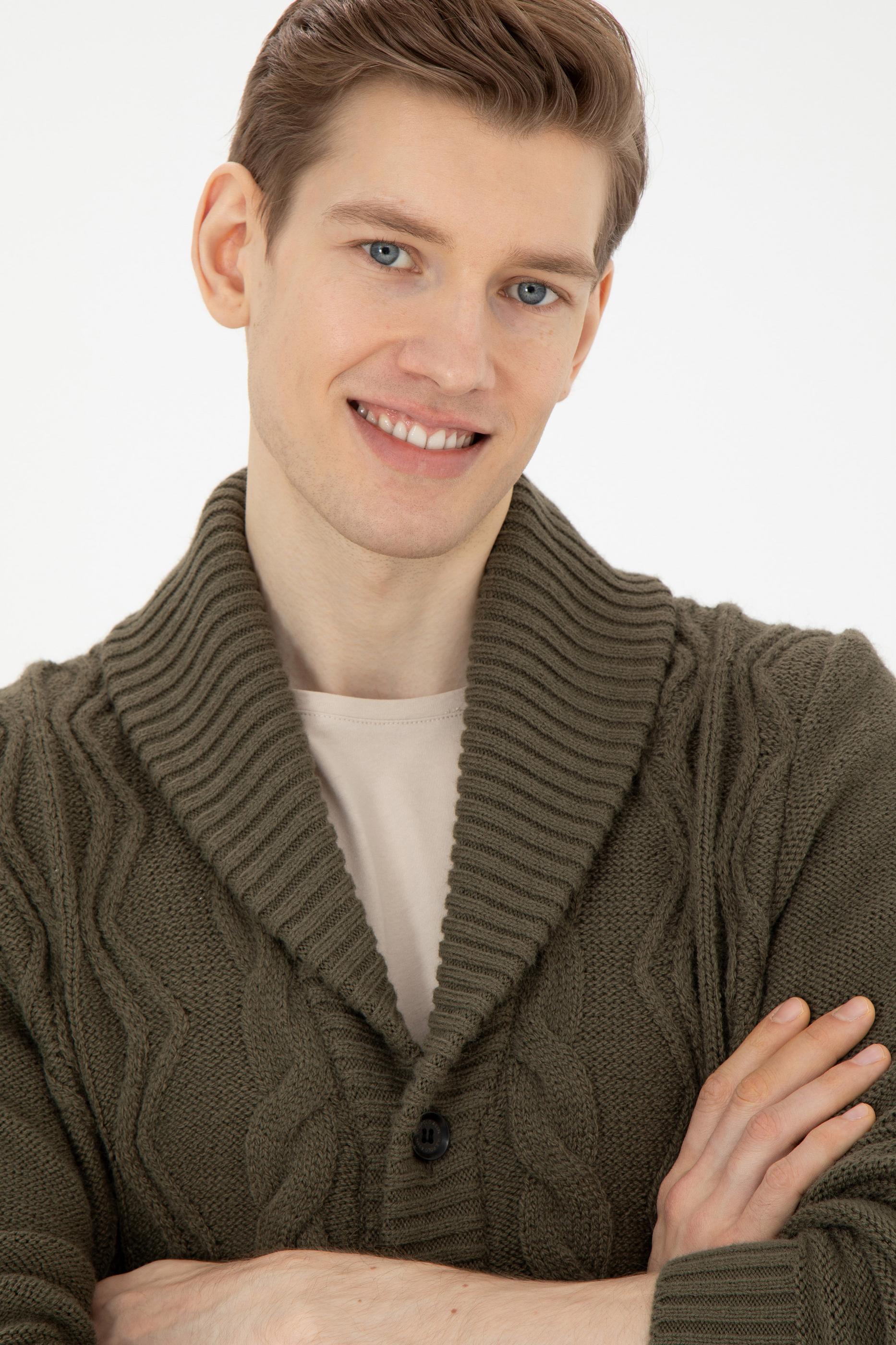 Erkek Haki Triko Hırka