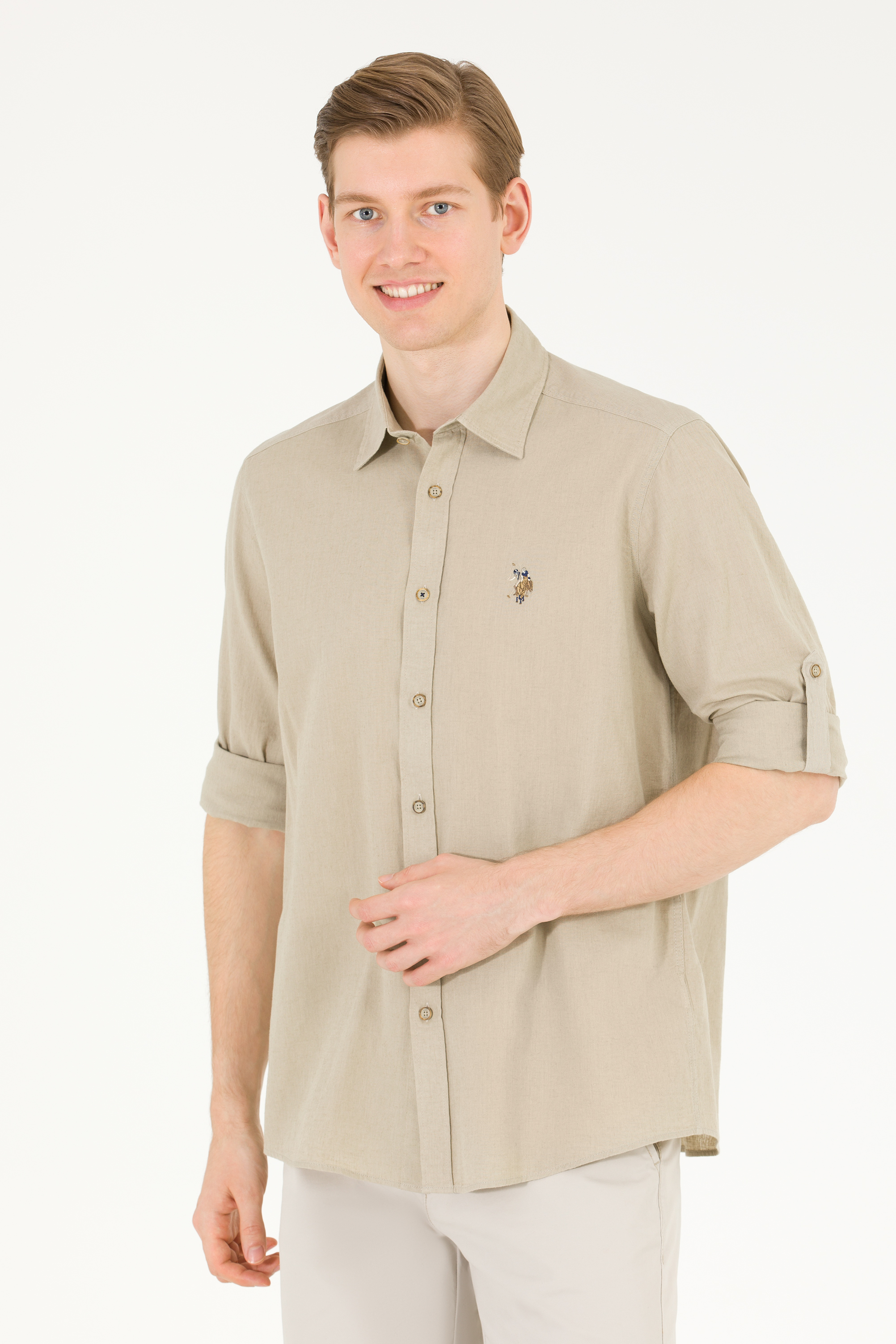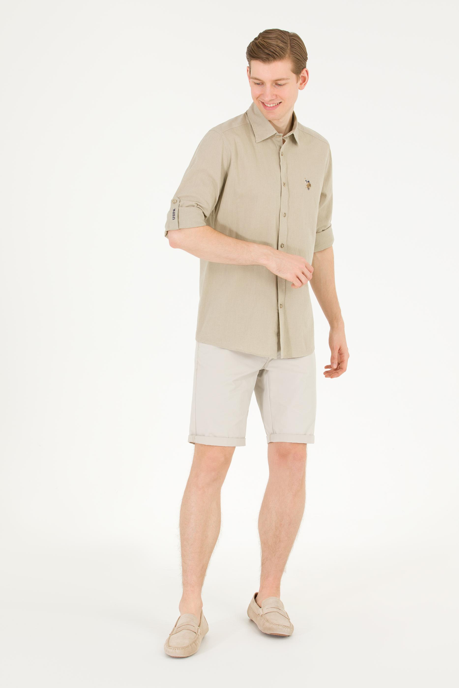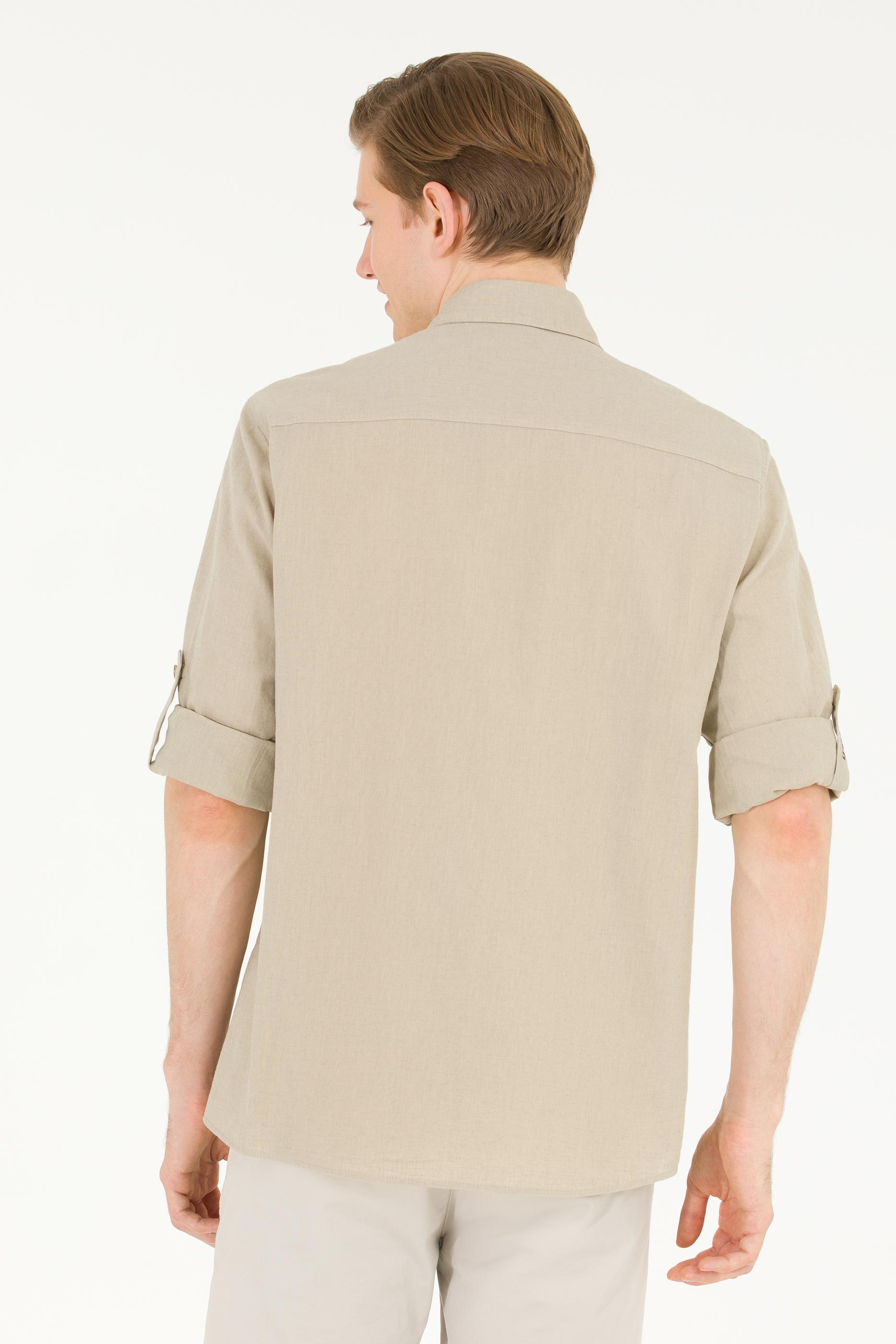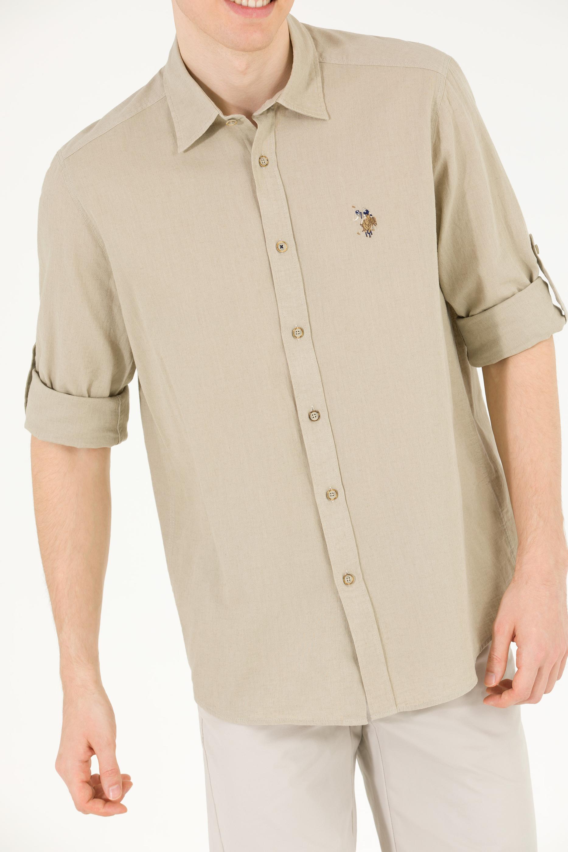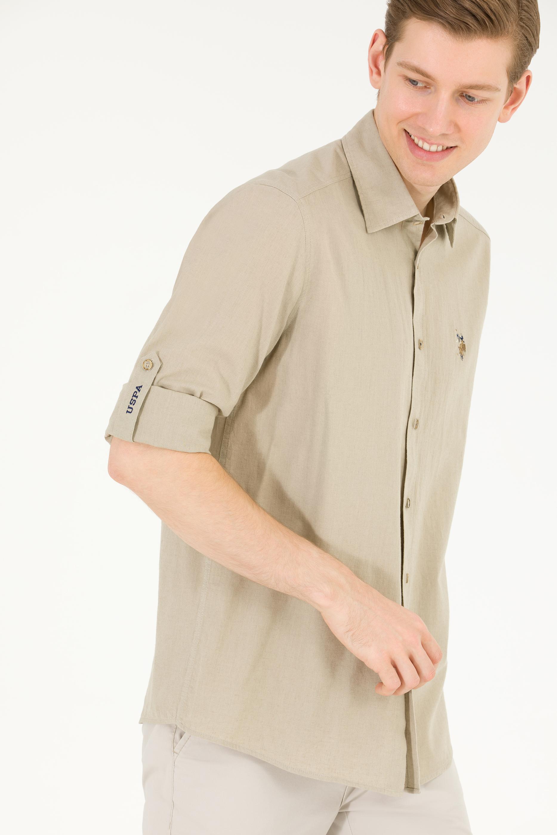 - Erkek Haki Uzun Kollu Basic Gömlek