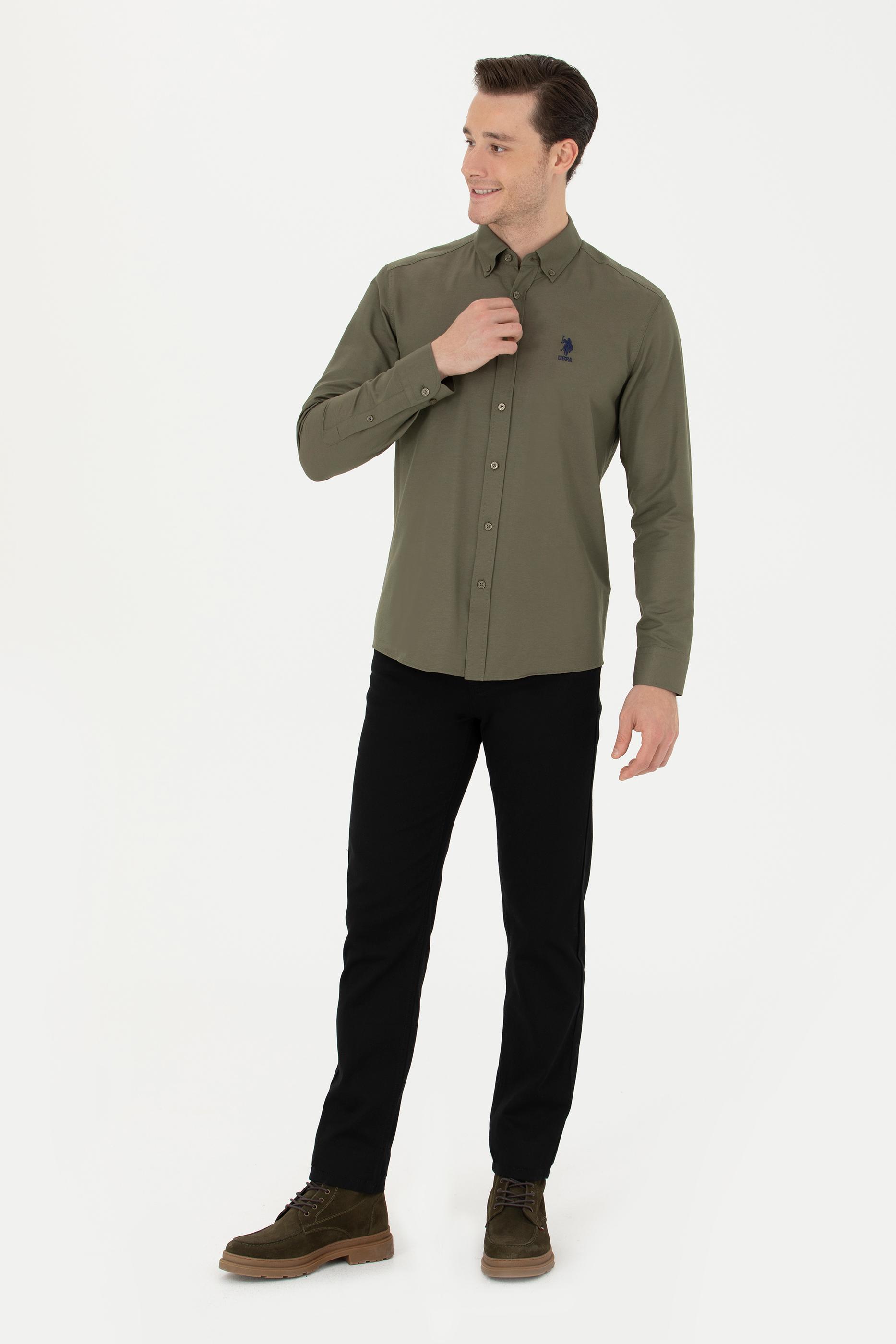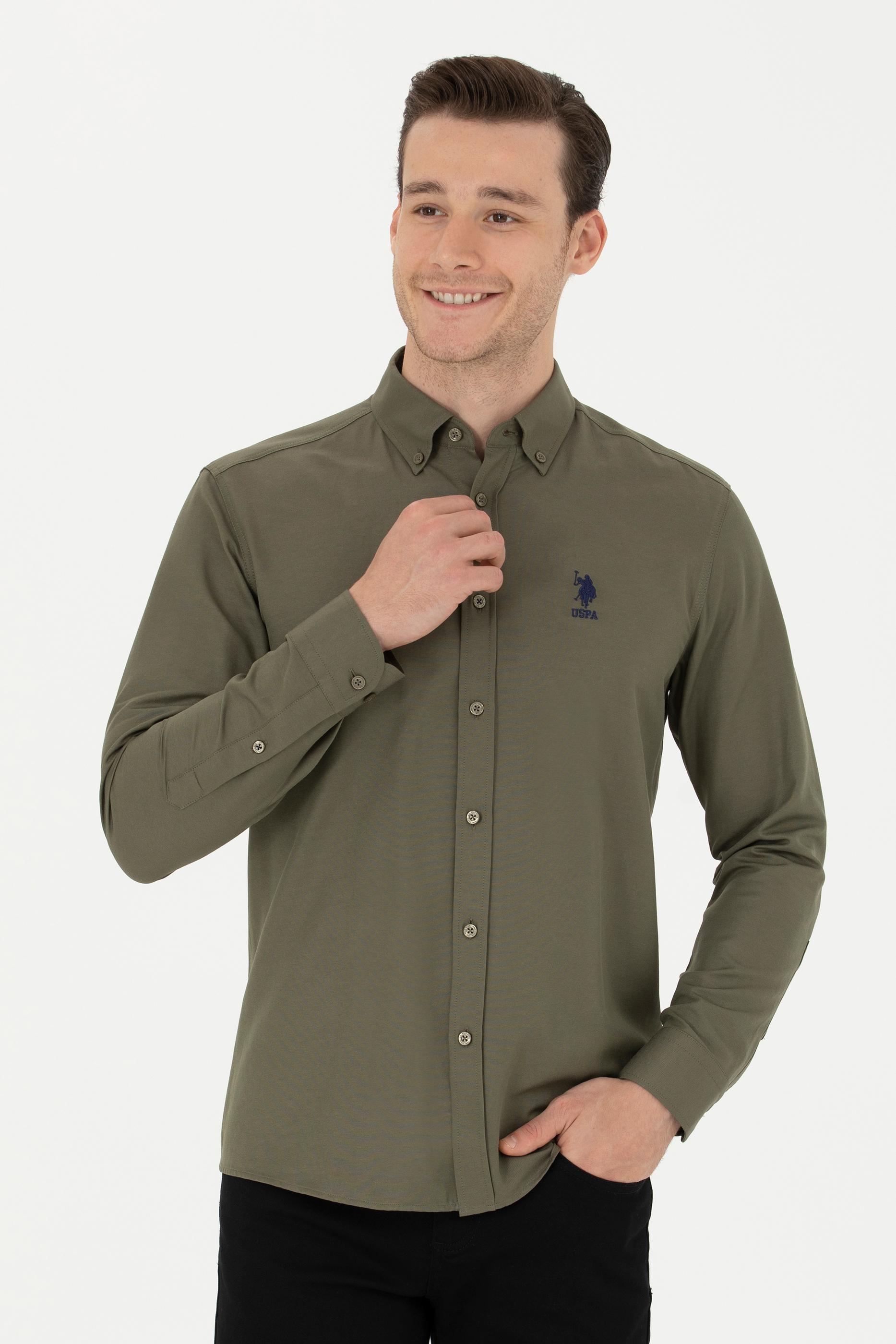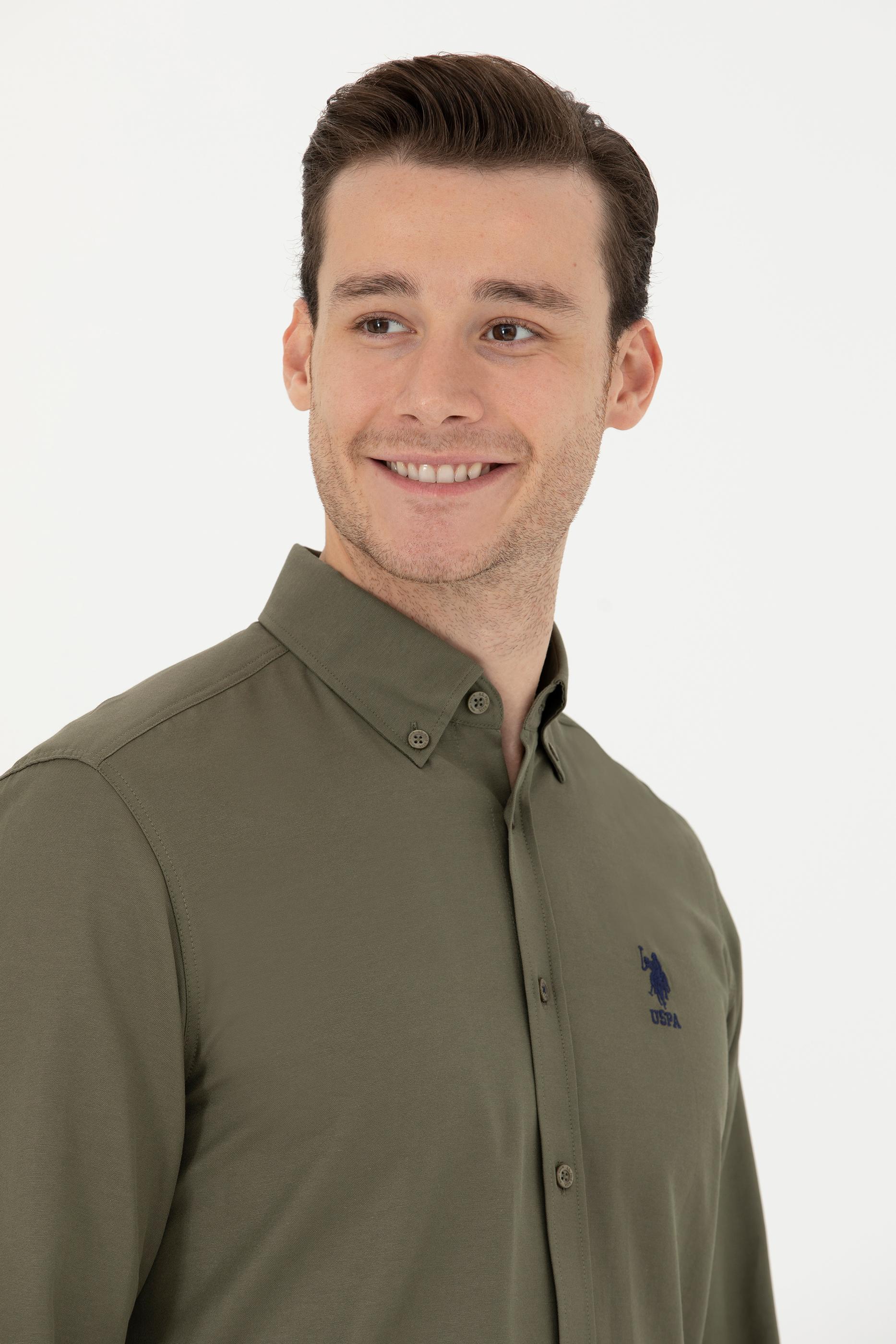 - Erkek Haki Uzun Kollu Basic Gömlek