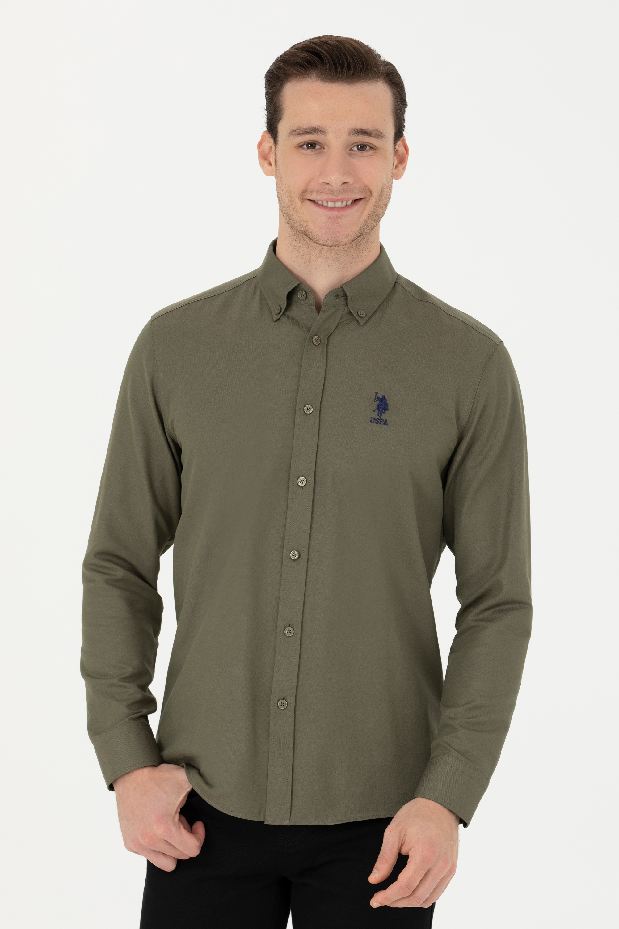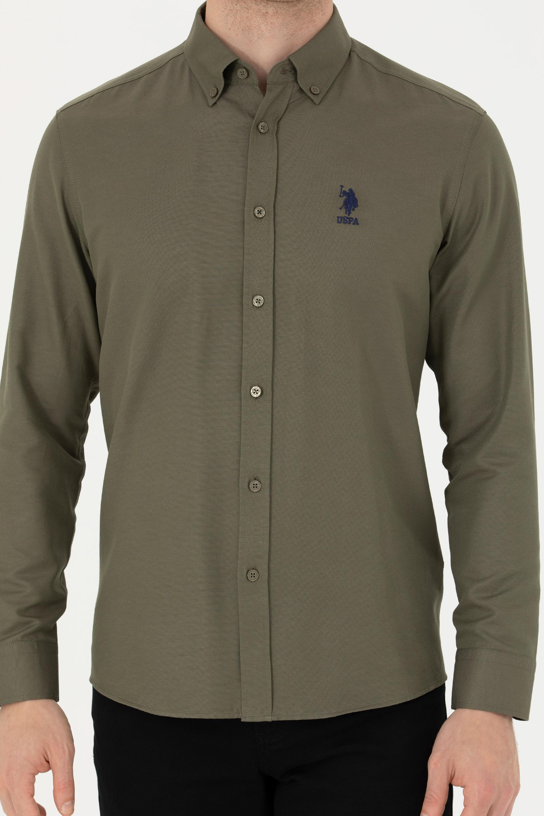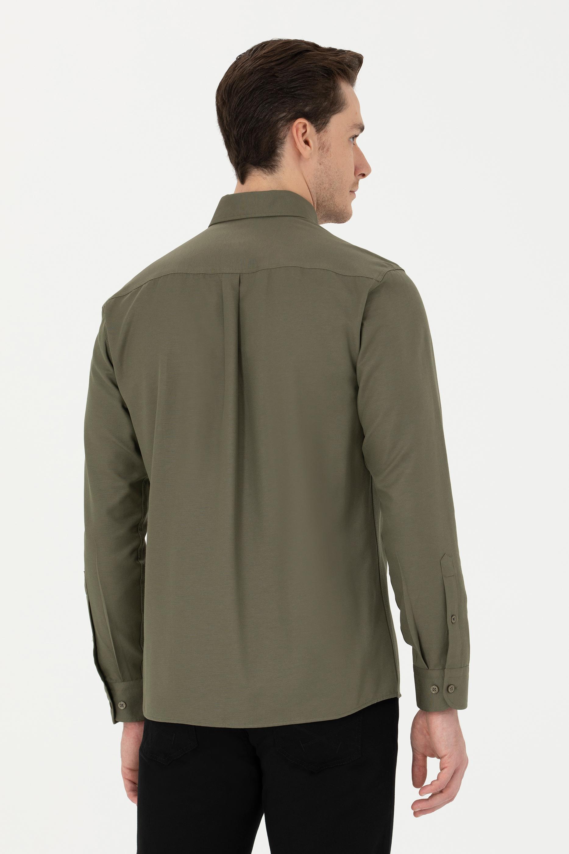- Erkek Haki Uzun Kollu Basic Gömlek