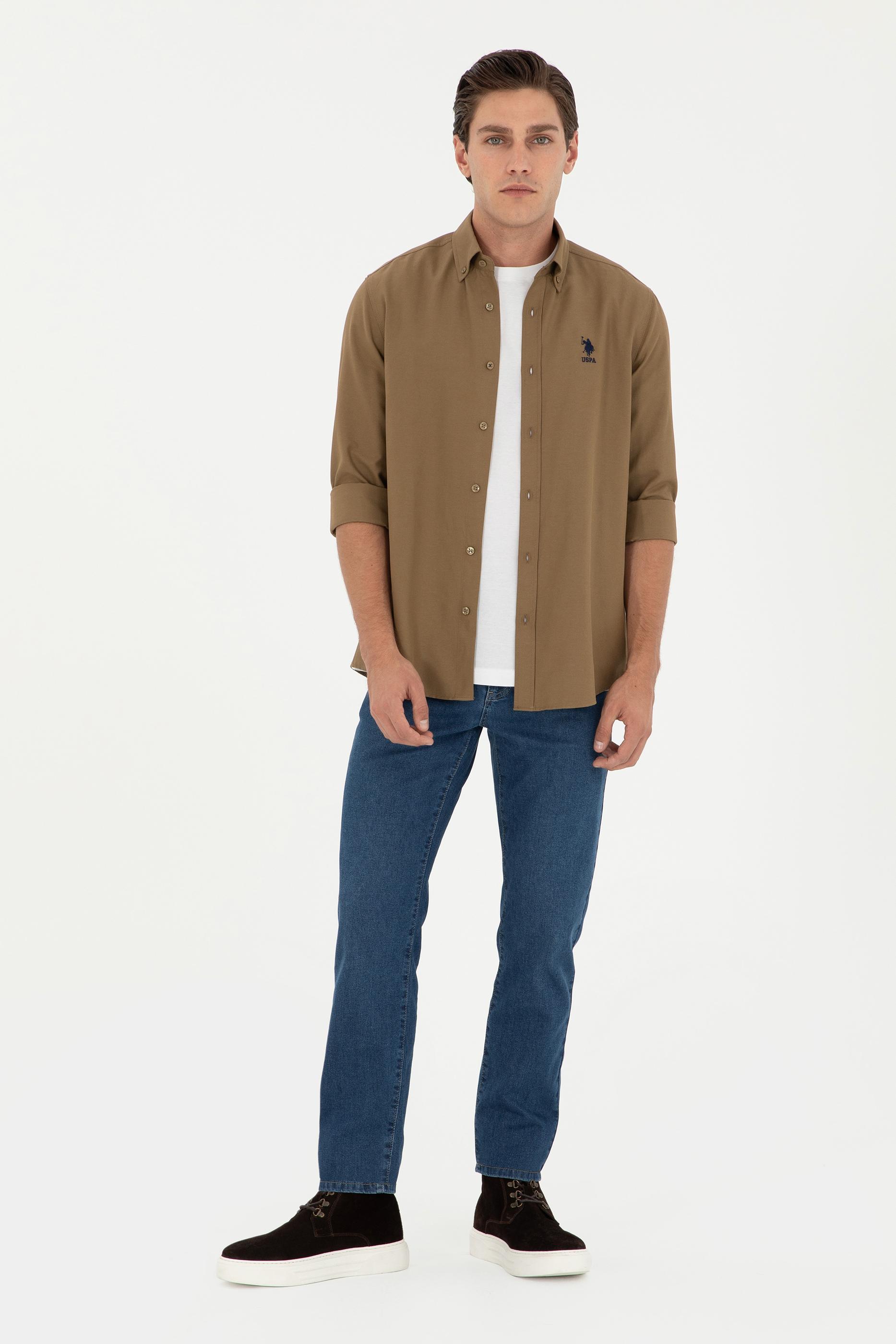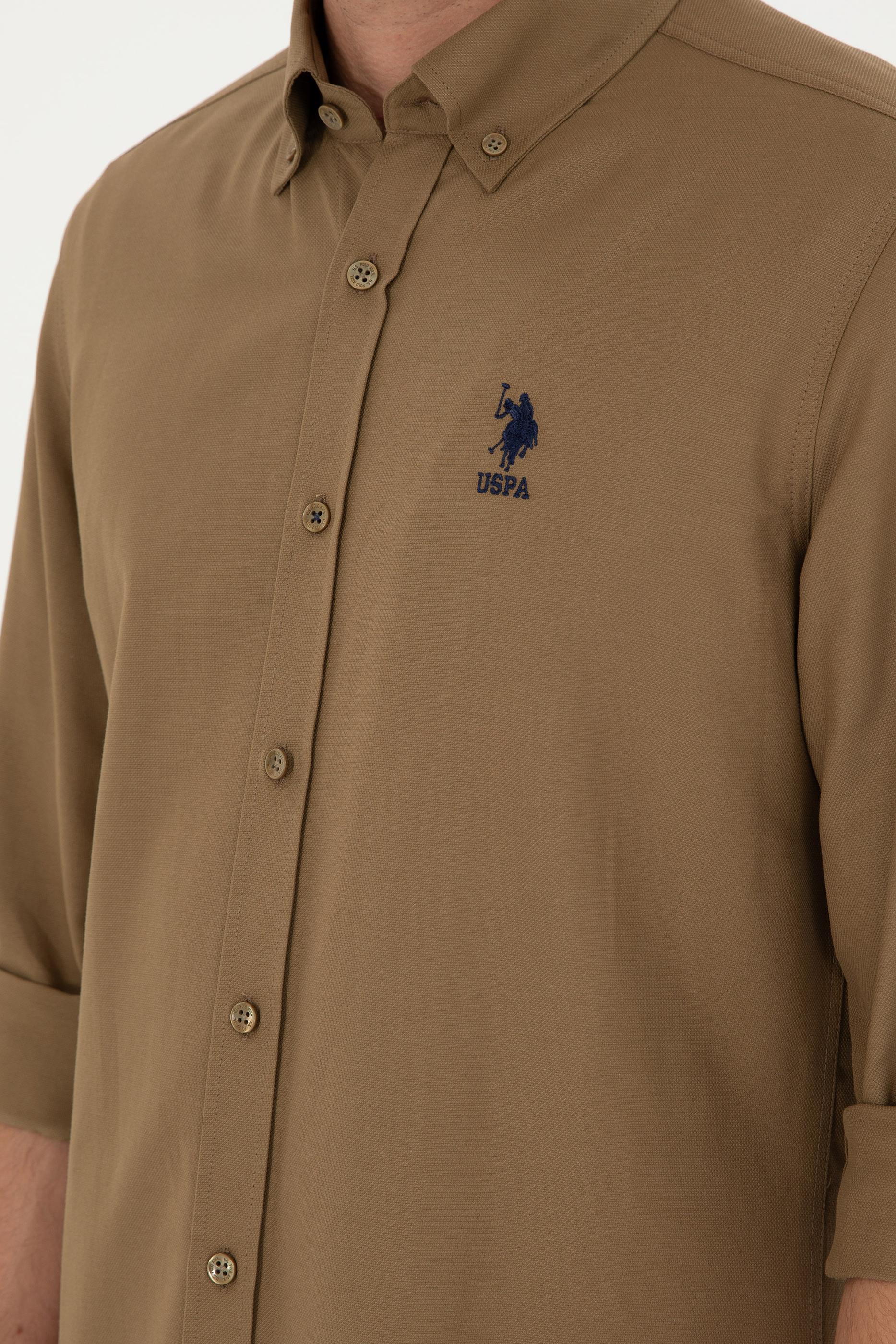 - Erkek Haki Uzun Kollu Basic Gömlek