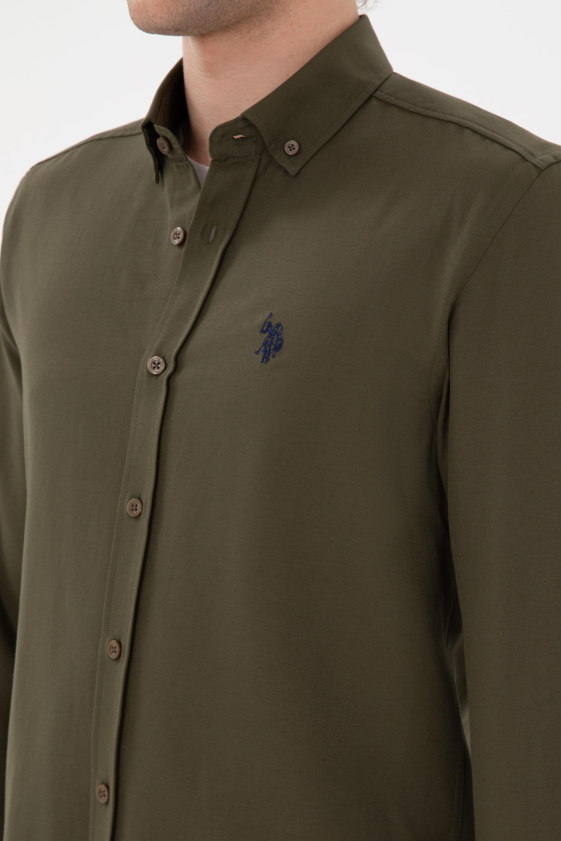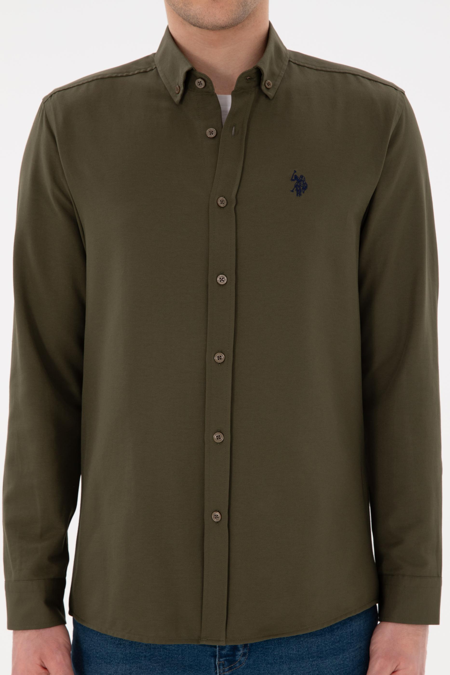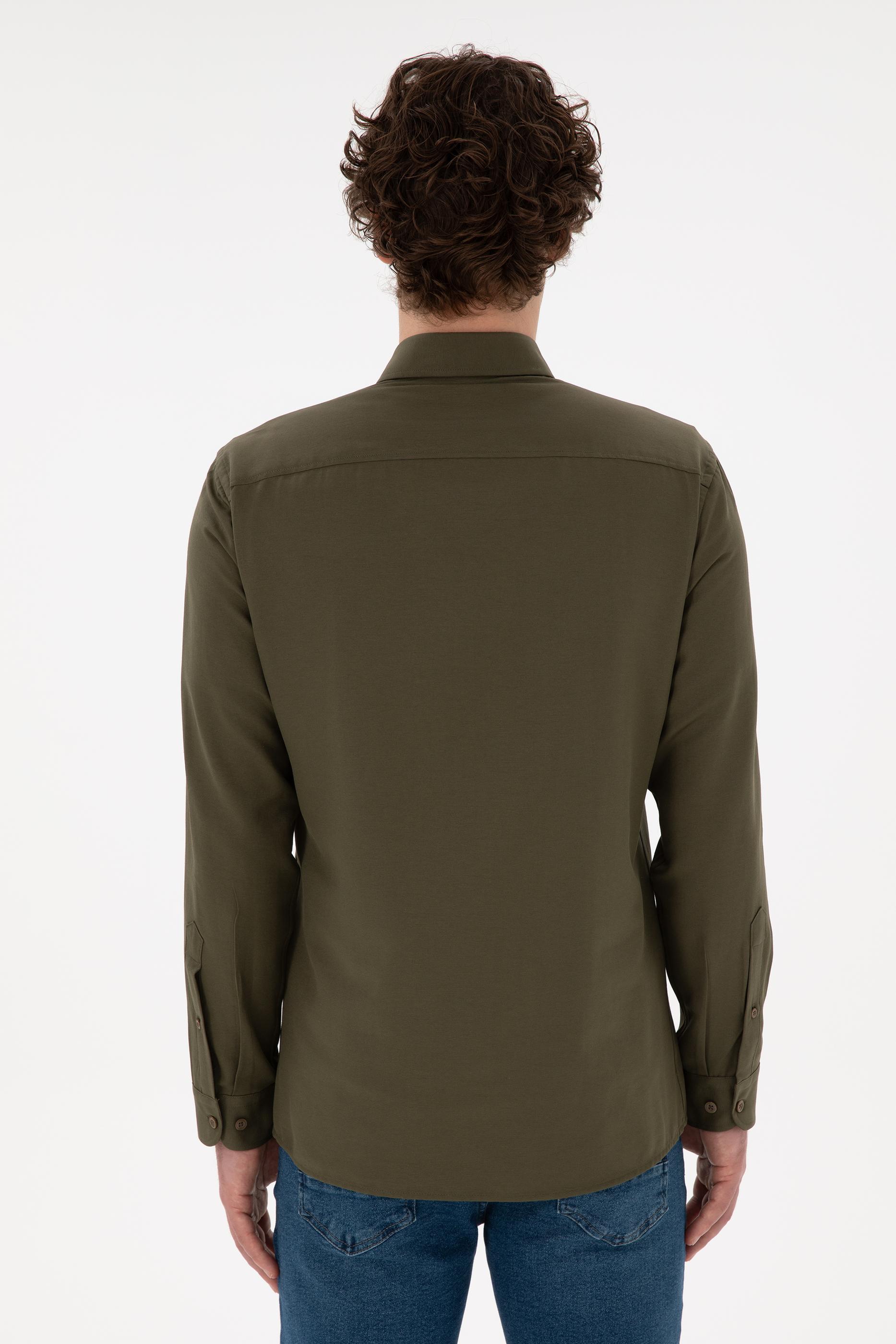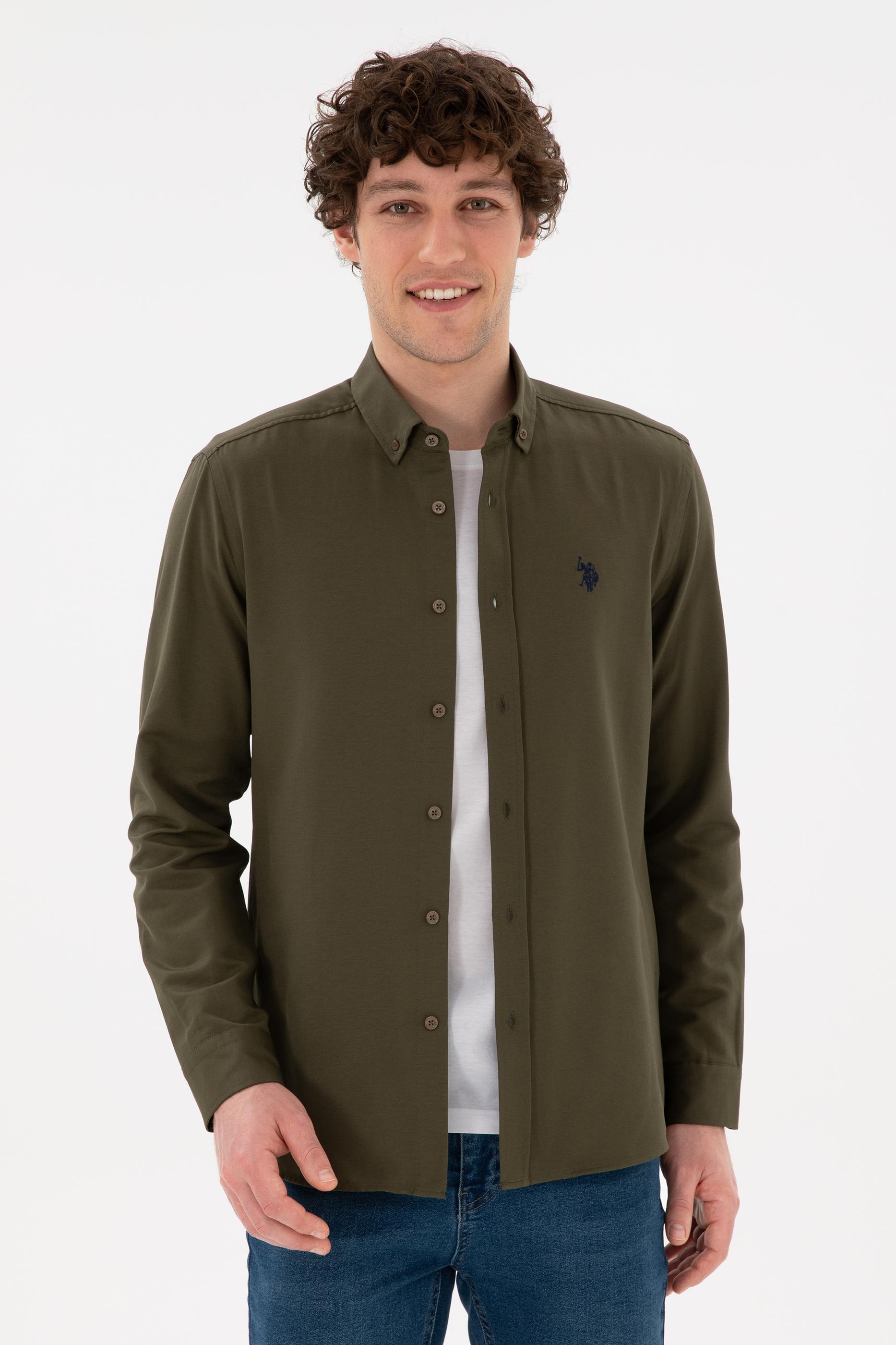 - Erkek Haki Uzun Kollu Basic Gömlek