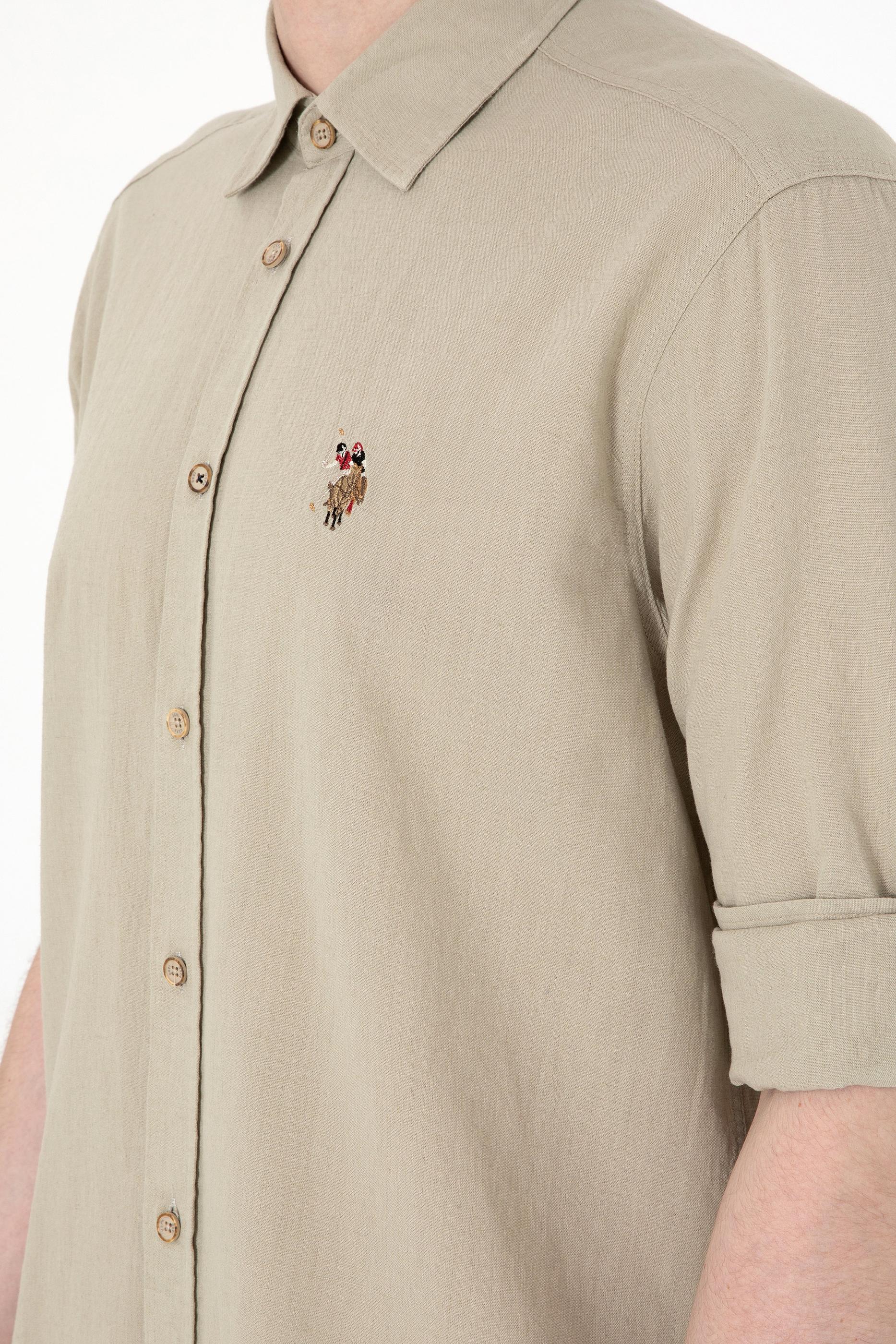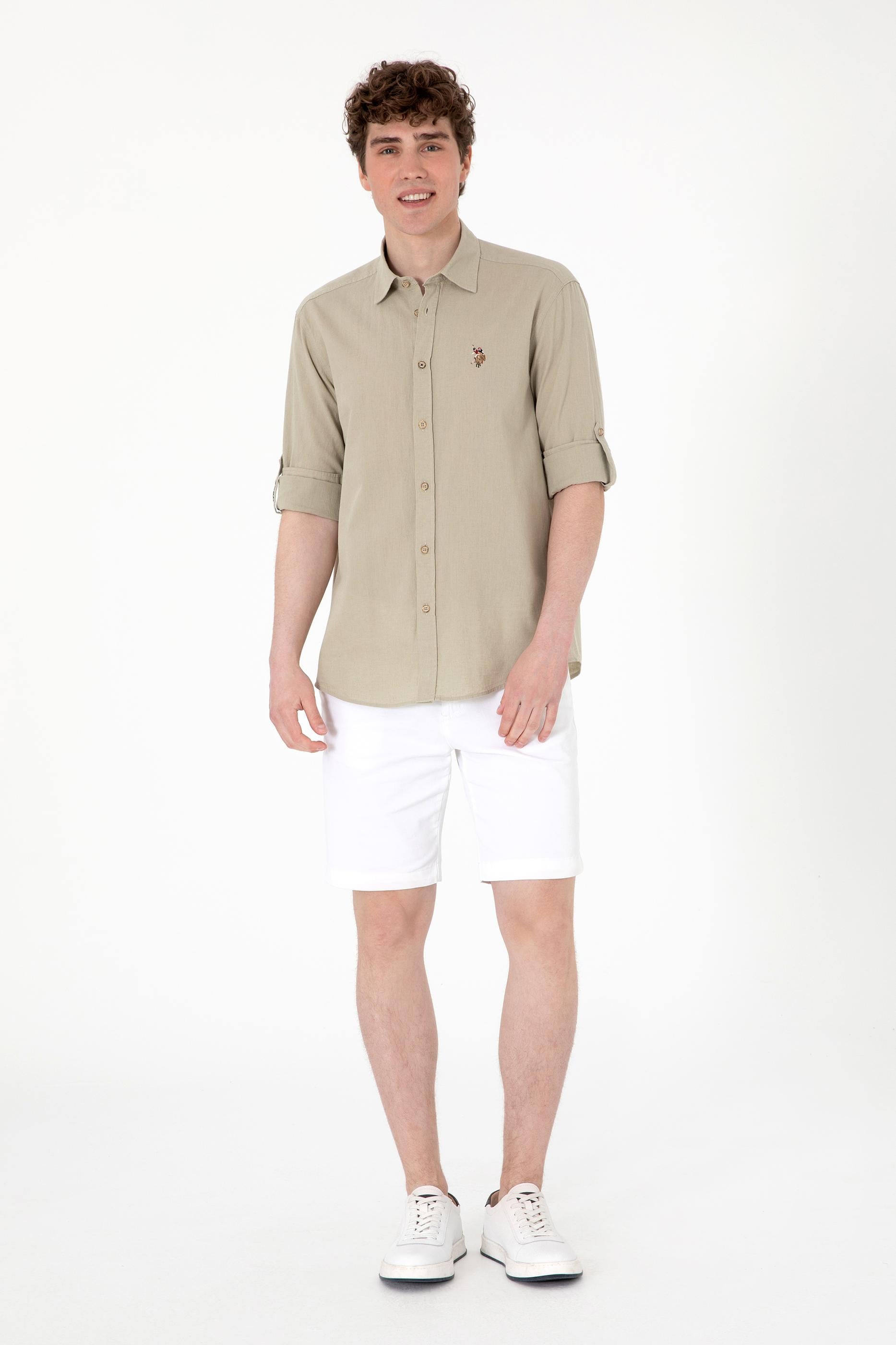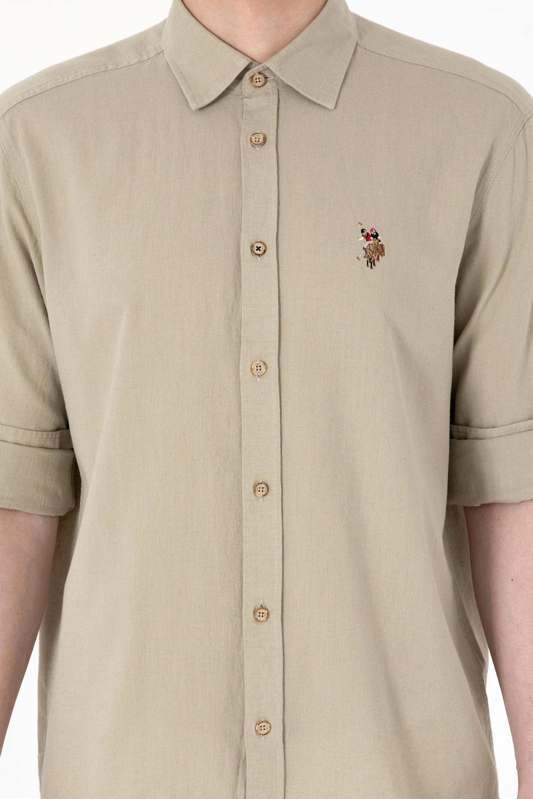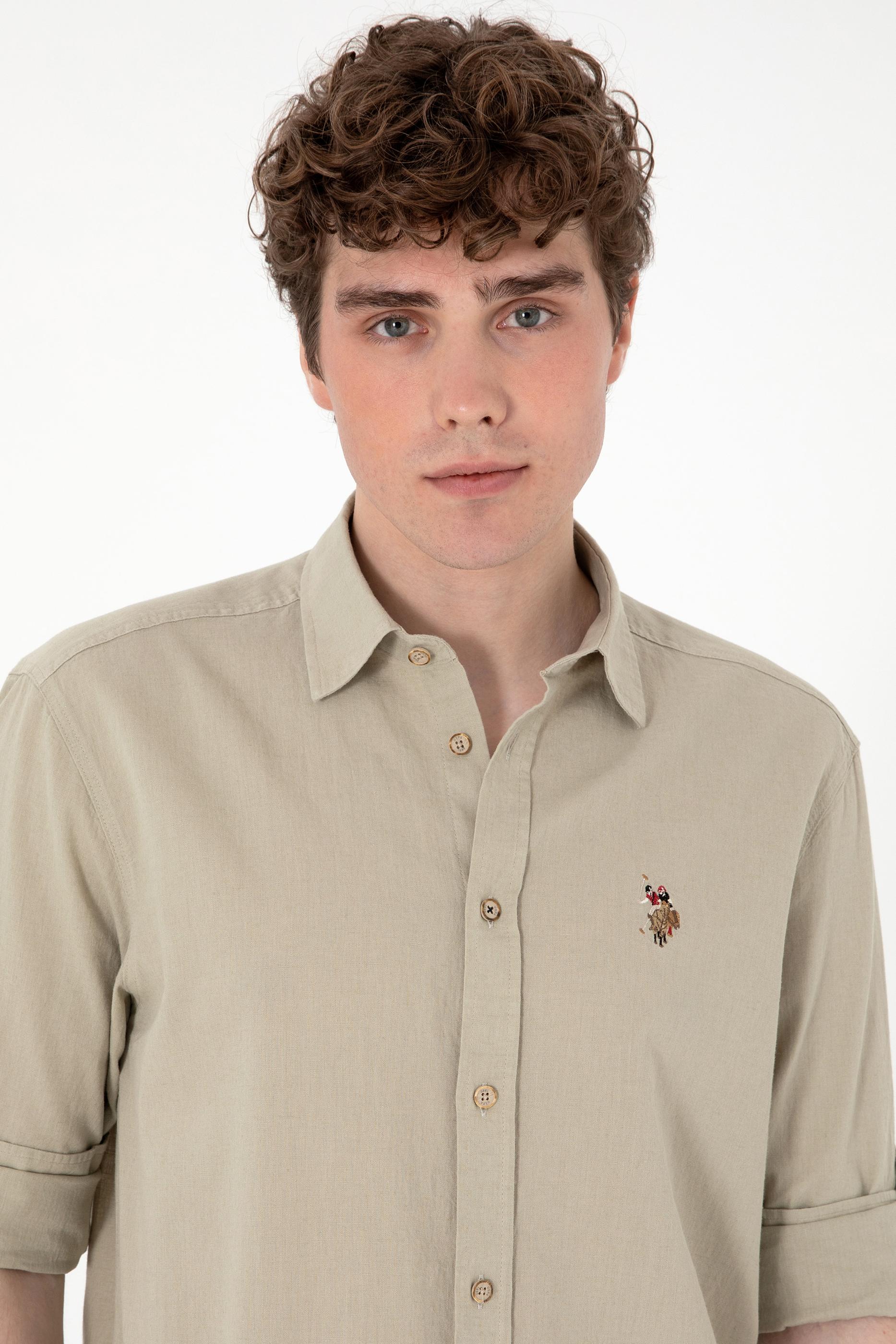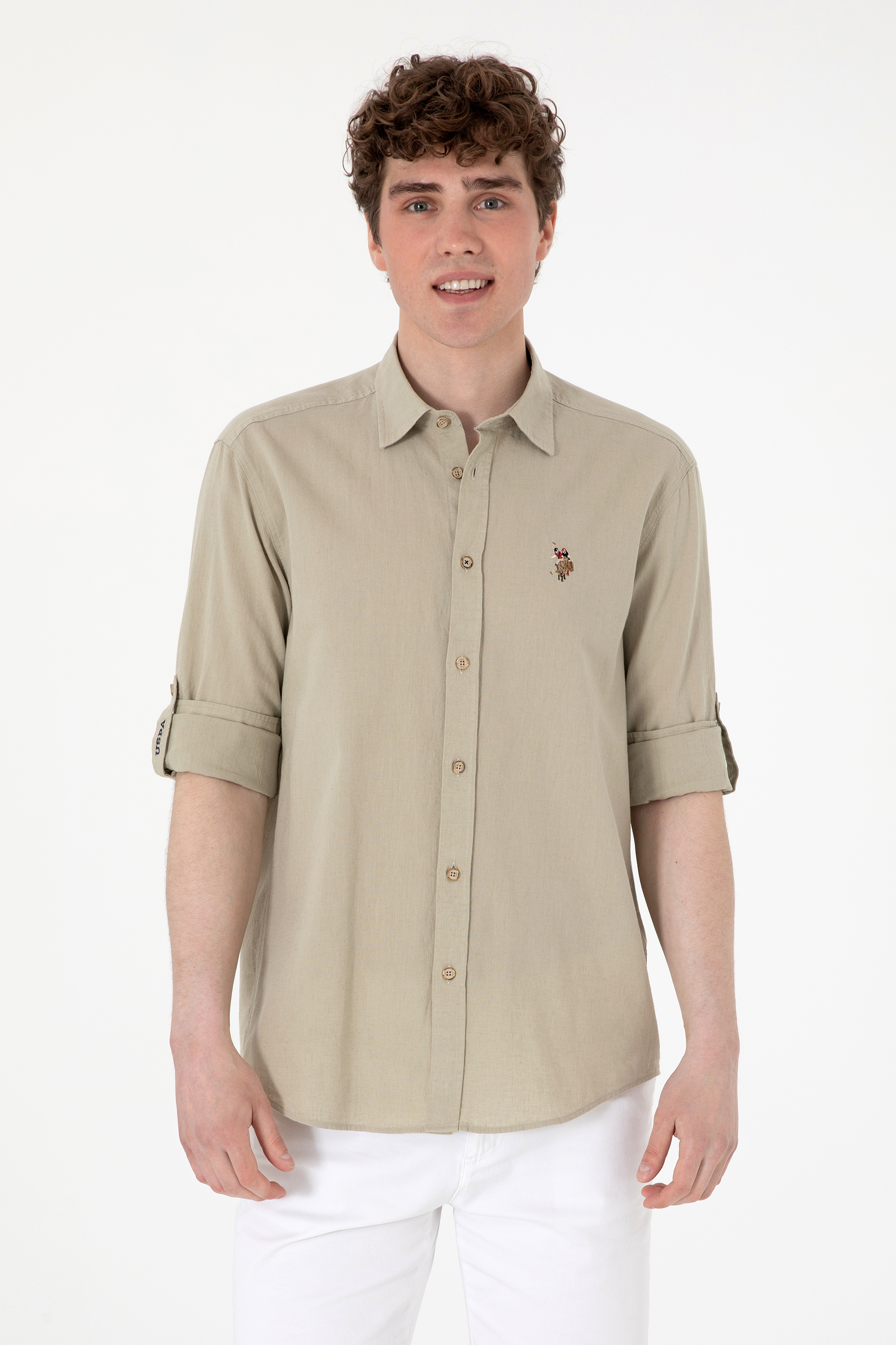 - Erkek Haki Uzun Kollu Basic Gömlek