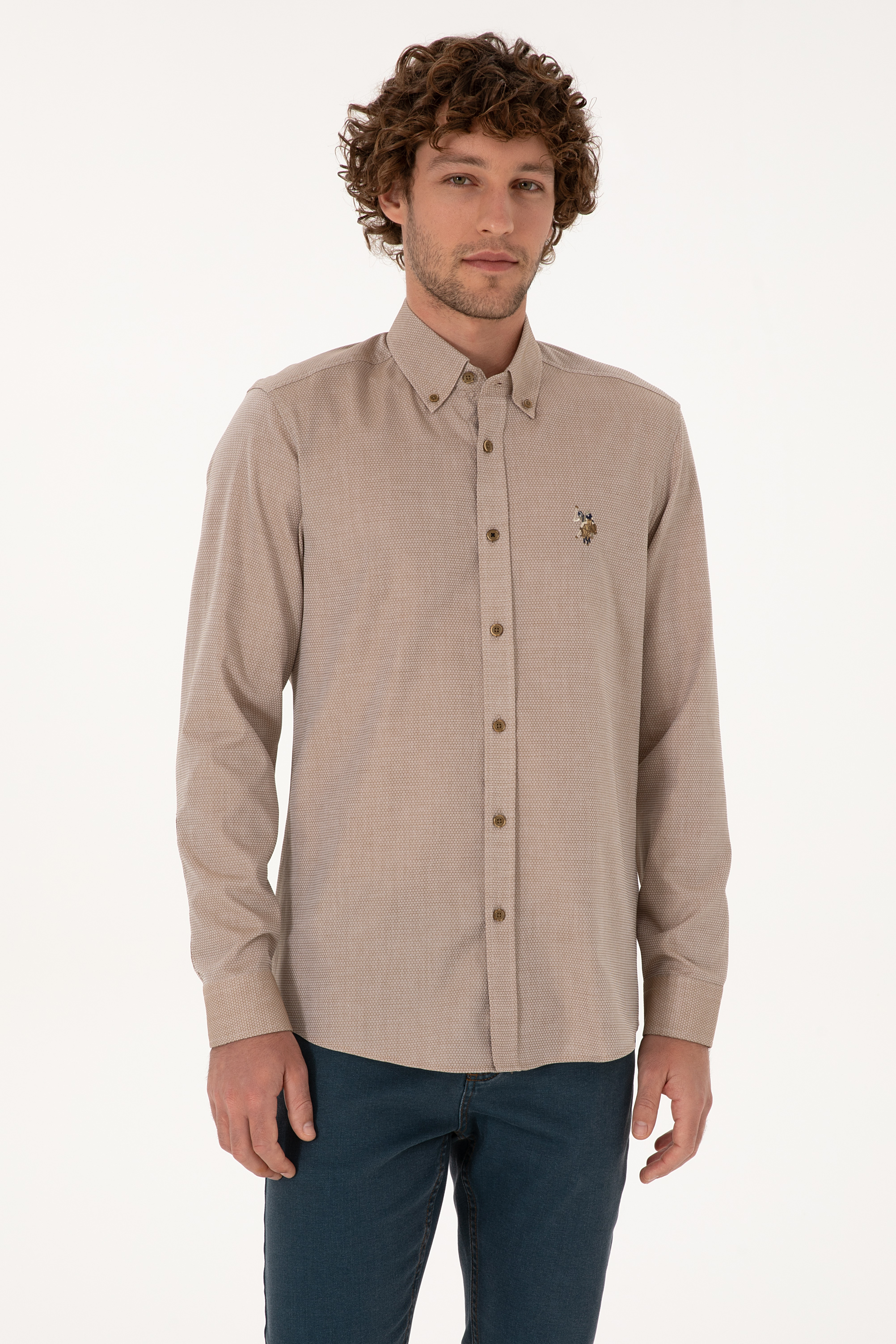 Erkek Haki Uzun Kollu Basic Gömlek