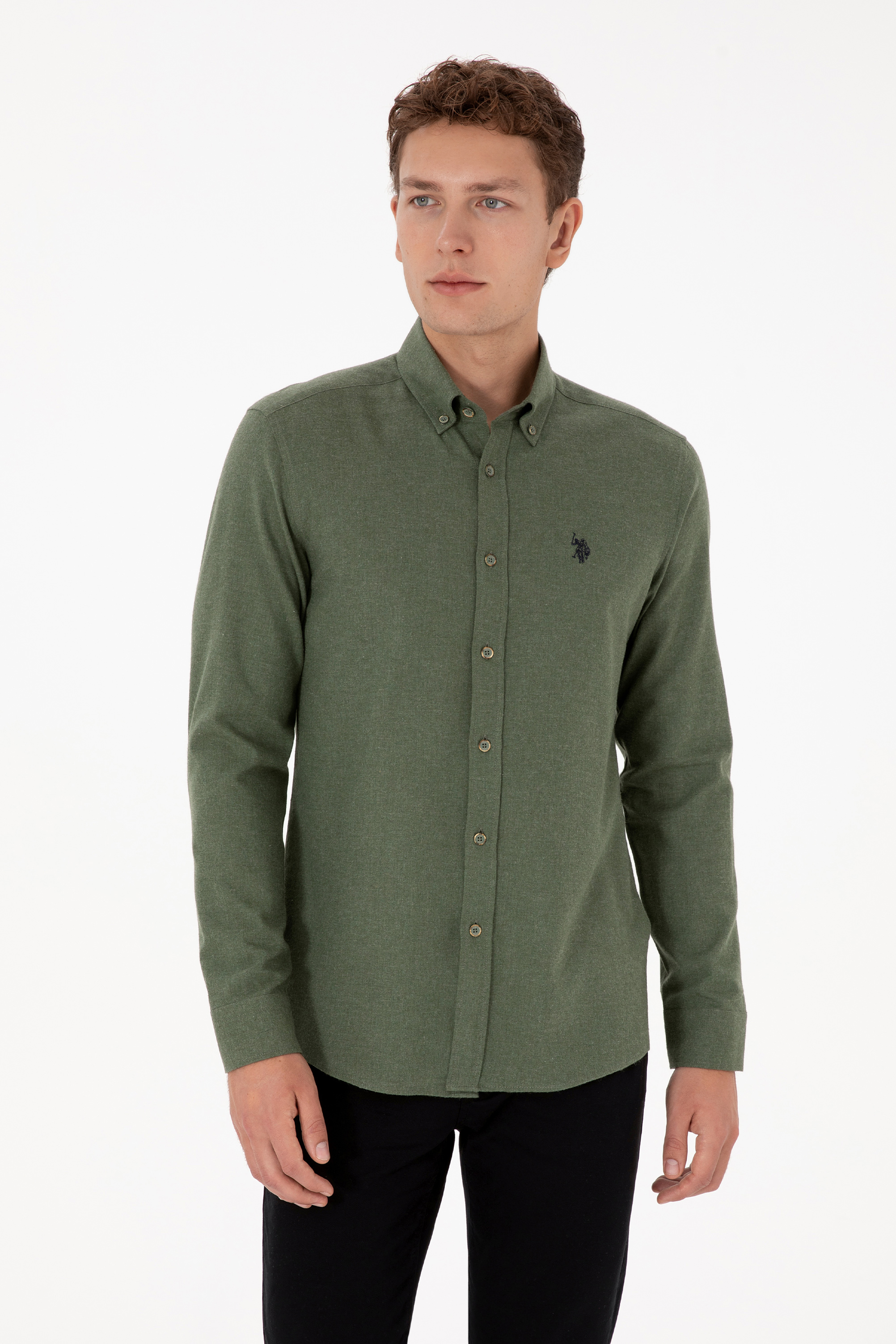 - Erkek Haki Uzun Kollu Basic Gömlek