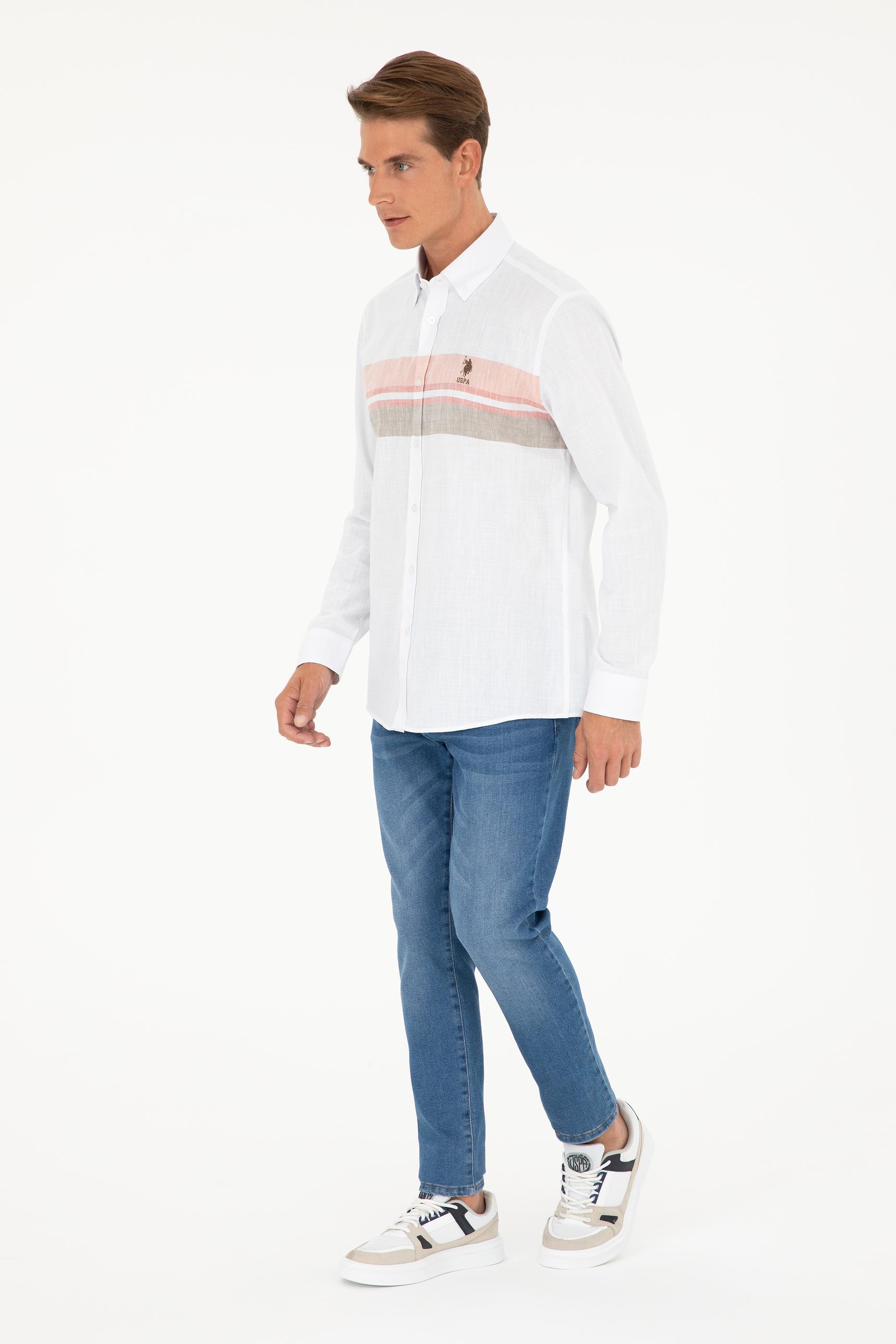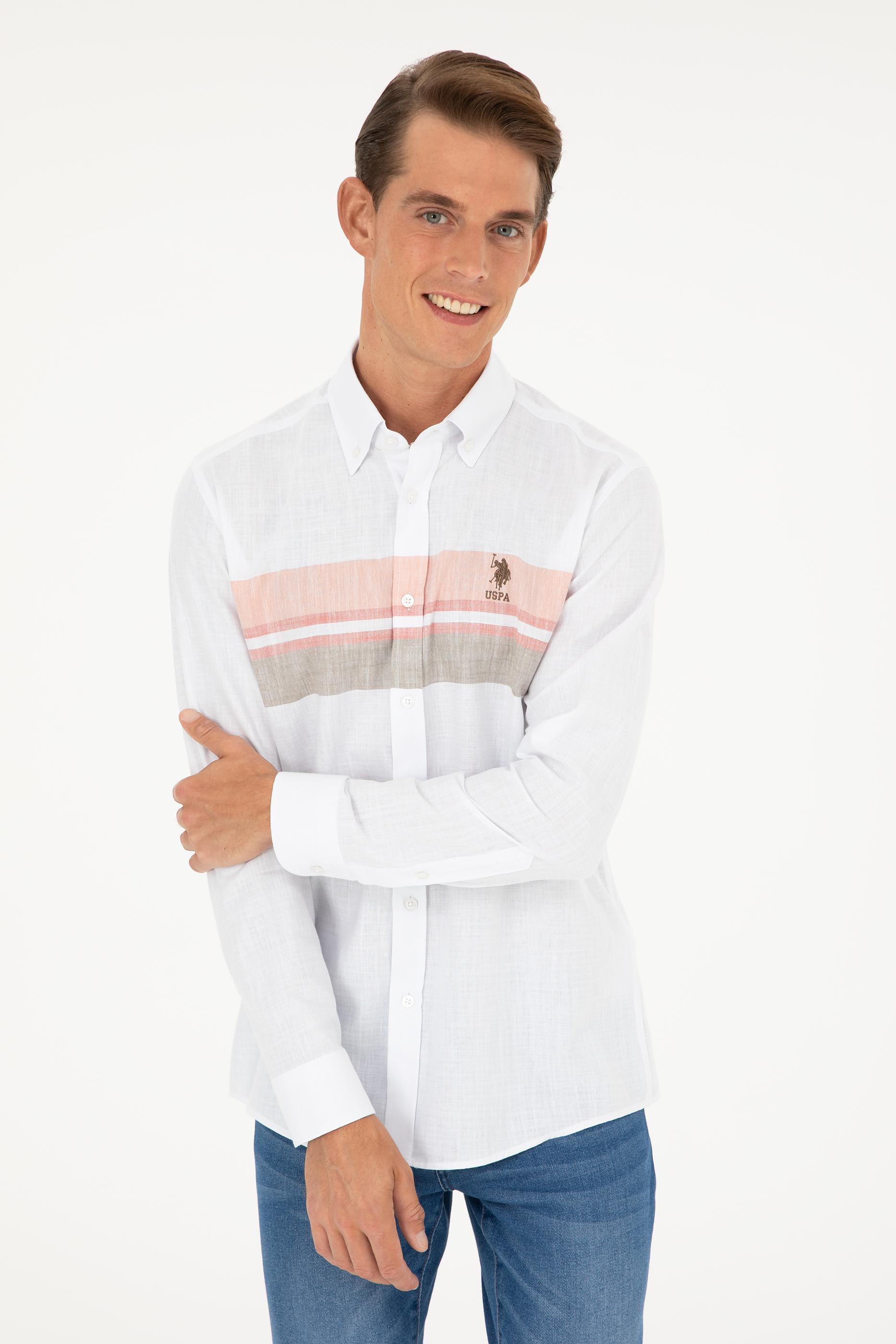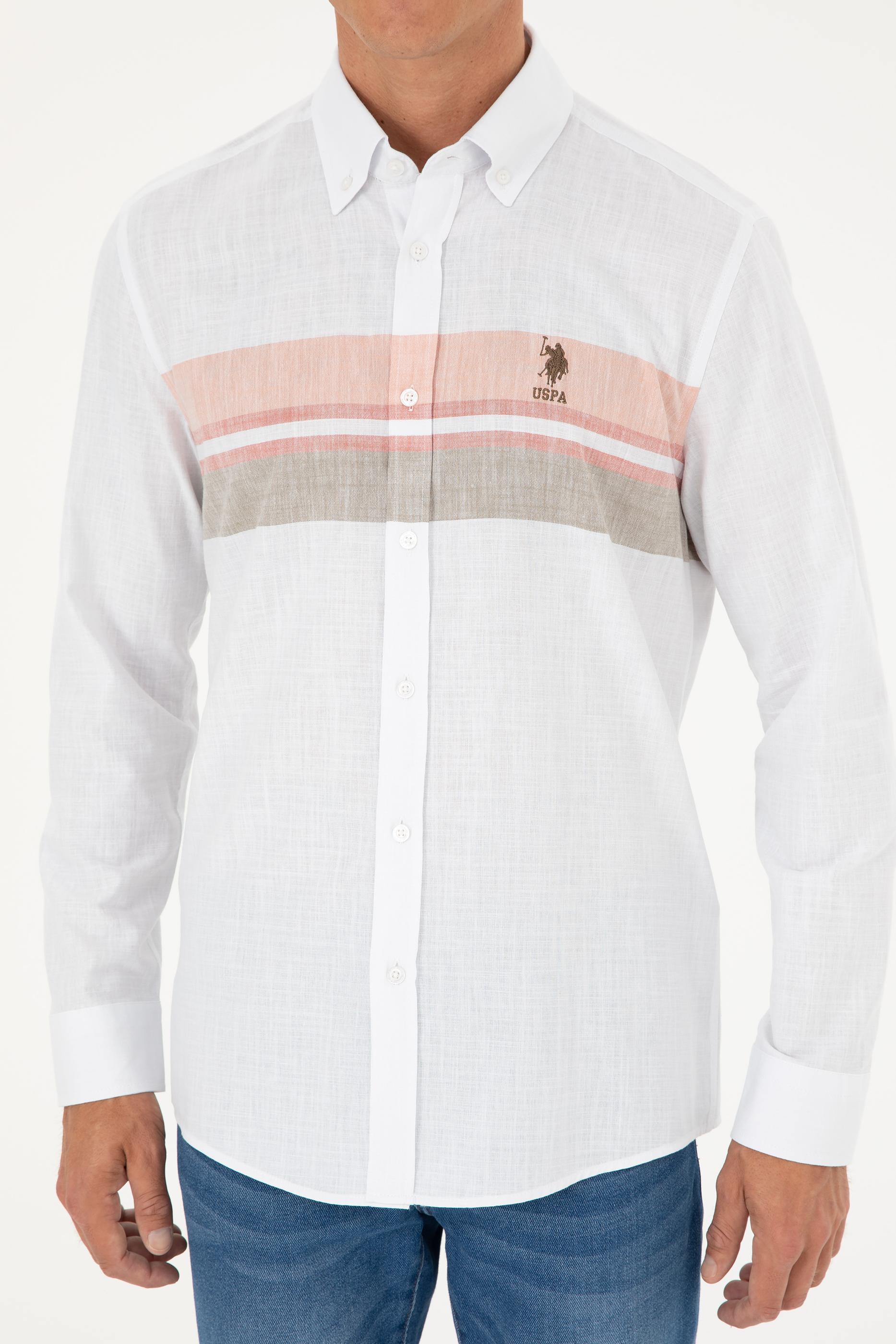 %100 pamuktan üretilen panolu beyaz gömlek, hafif ve nefes alabilir yapısıyla konforu ön plana çıkarır. Pamuklu kumaşı sayesinde cildinizin rahat nefes almasını sağlar ve gün boyu süren konfor sunar. Gömlek, panolu tasarımıyla klasik beyaz gömleğe modern bir dokunuş kazandırır. Haki, bej ve pastel tonlardaki paneller gömleğe dinamik ve şık bir görünüm katarak her ortamda dikkat çekmenizi sağlar.