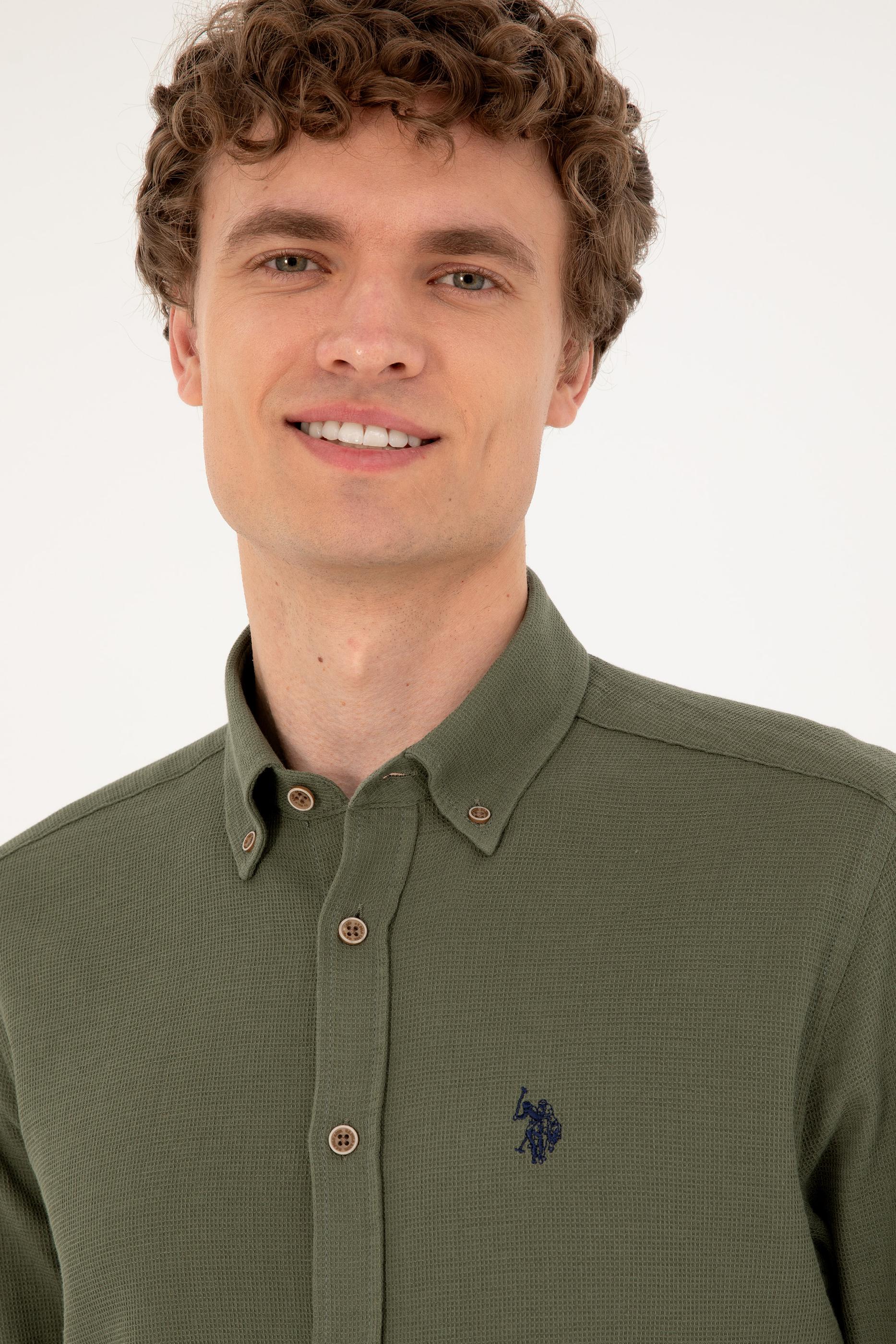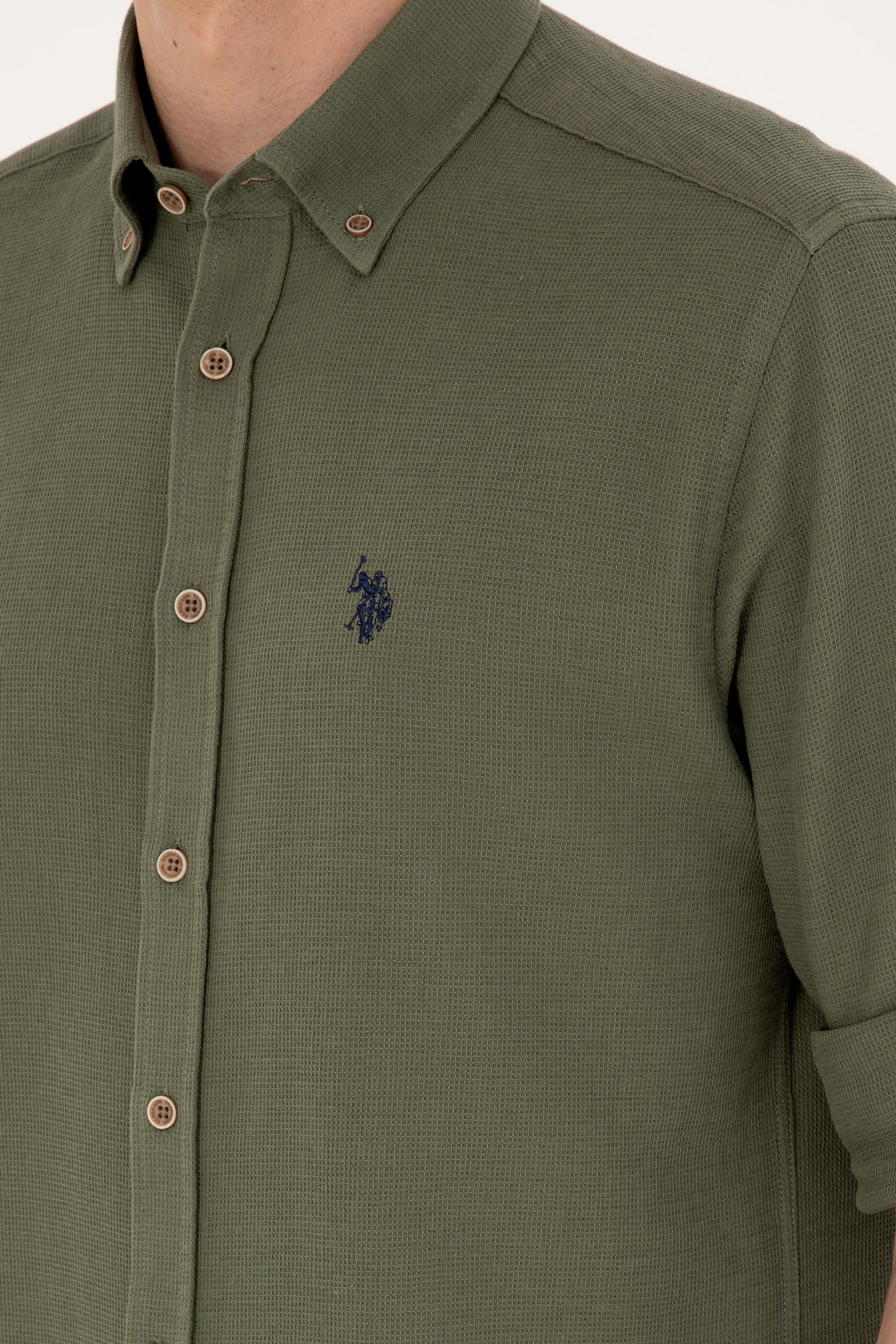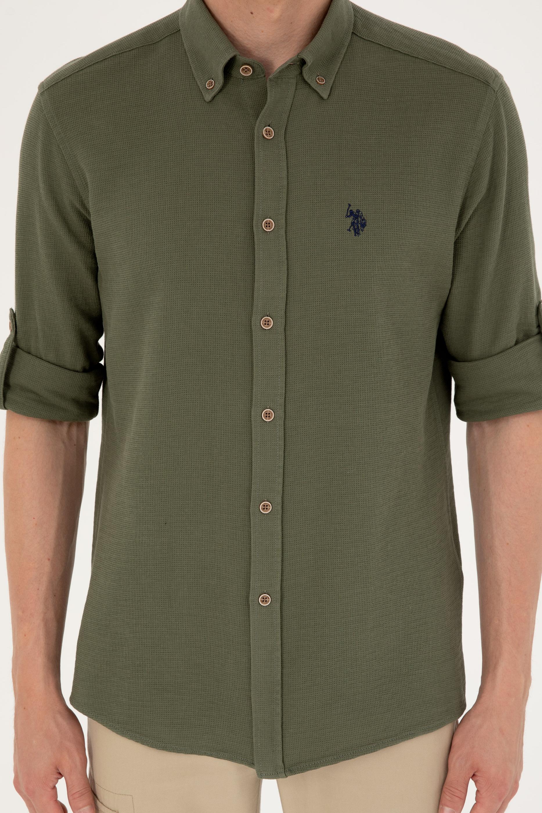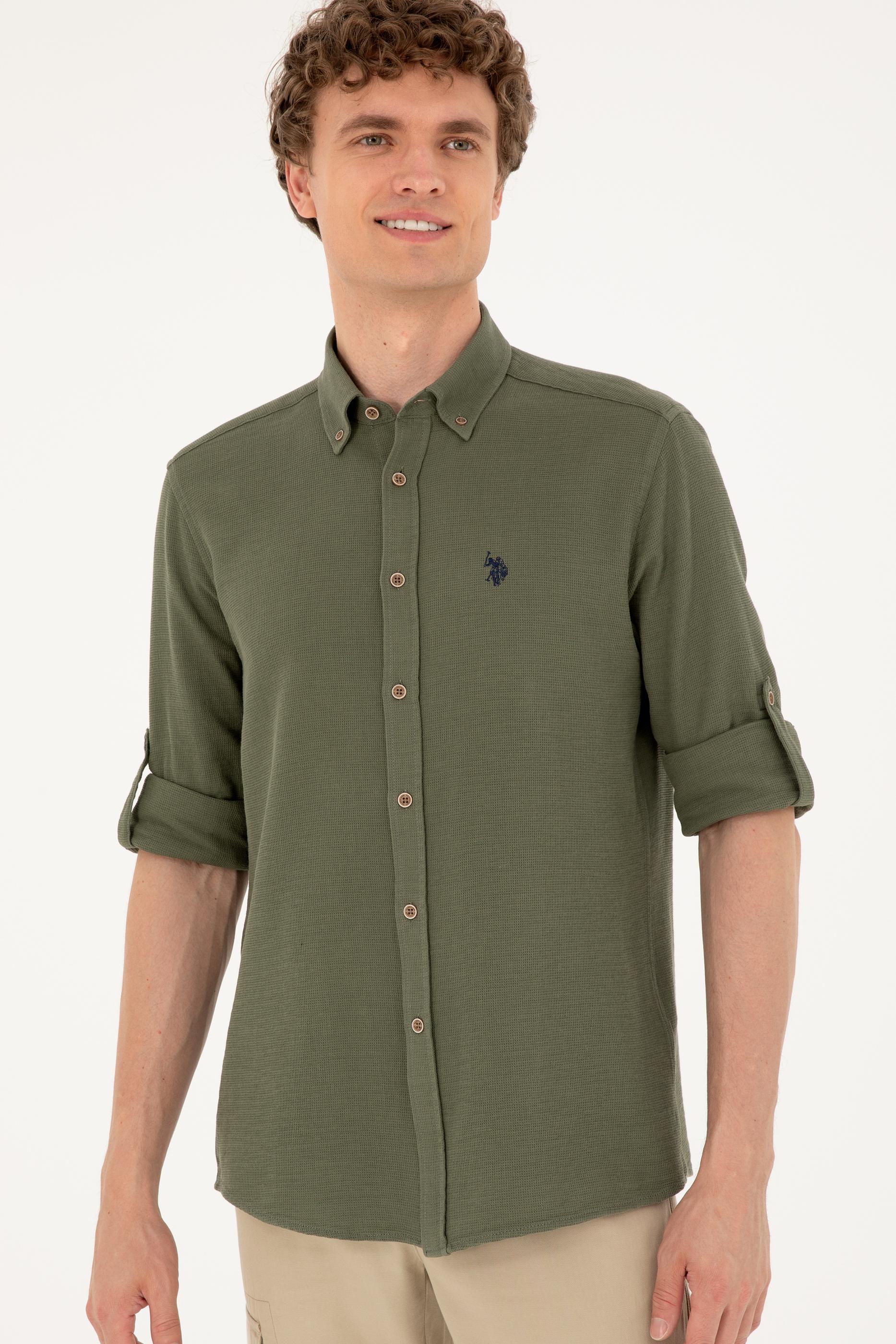 Erkek Haki Uzun Kollu Gömlek