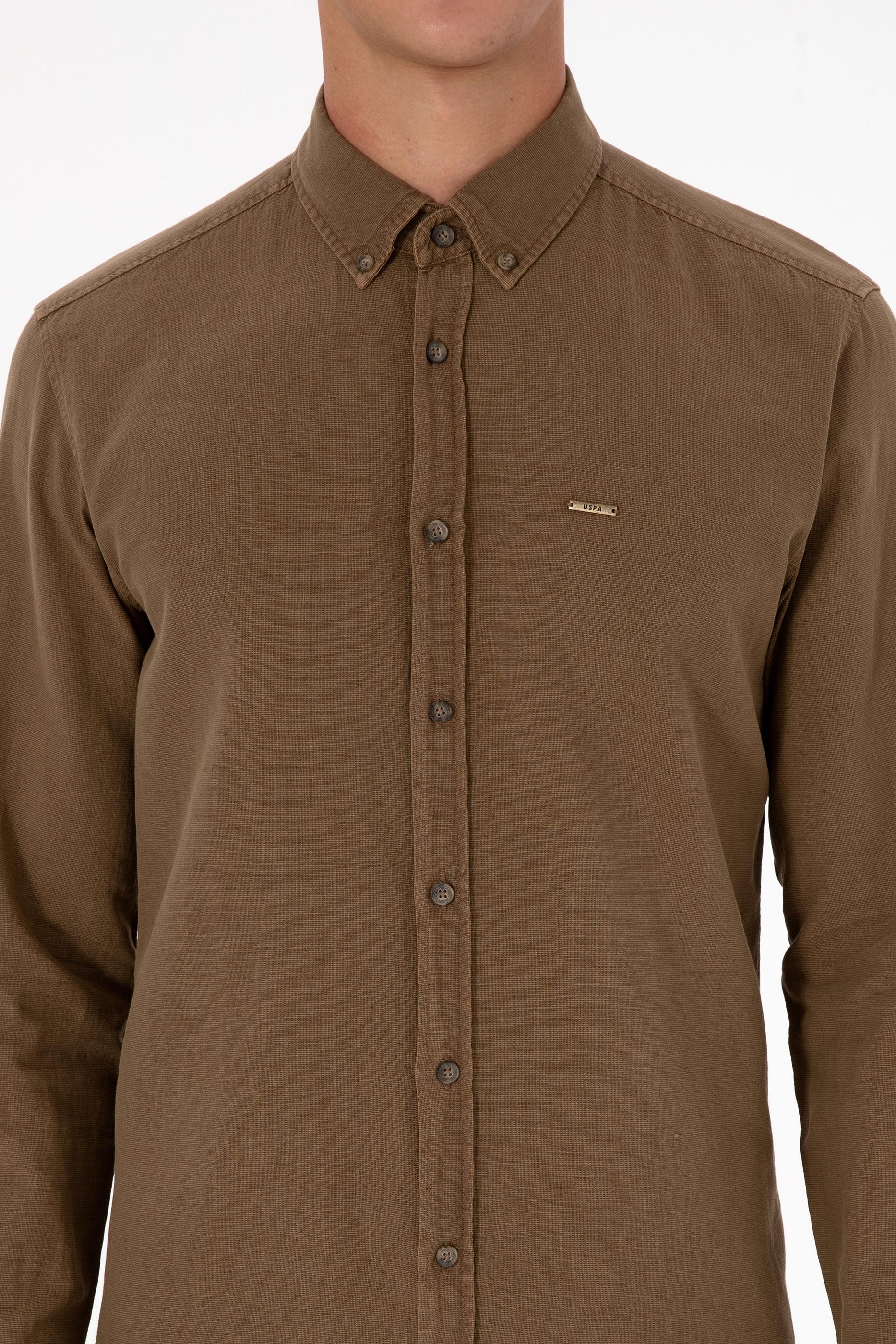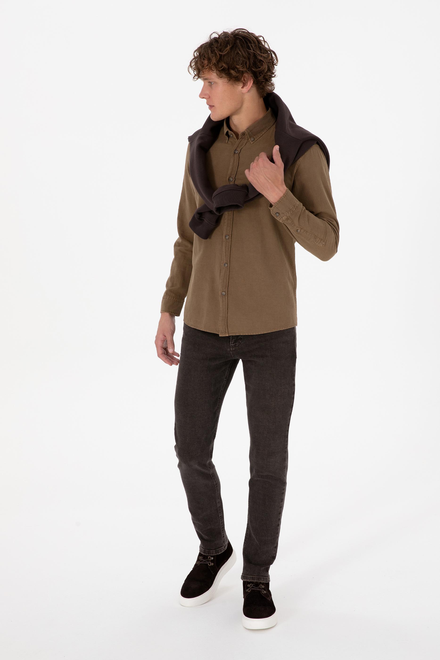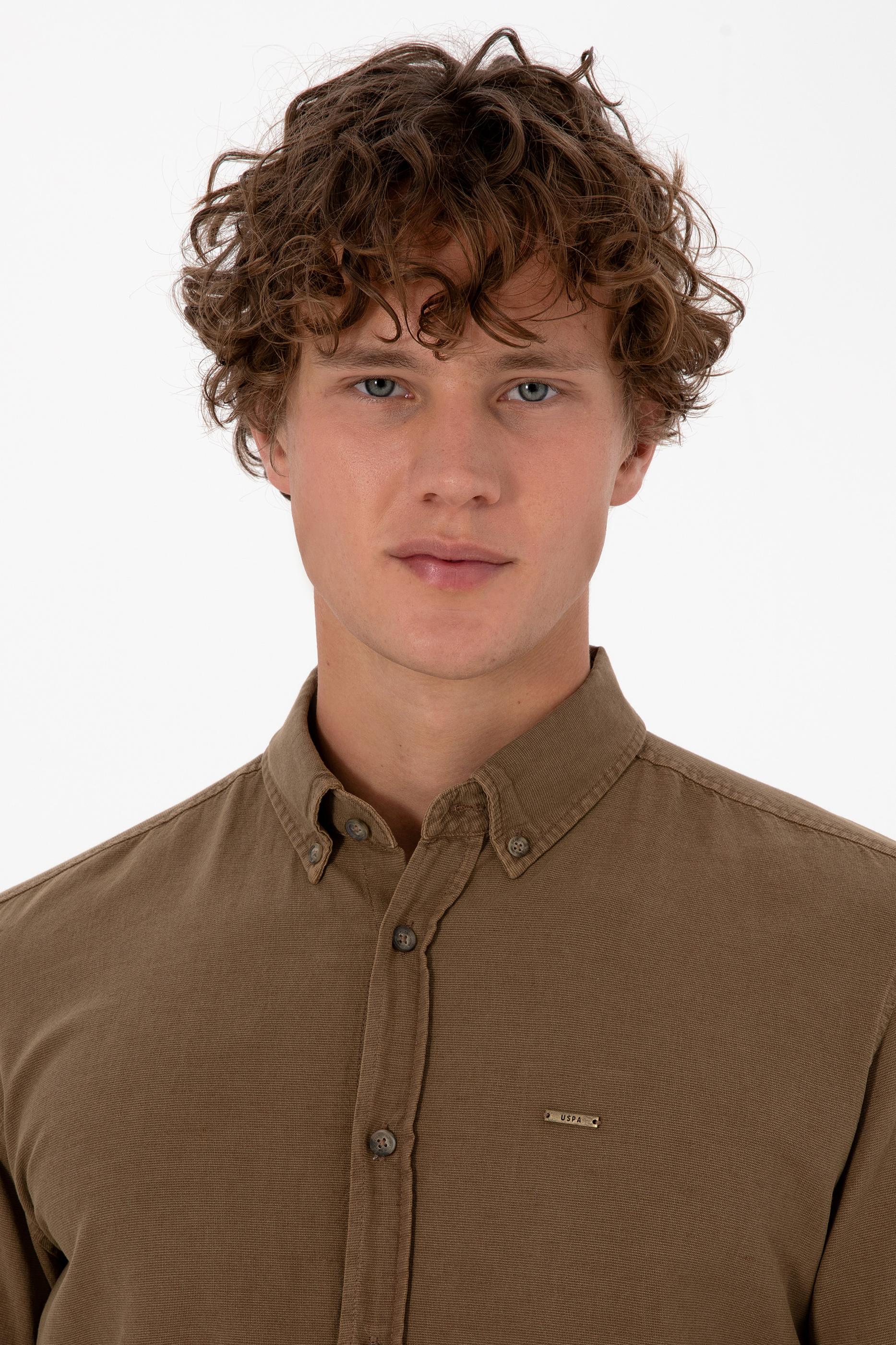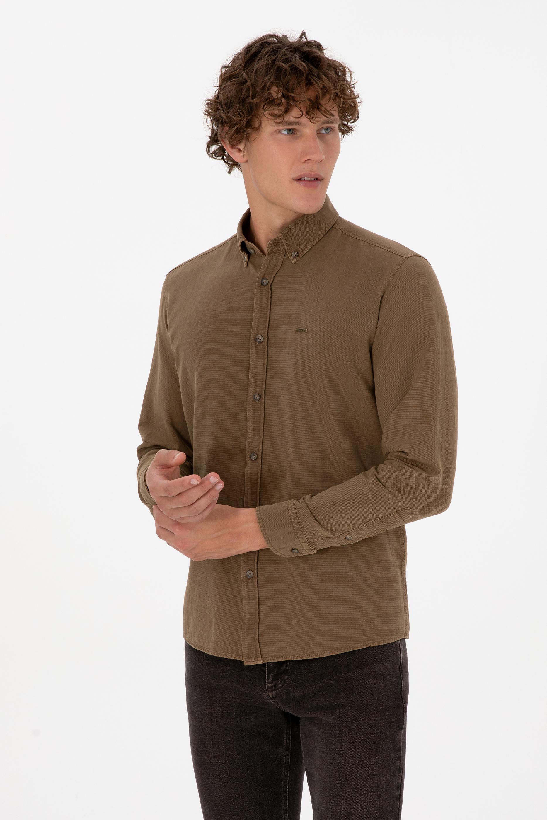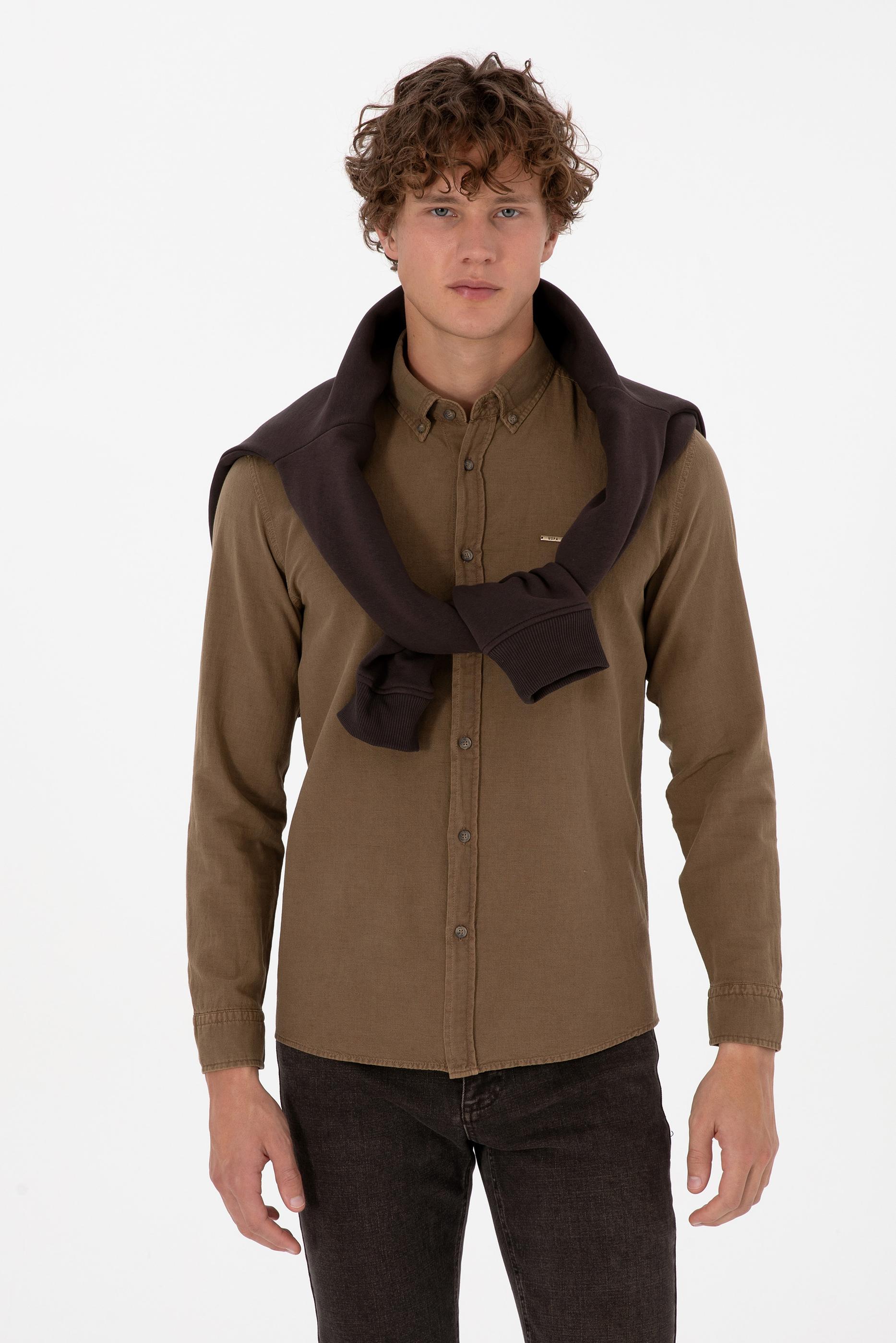 "name": "Erkek Haki Uzun Kollu Gömlek",
