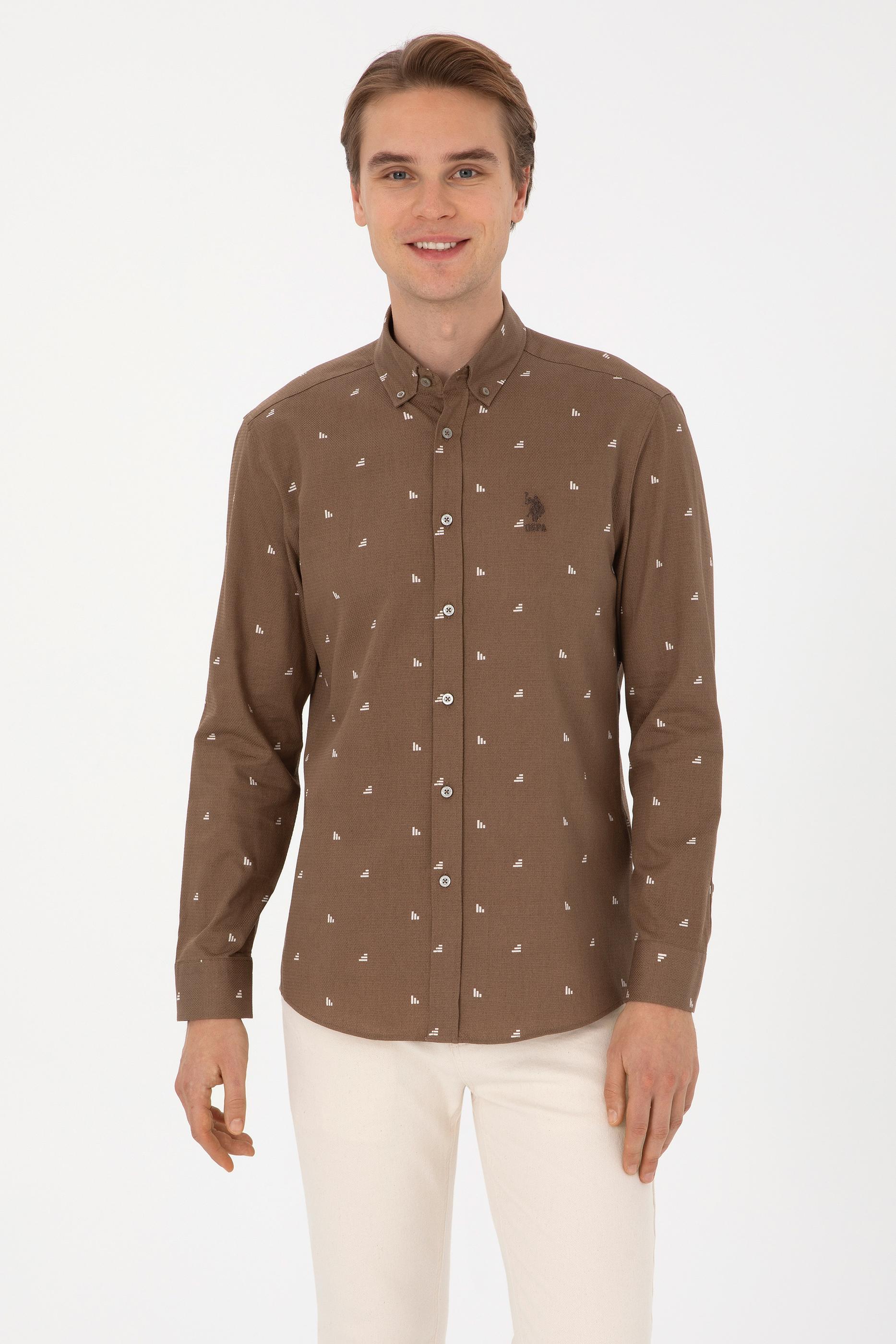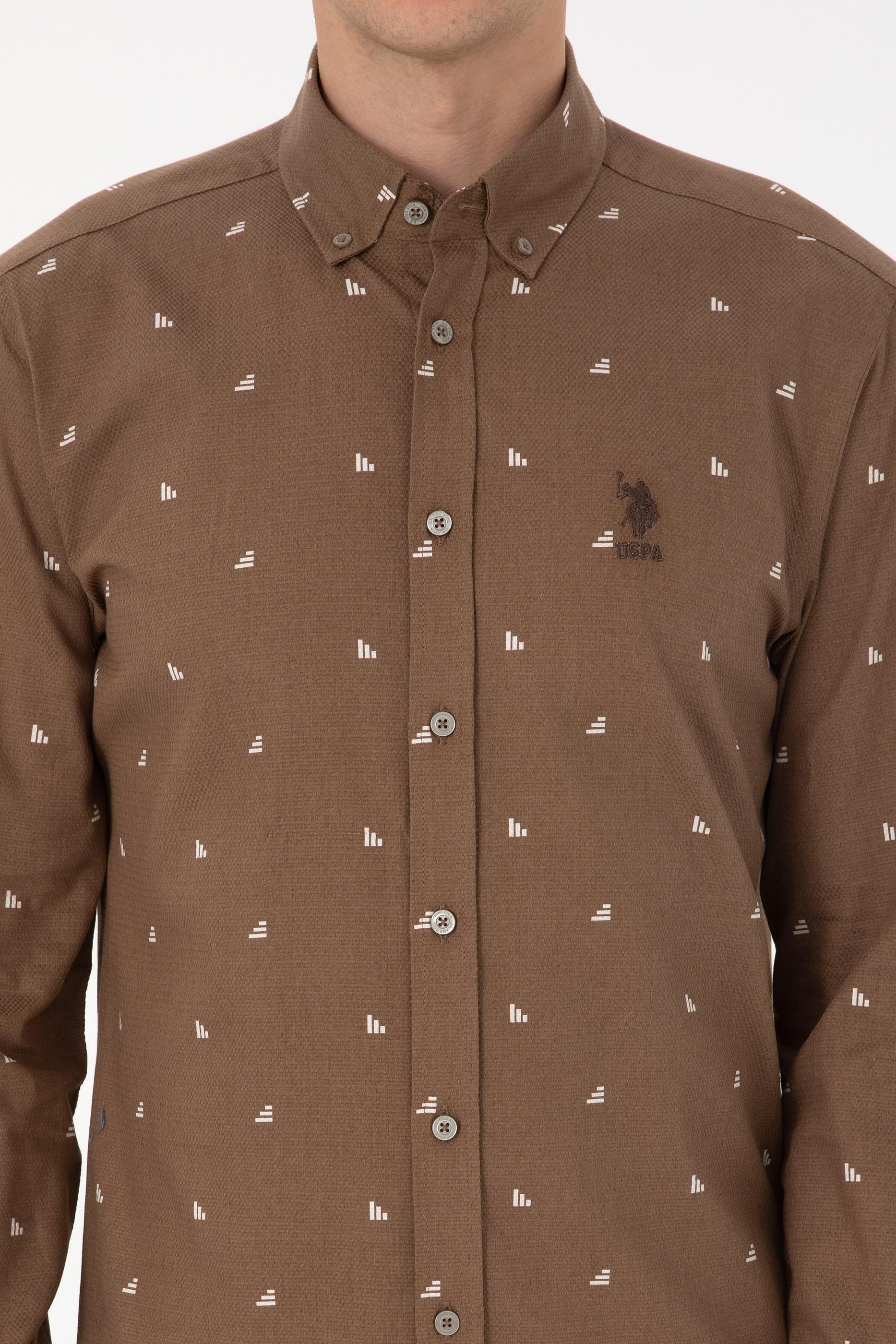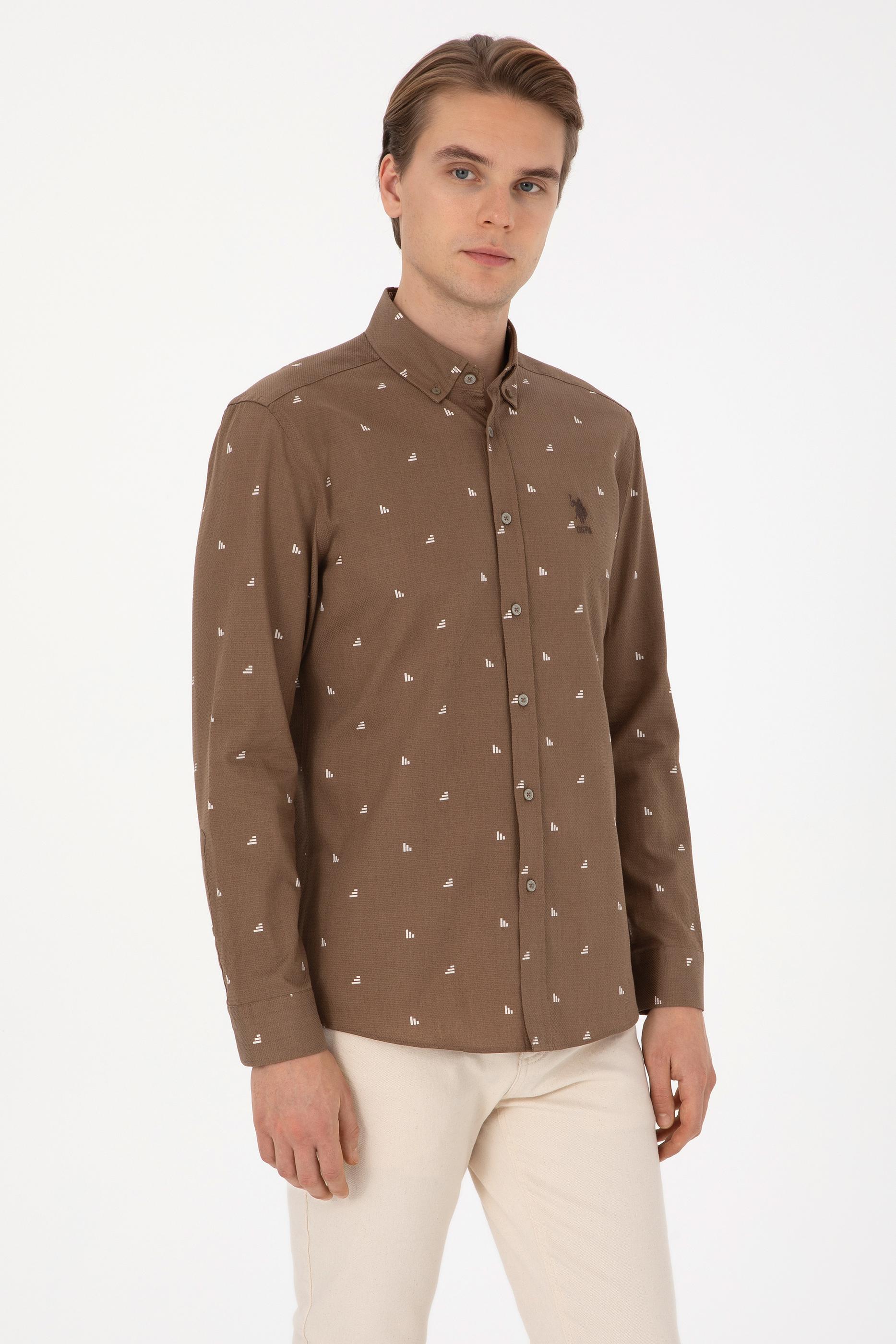 Erkek Haki Uzun Kollu Desenli Gömlek