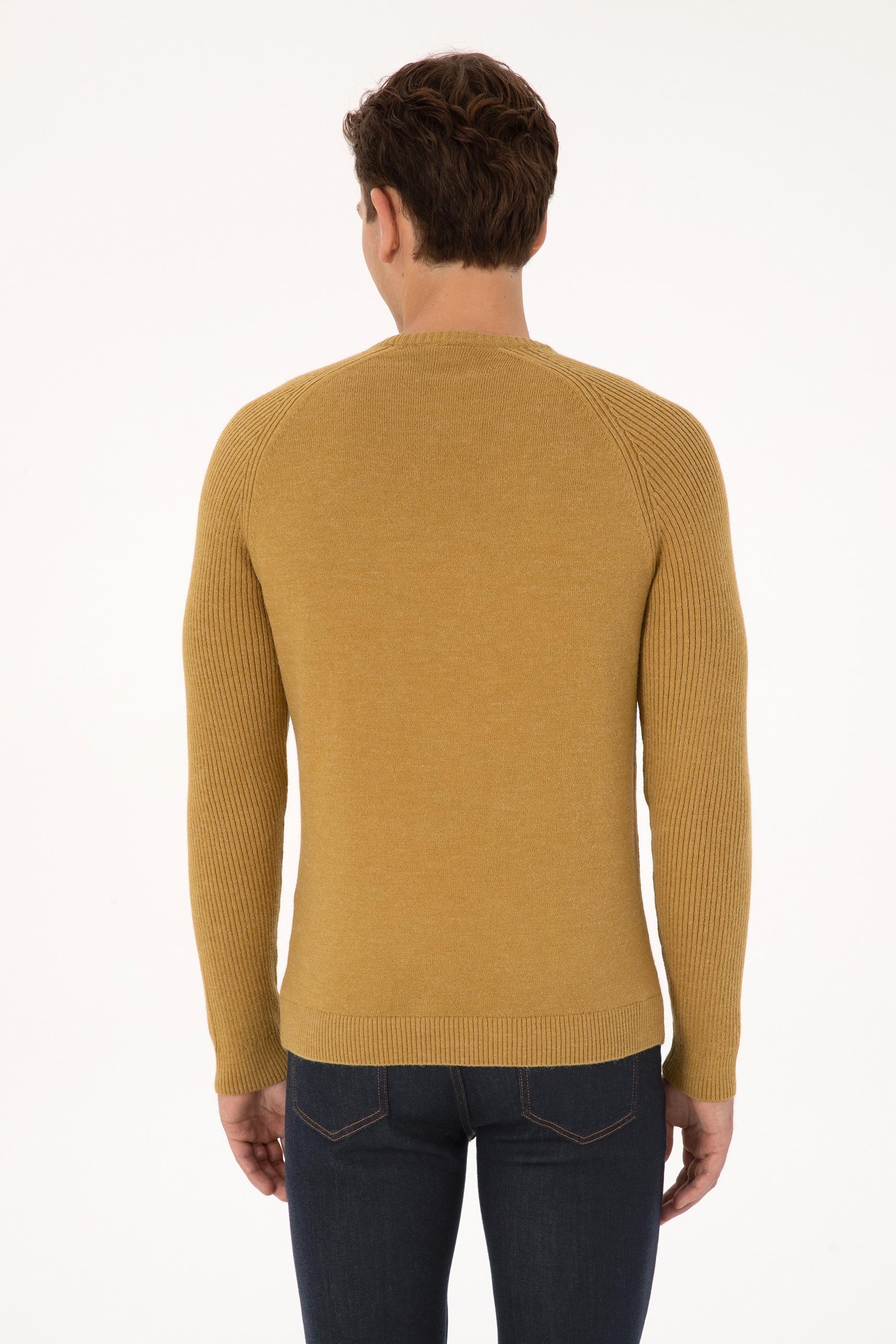 Erkek Regular Fit Bisiklet Yaka Hardal Kazak