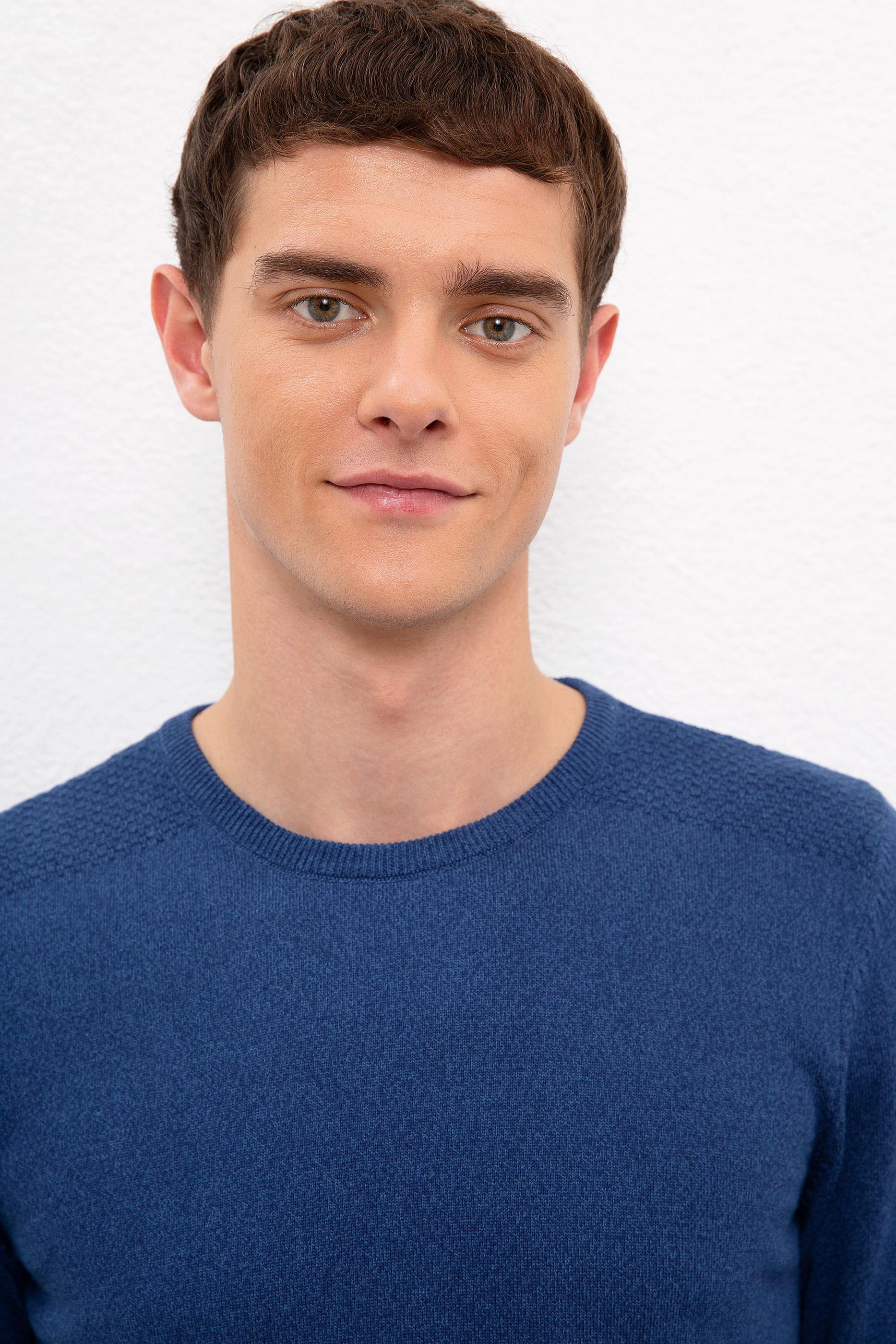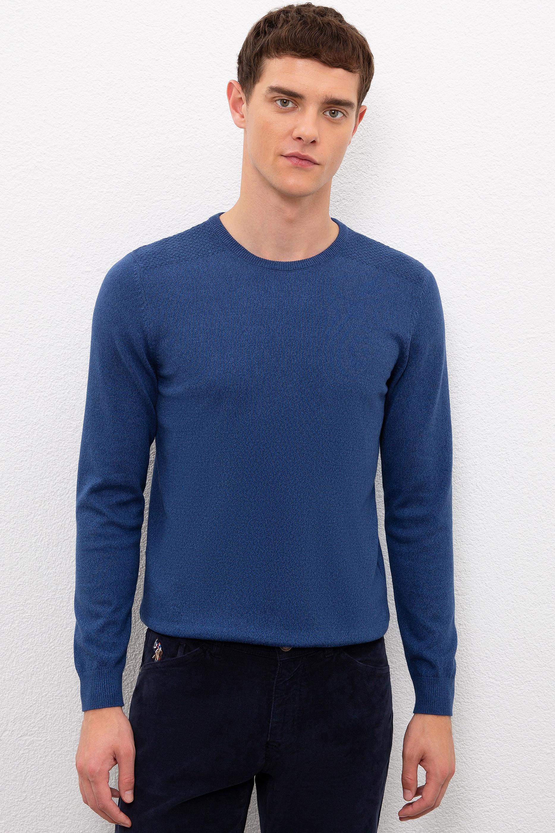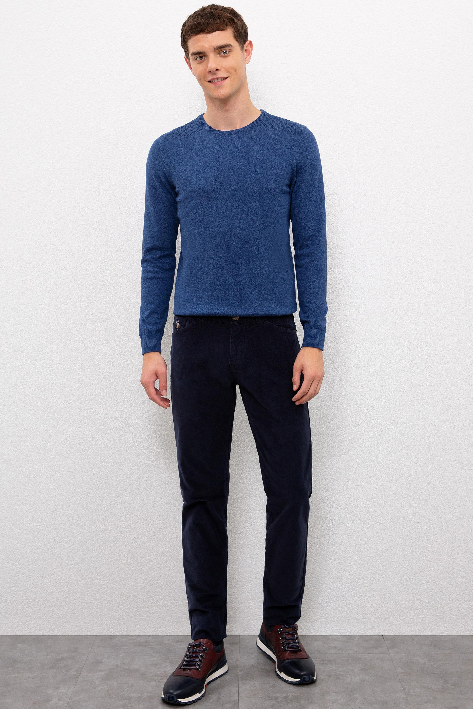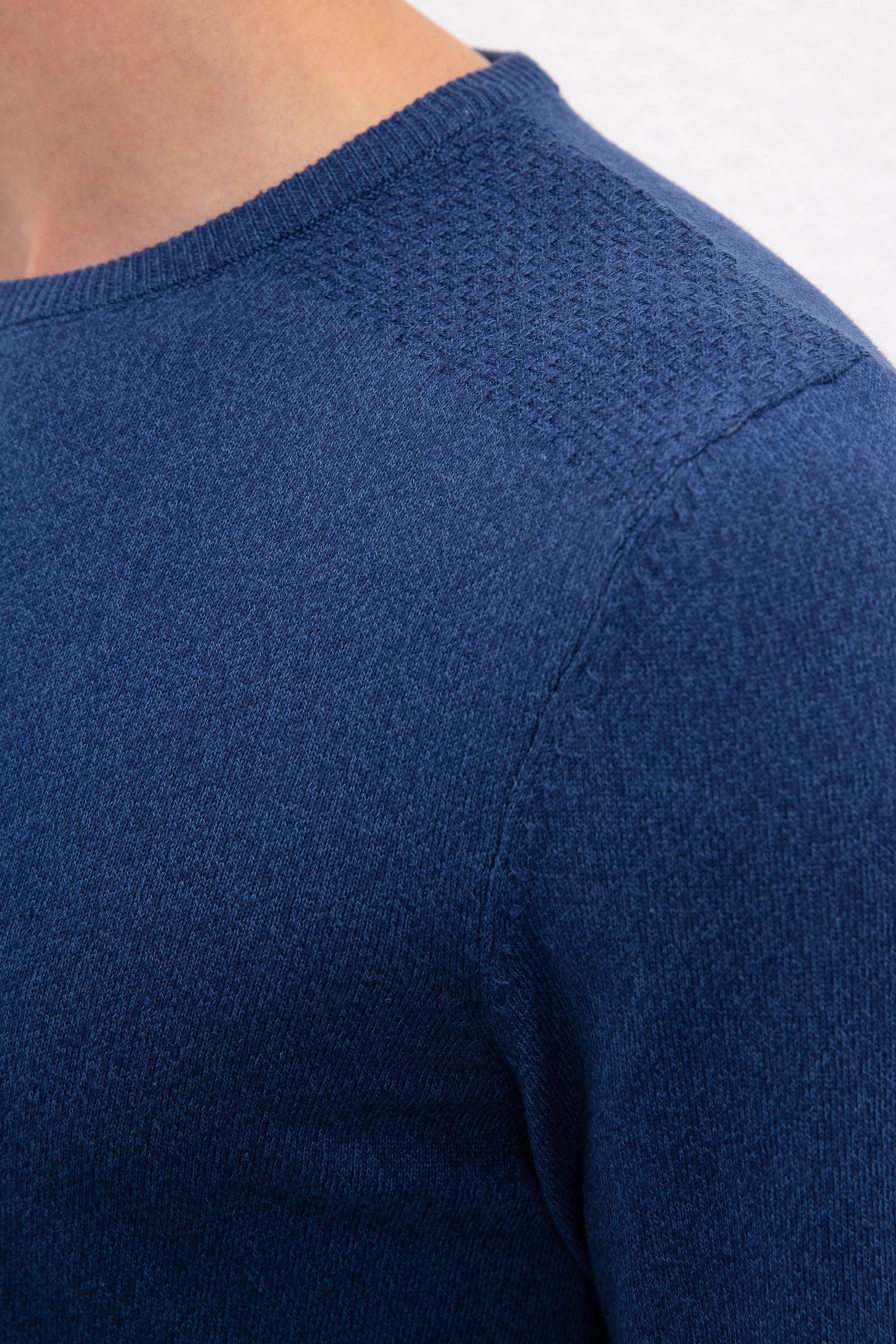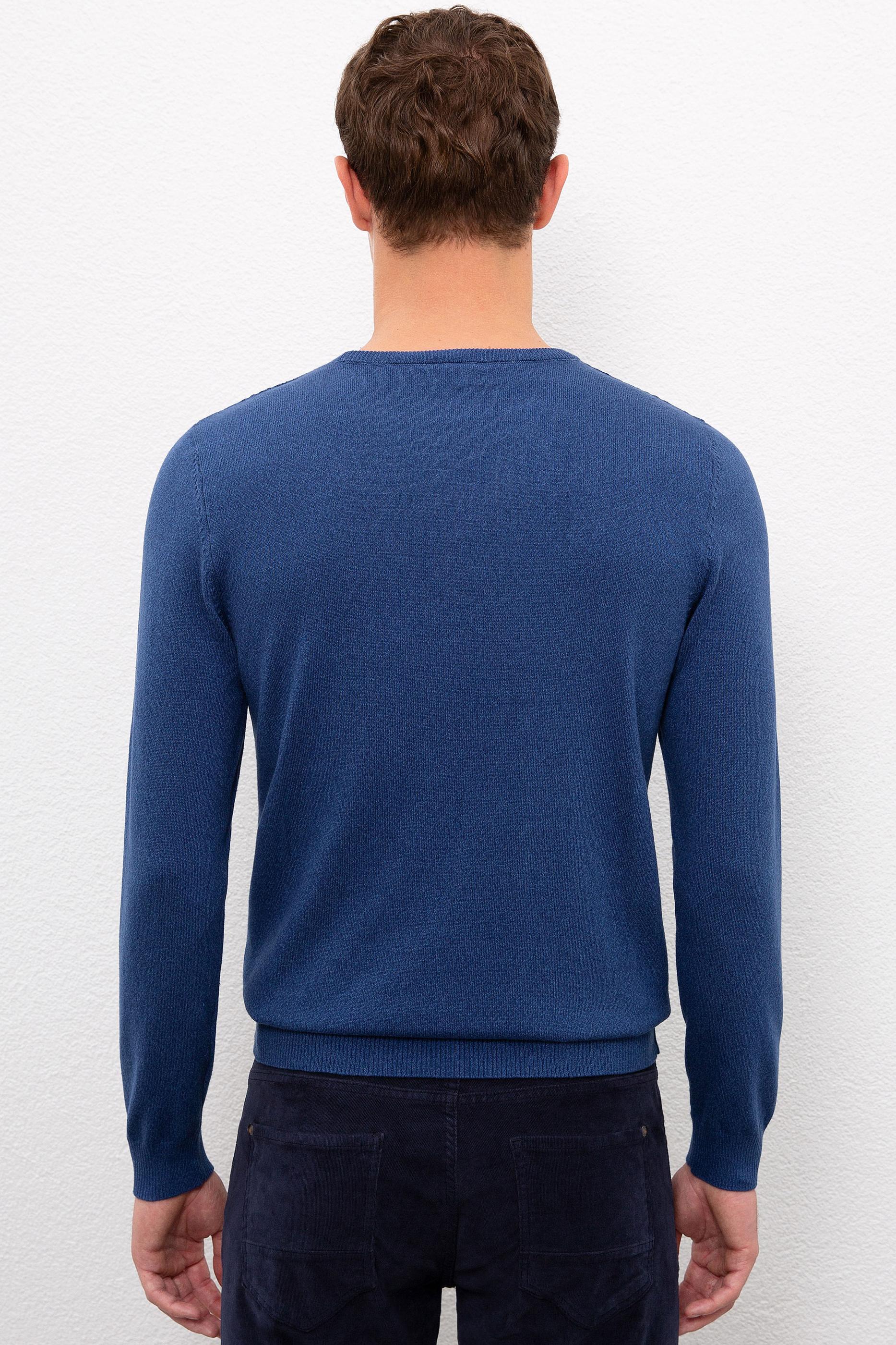 - Erkek İndigo V Yaka Basic Triko Kazak