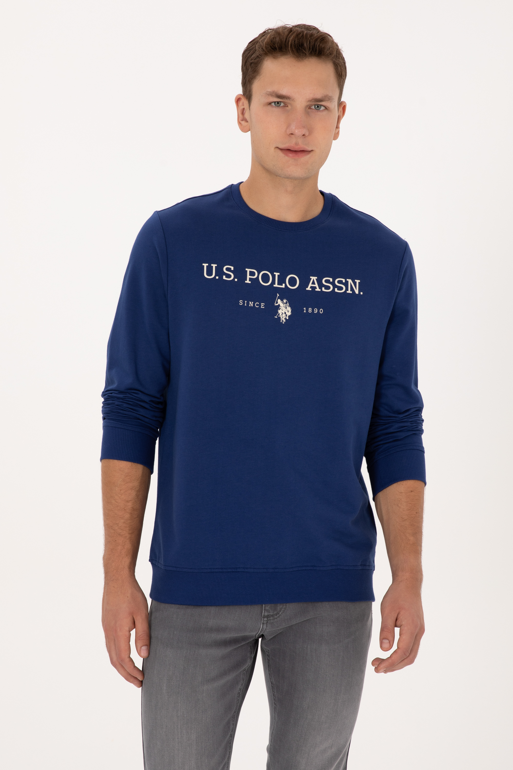 Erkek Regular Fit Bisiklet Yaka İndigo İnce Basic Sweatshirt