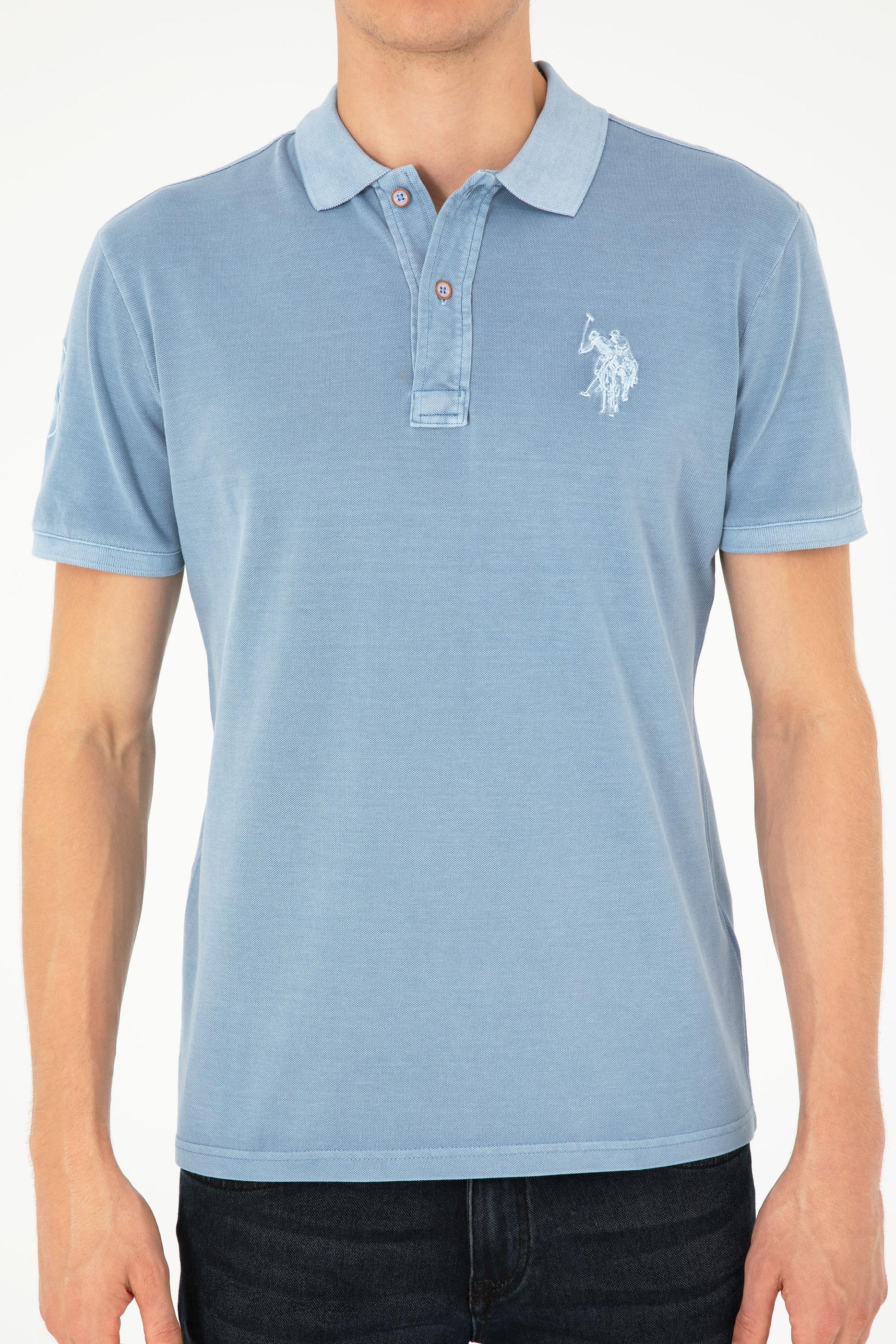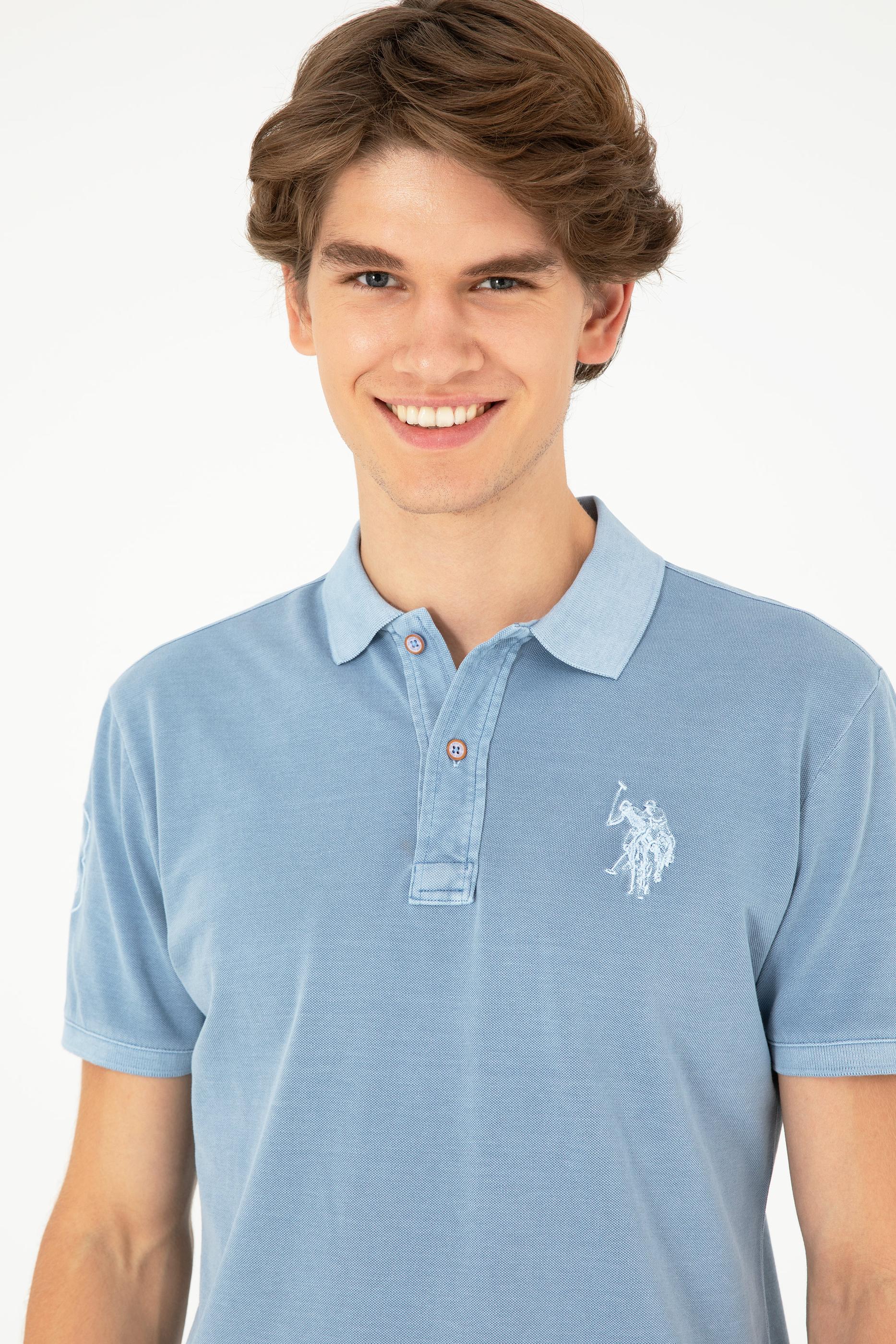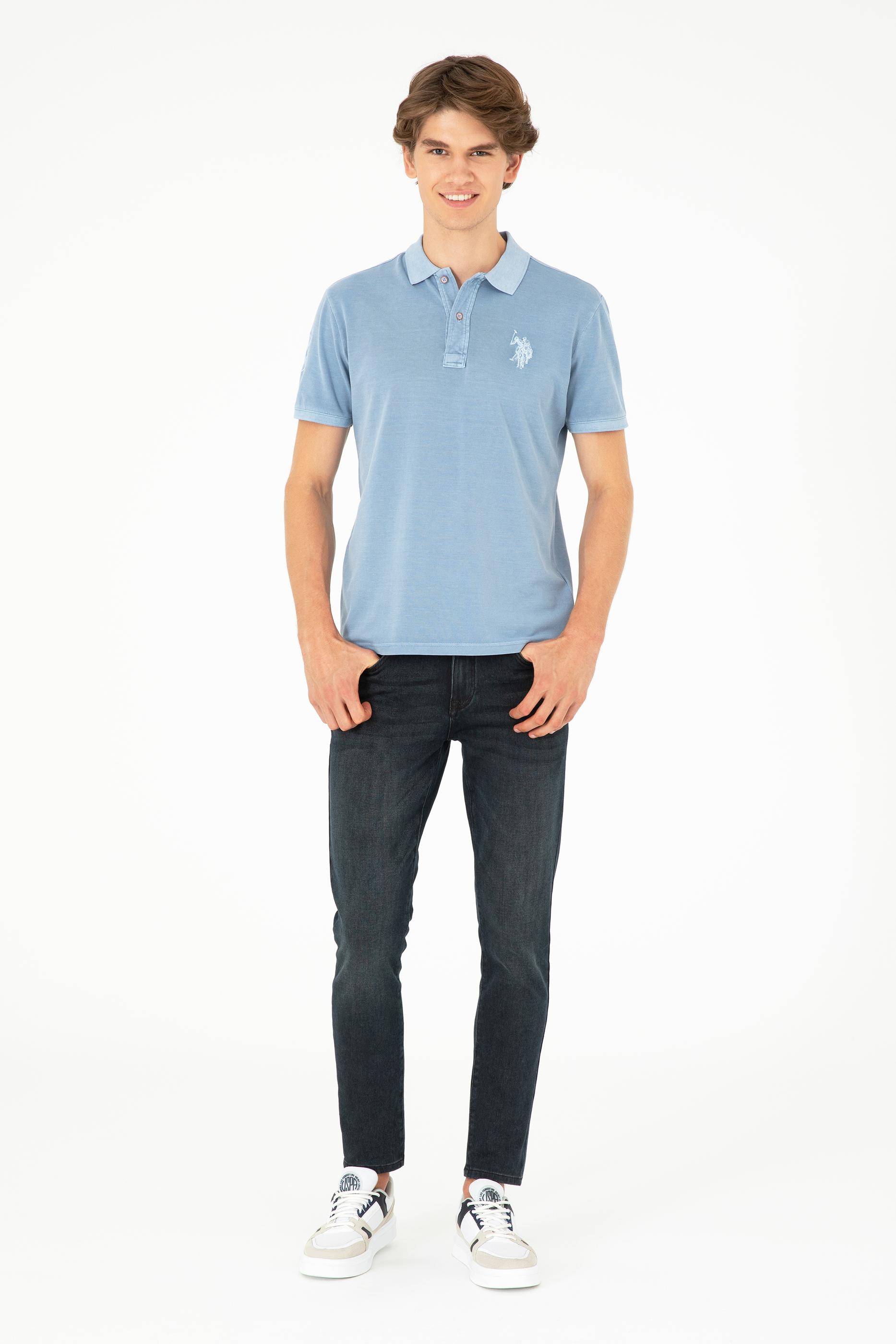 Erkek Slim Fit Polo Yaka İndigo Basic Tişört - 50279591136