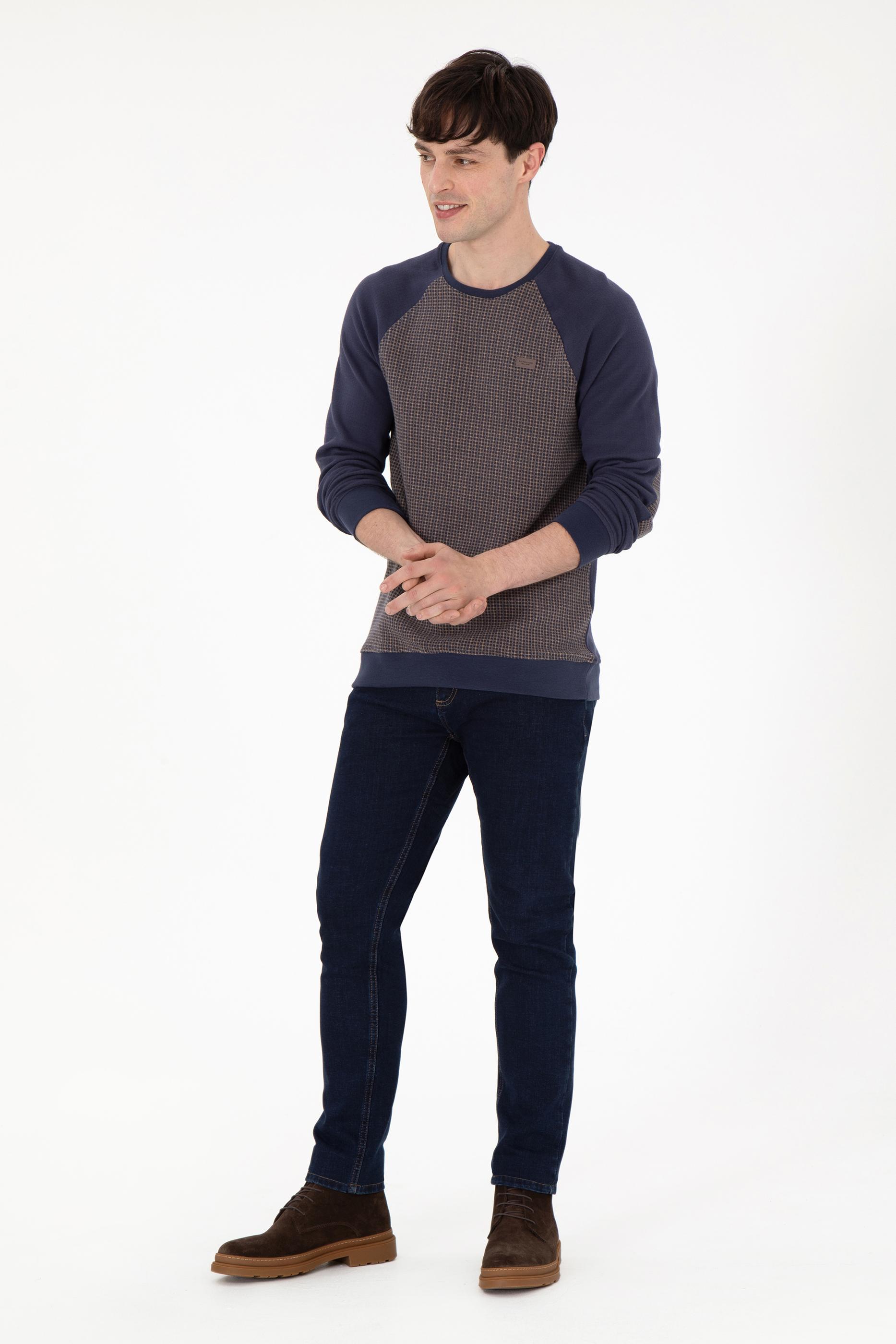 - Erkek Regular Fit Bisiklet Yaka İndigo Sweatshirt