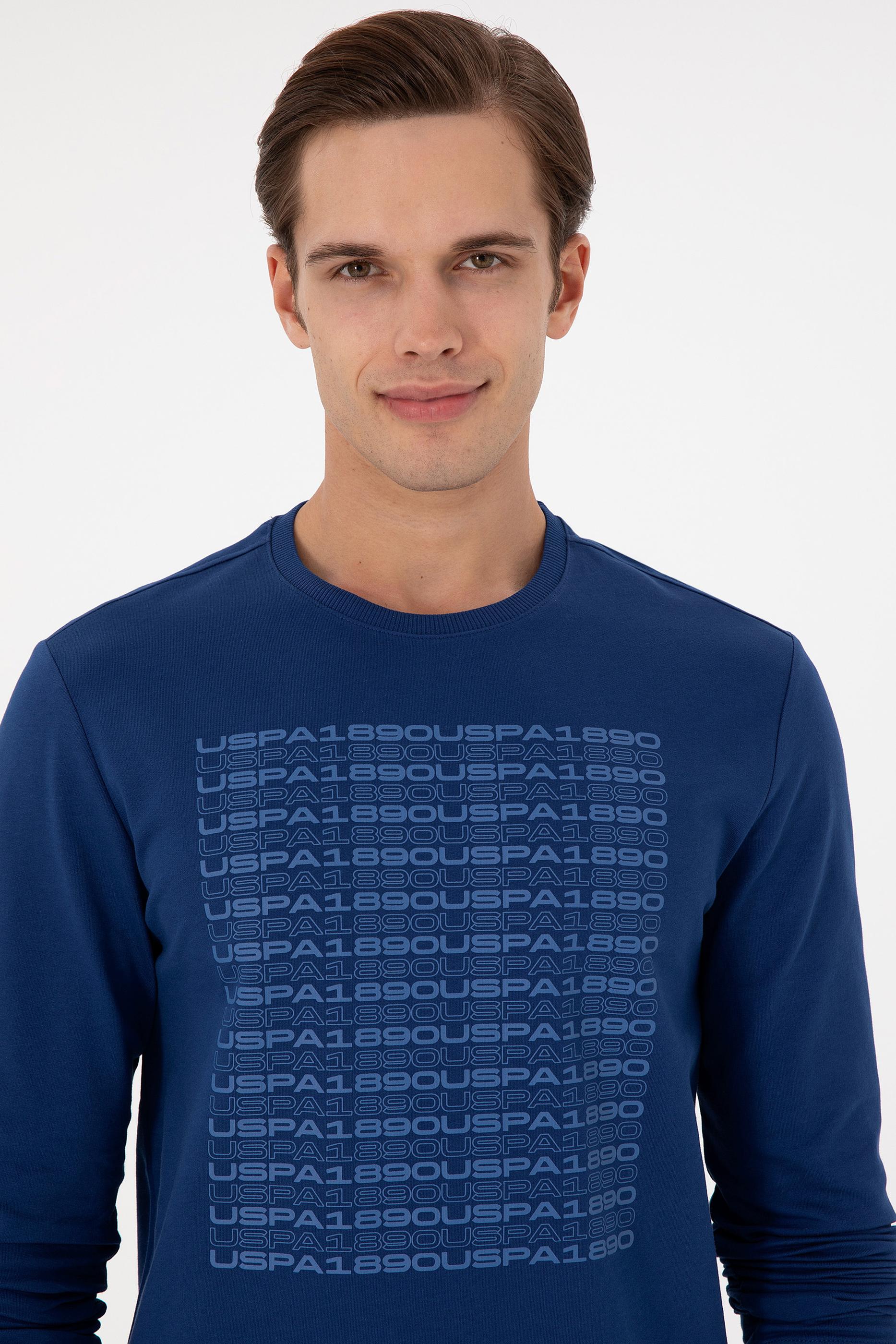 Erkek Regular Fit Bisiklet Yaka İndigo Sweatshirt