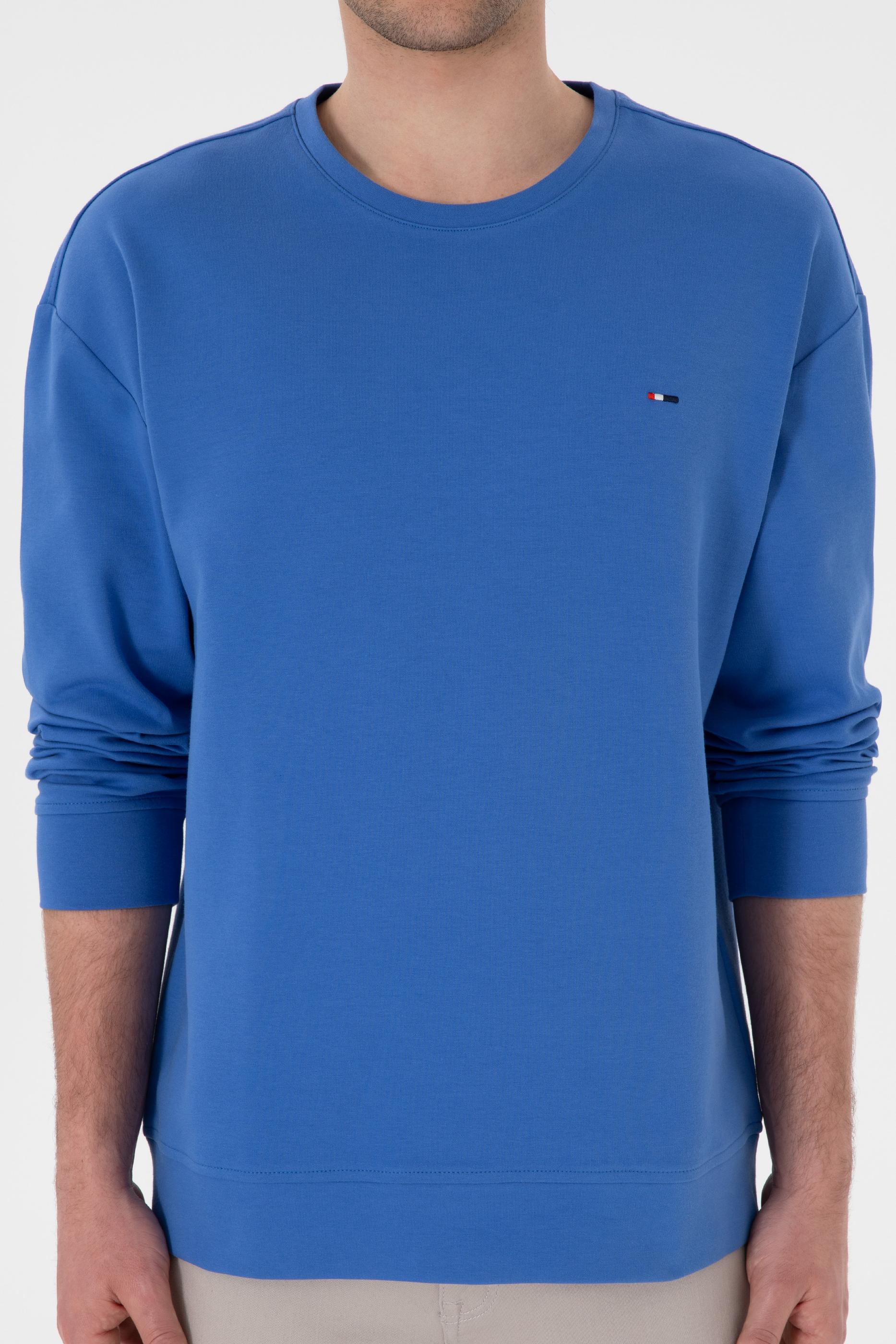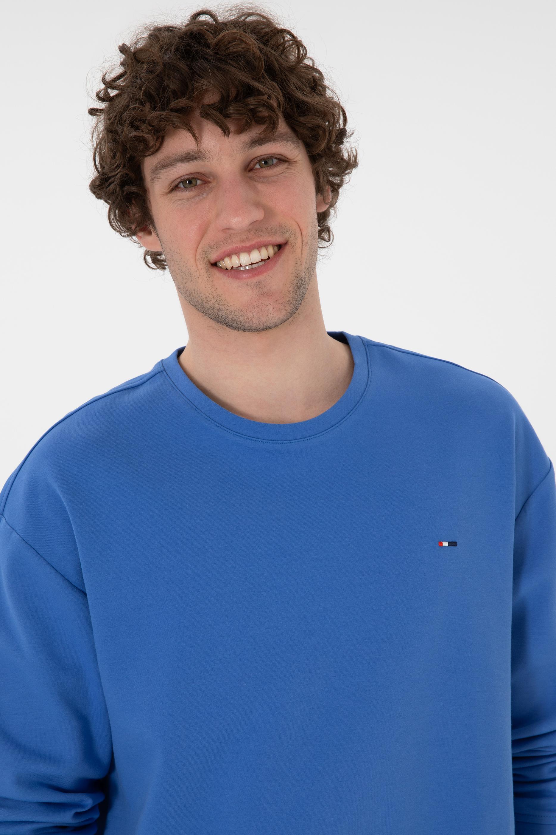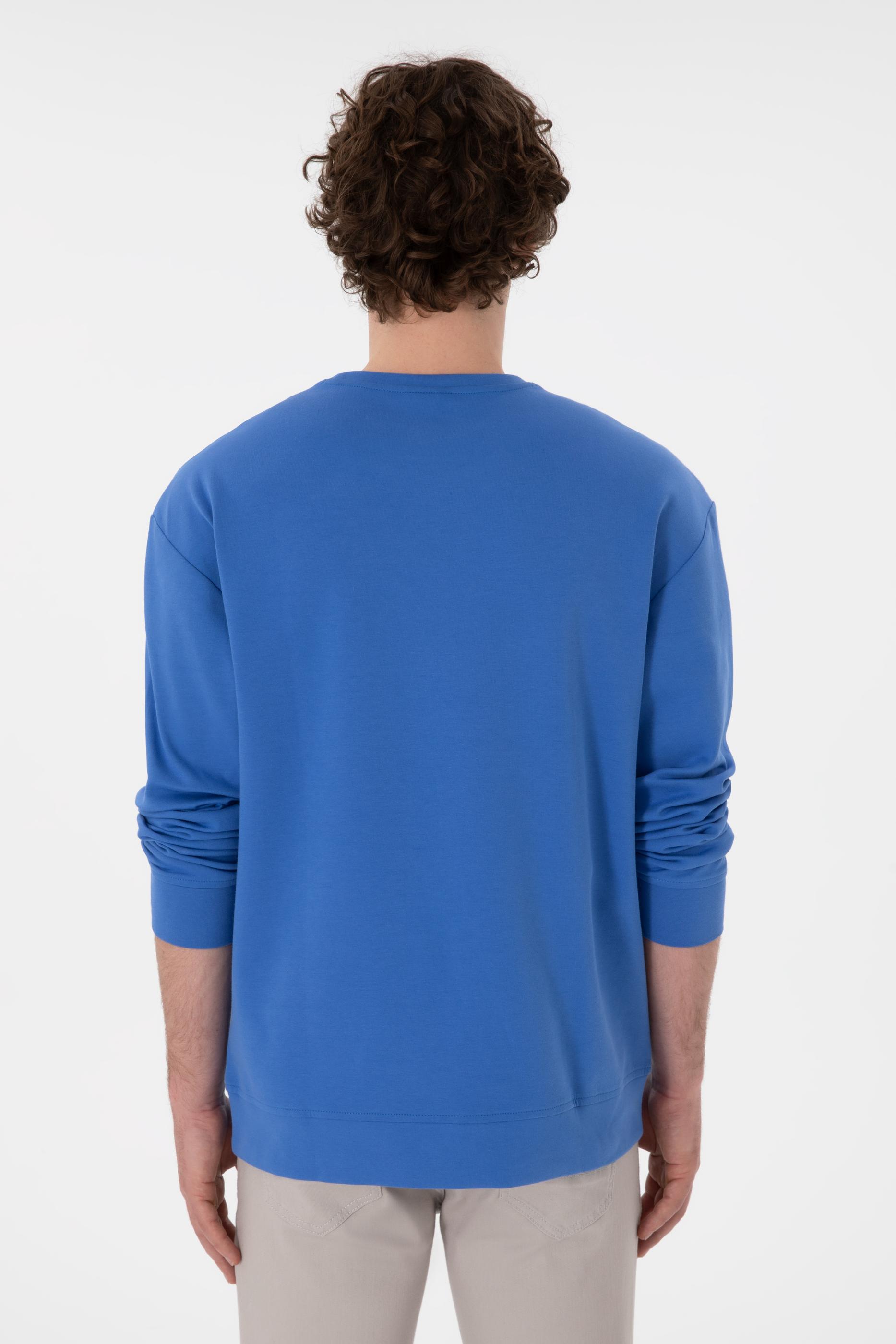 - Erkek Comfort Fit Bisiklet Yaka İndigo İnce Sweatshirt
