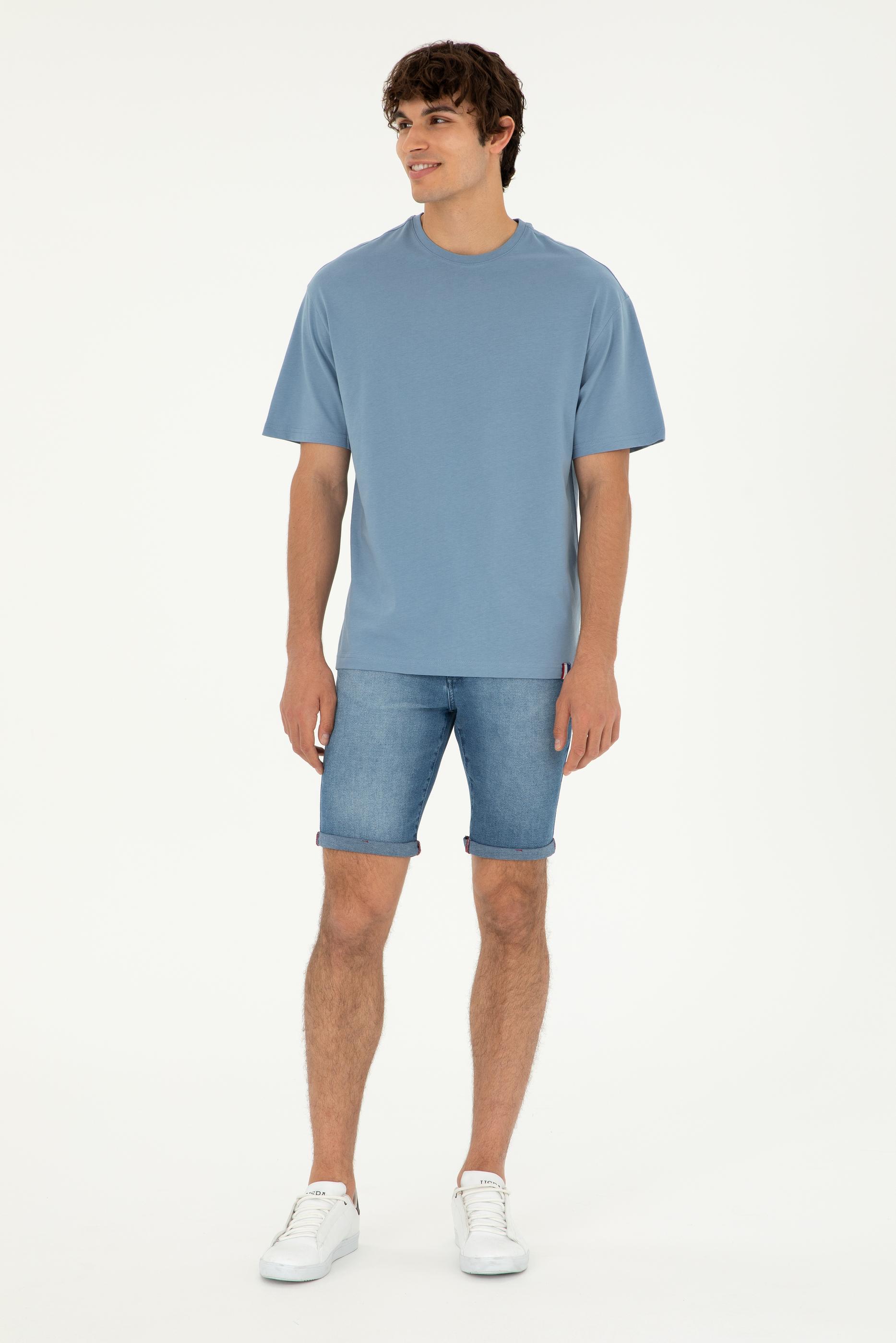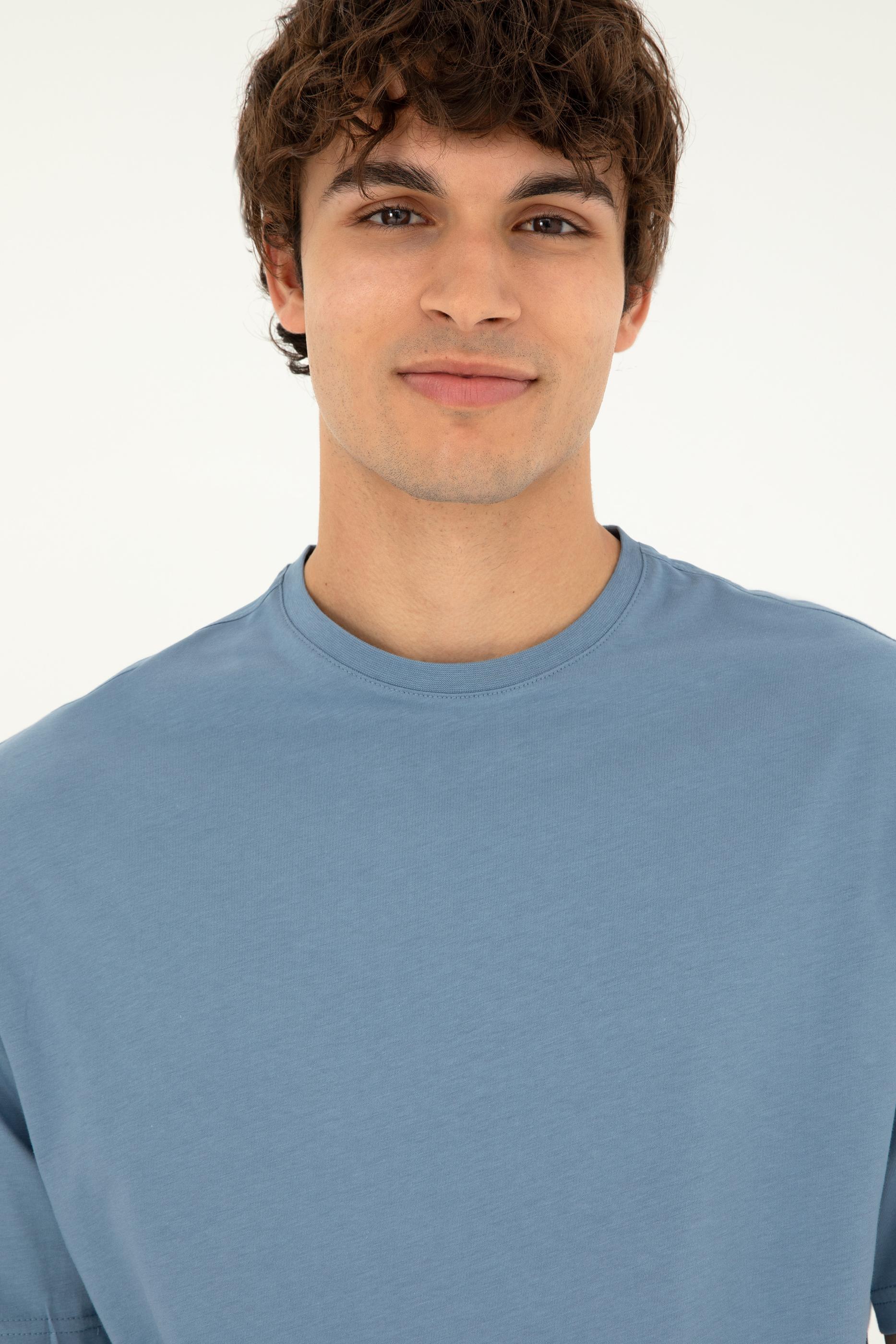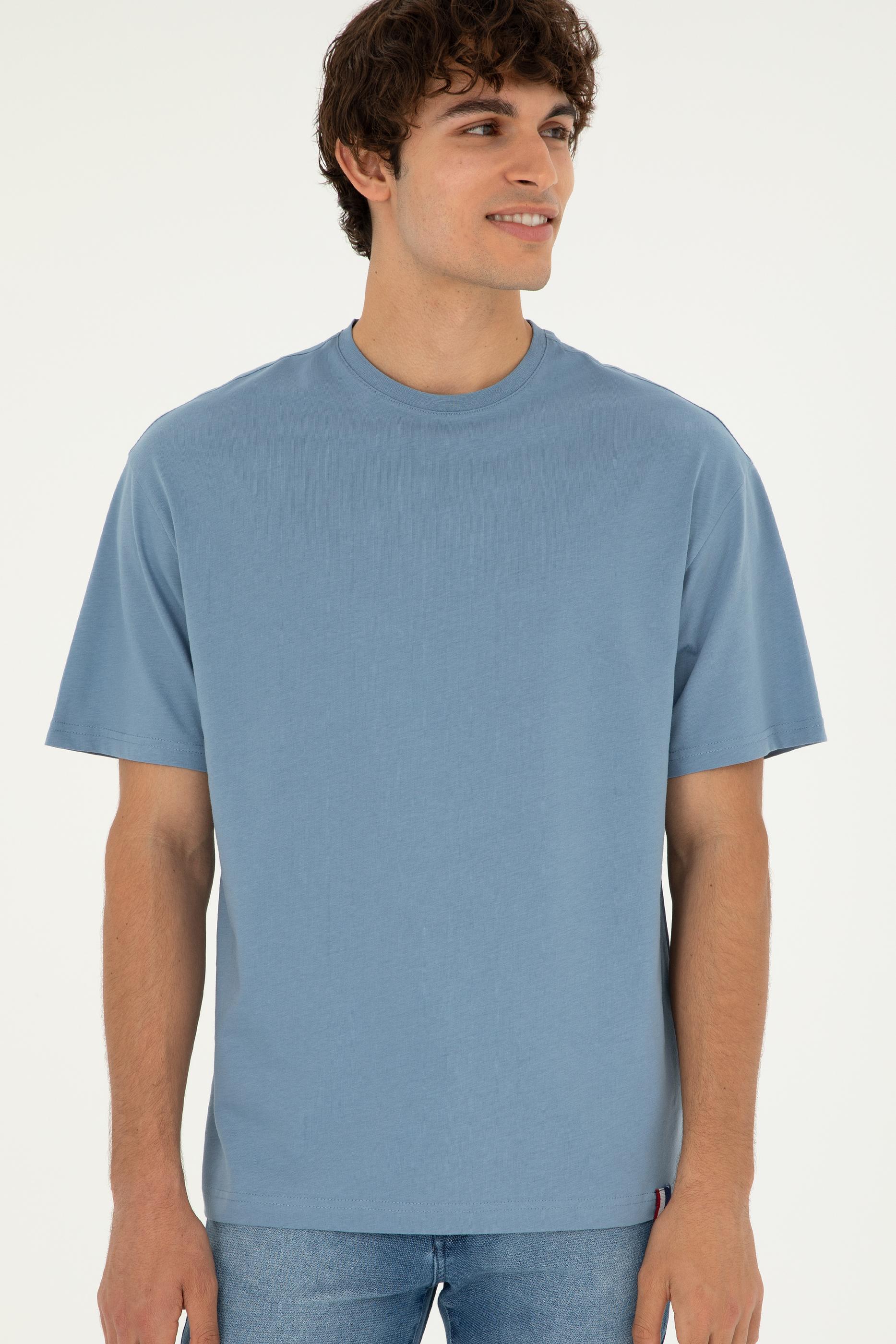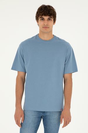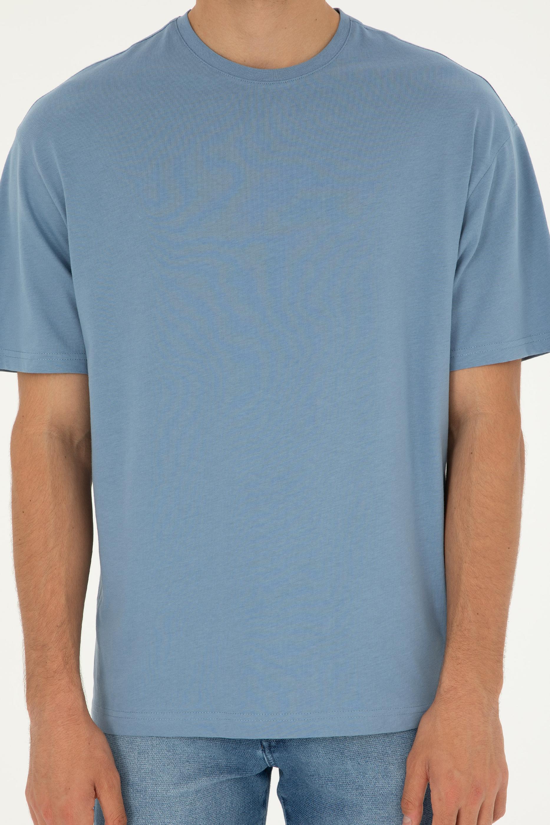Erkek Comfort Fit Bisiklet Yaka İndigo Tişört