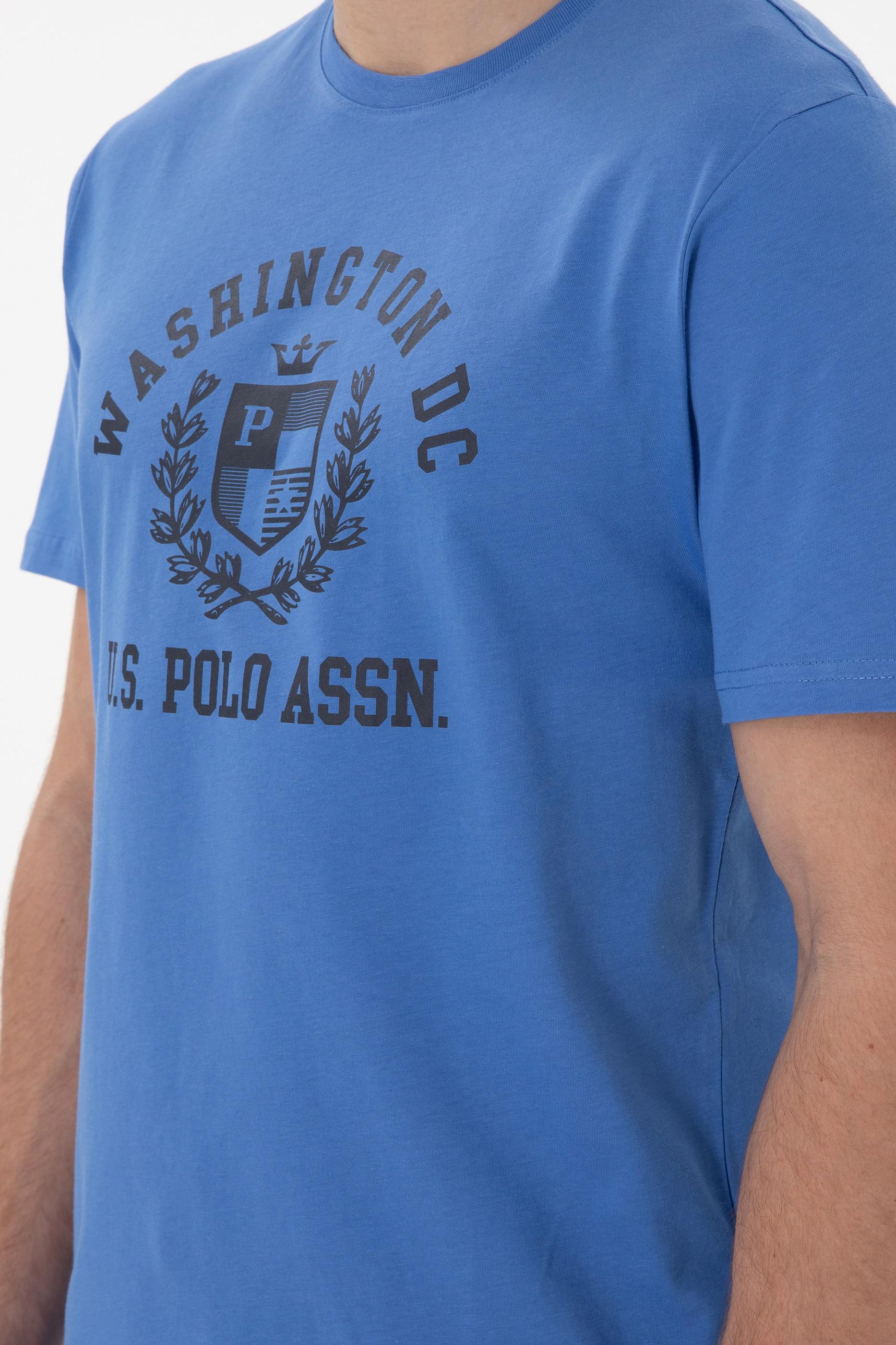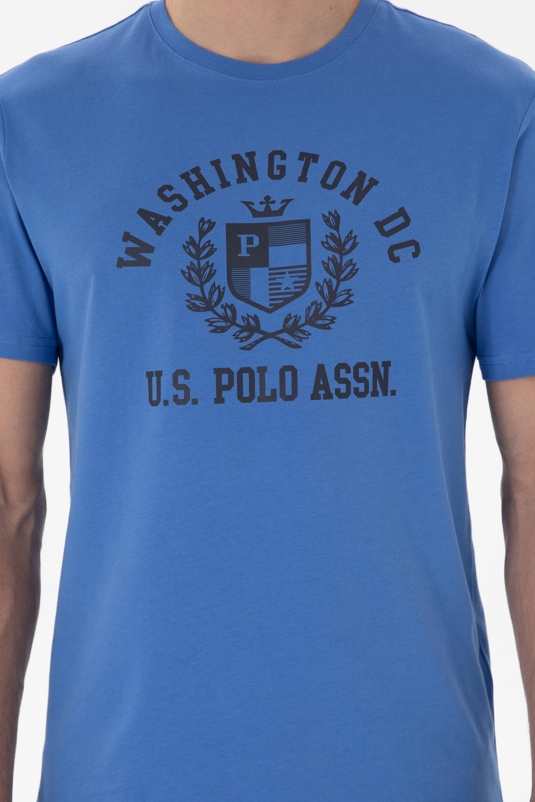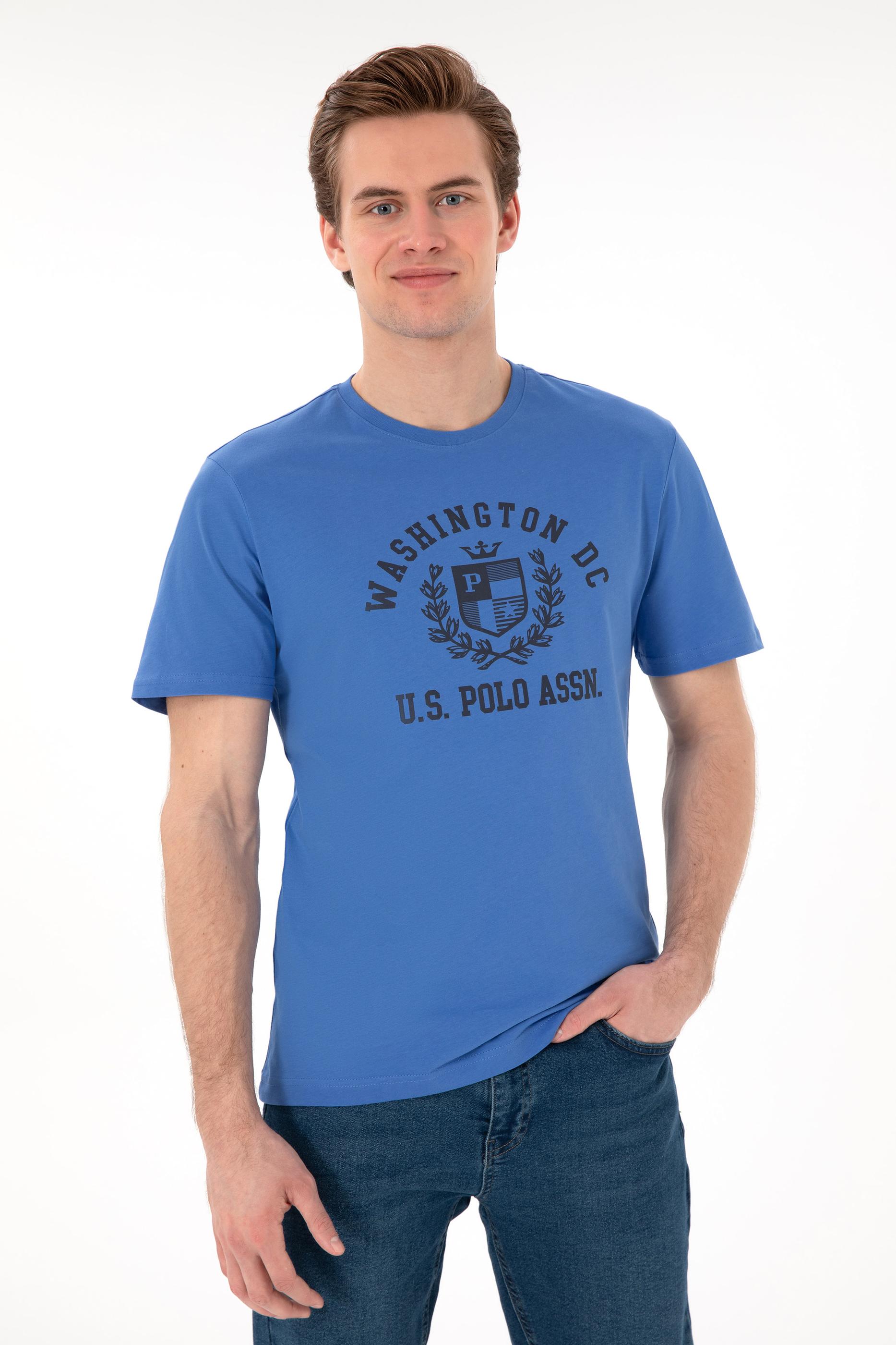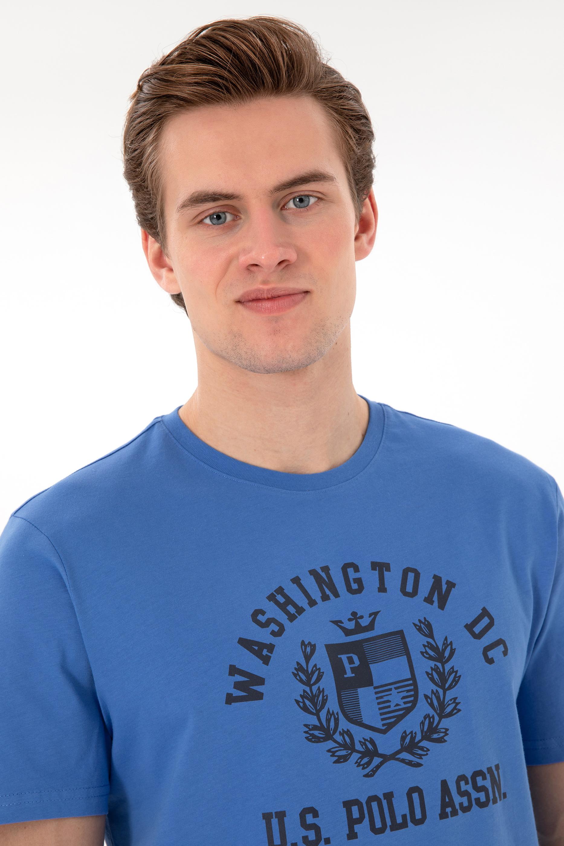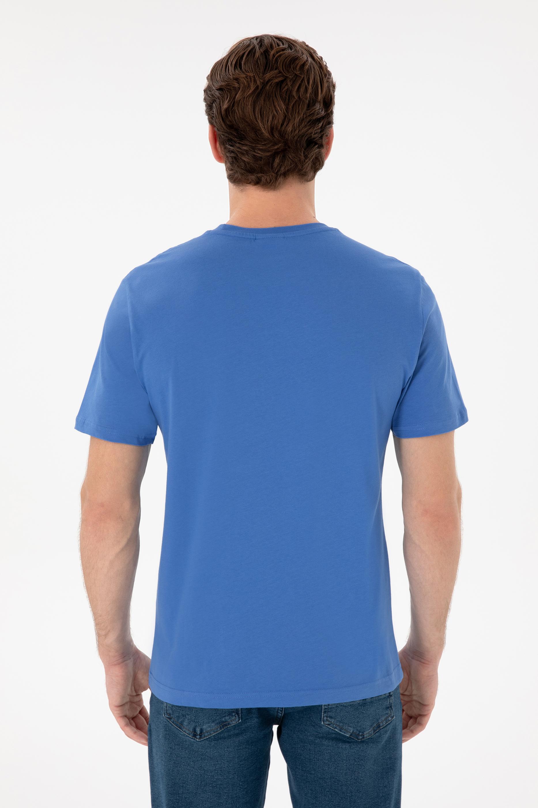 Erkek Regular Fit Bisiklet Yaka Baskılı İndigo Tişört