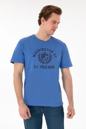 - Erkek Regular Fit Bisiklet Yaka Baskılı İndigo Tişört