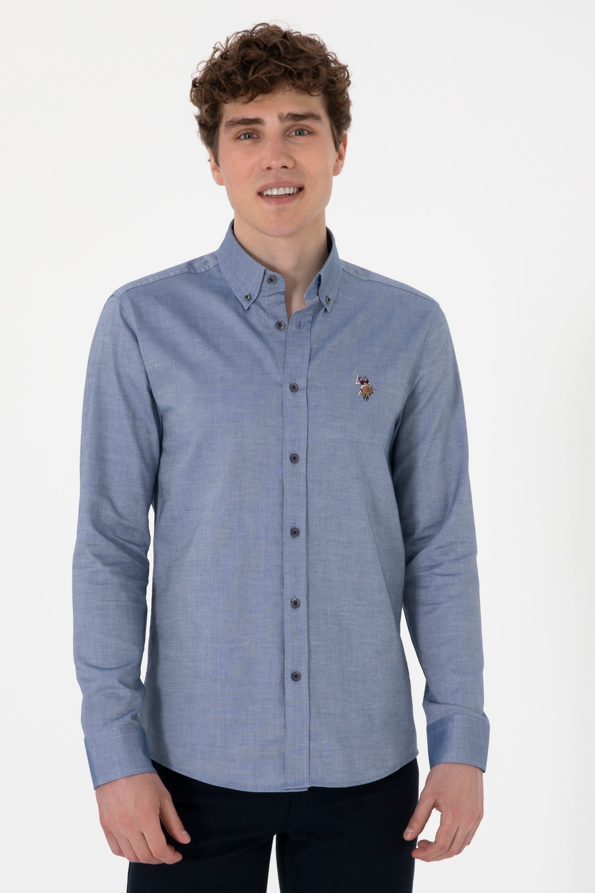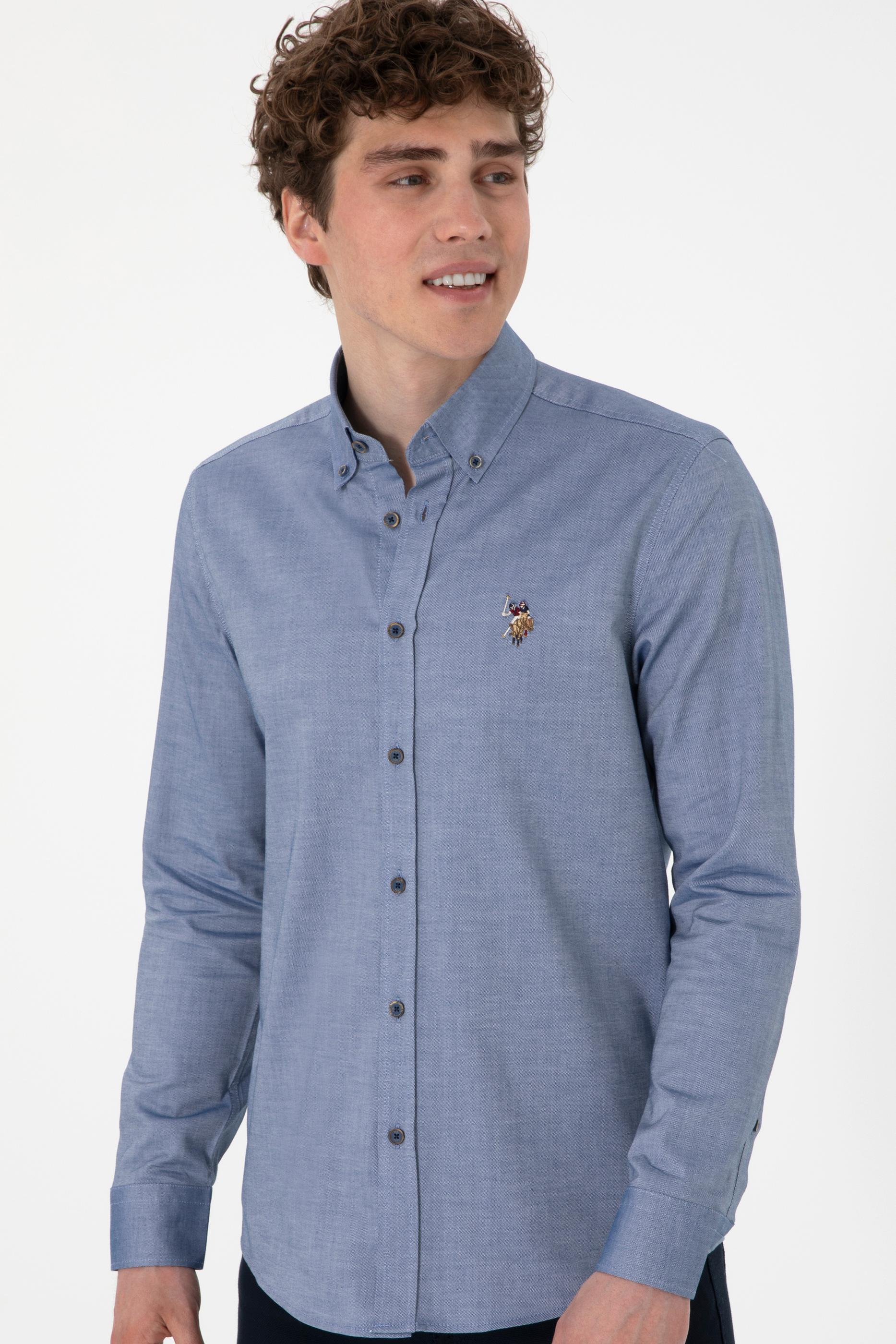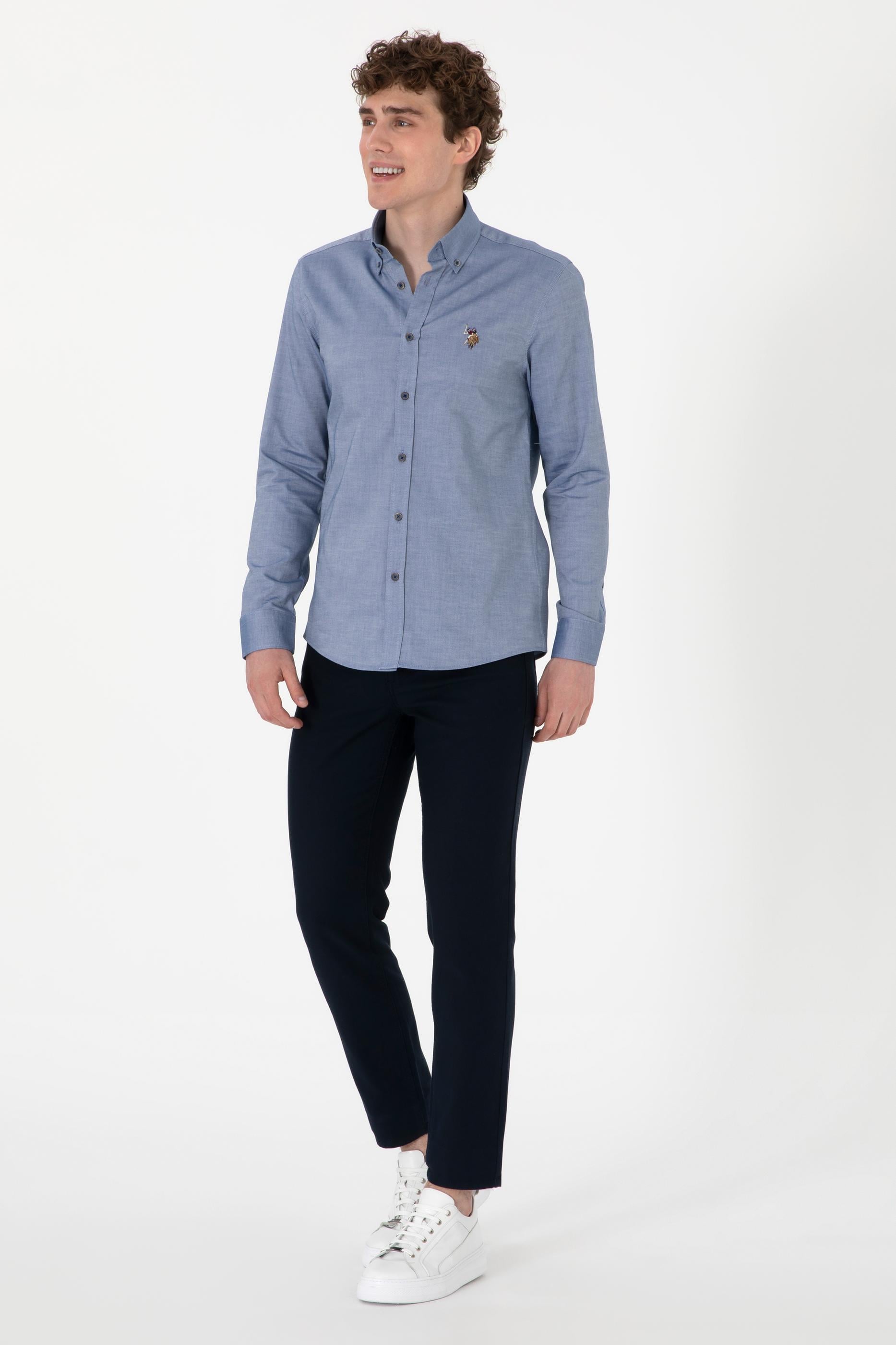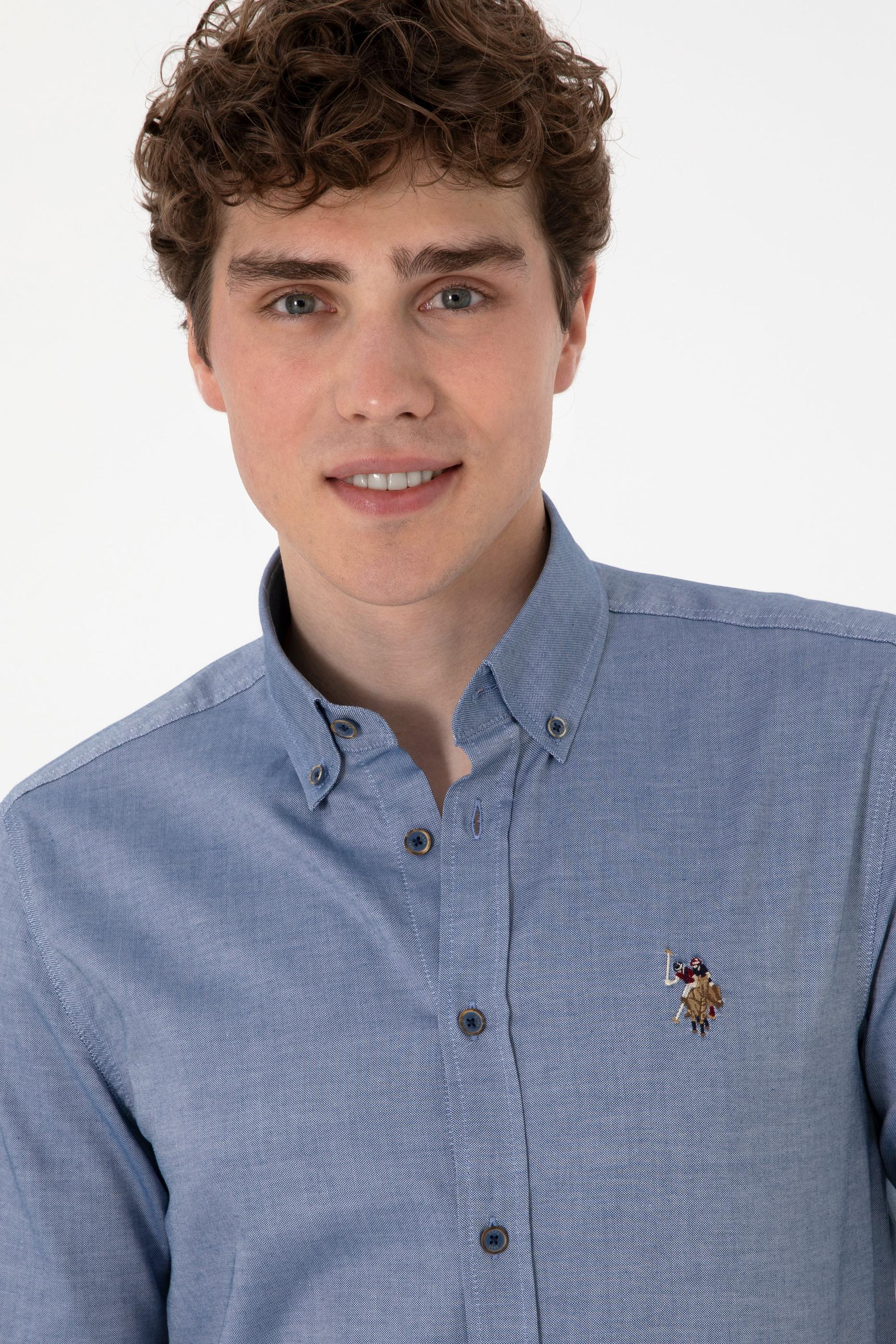 Erkek İndigo Uzun Kollu Basic Gömlek