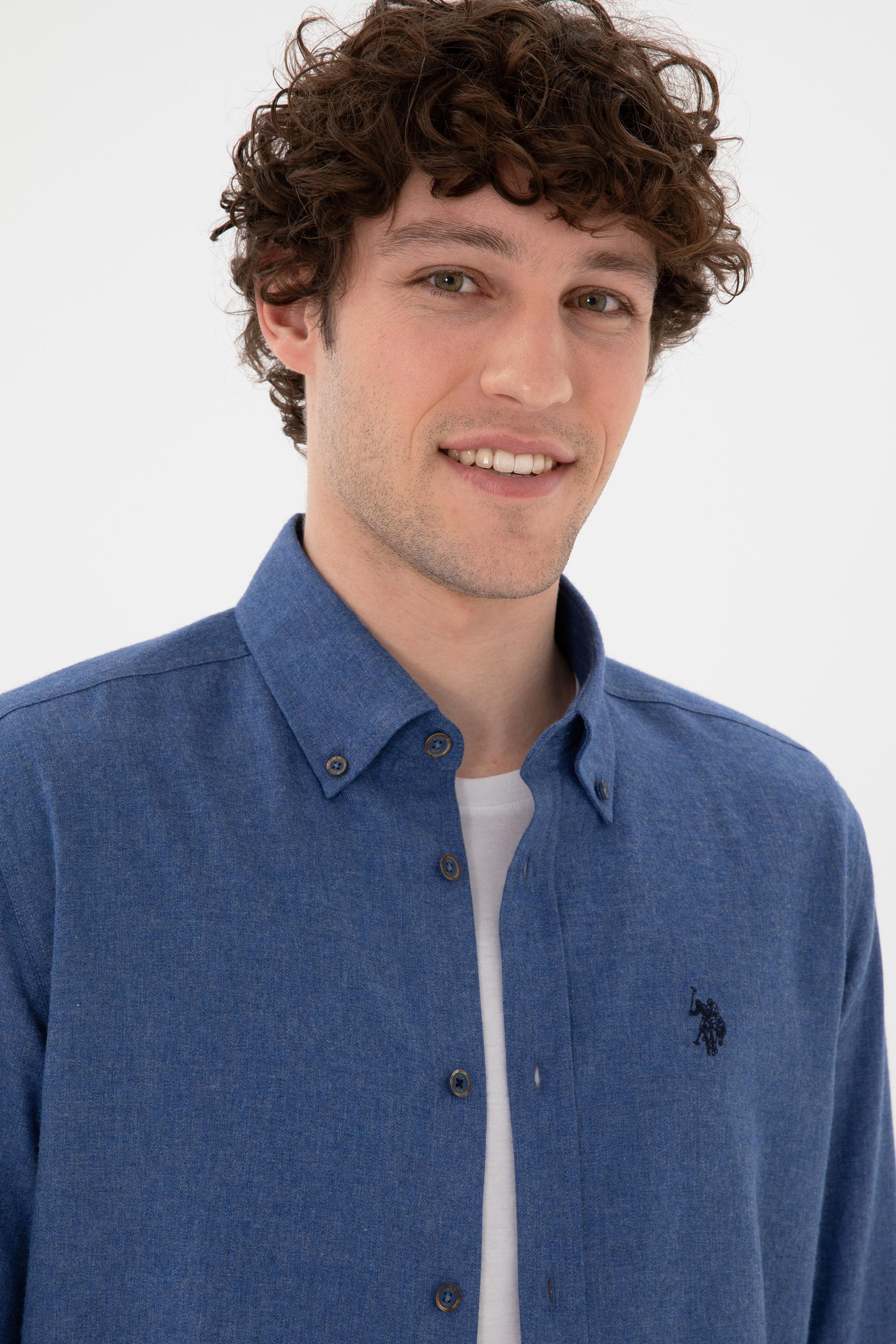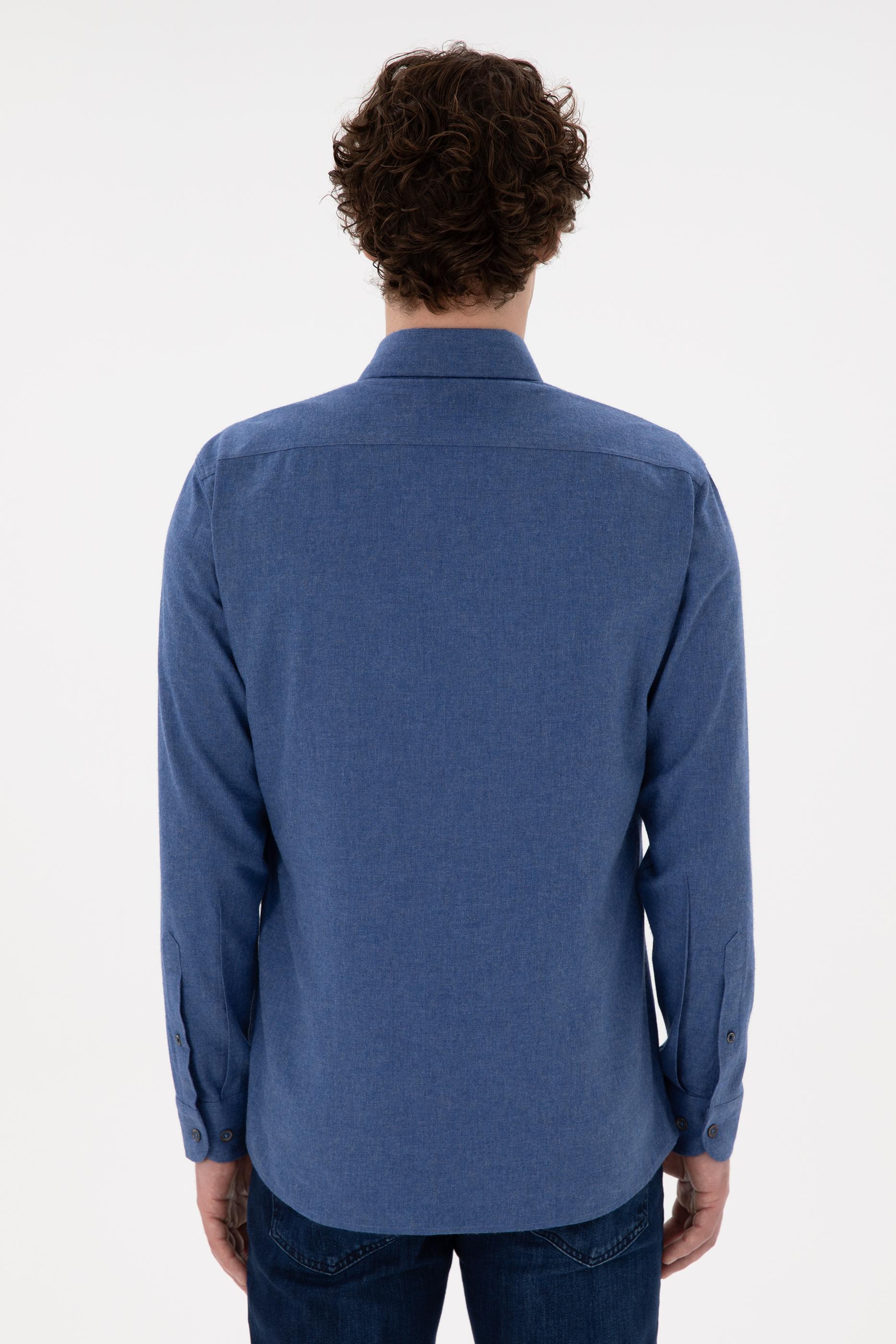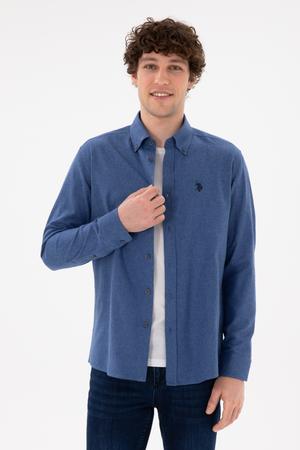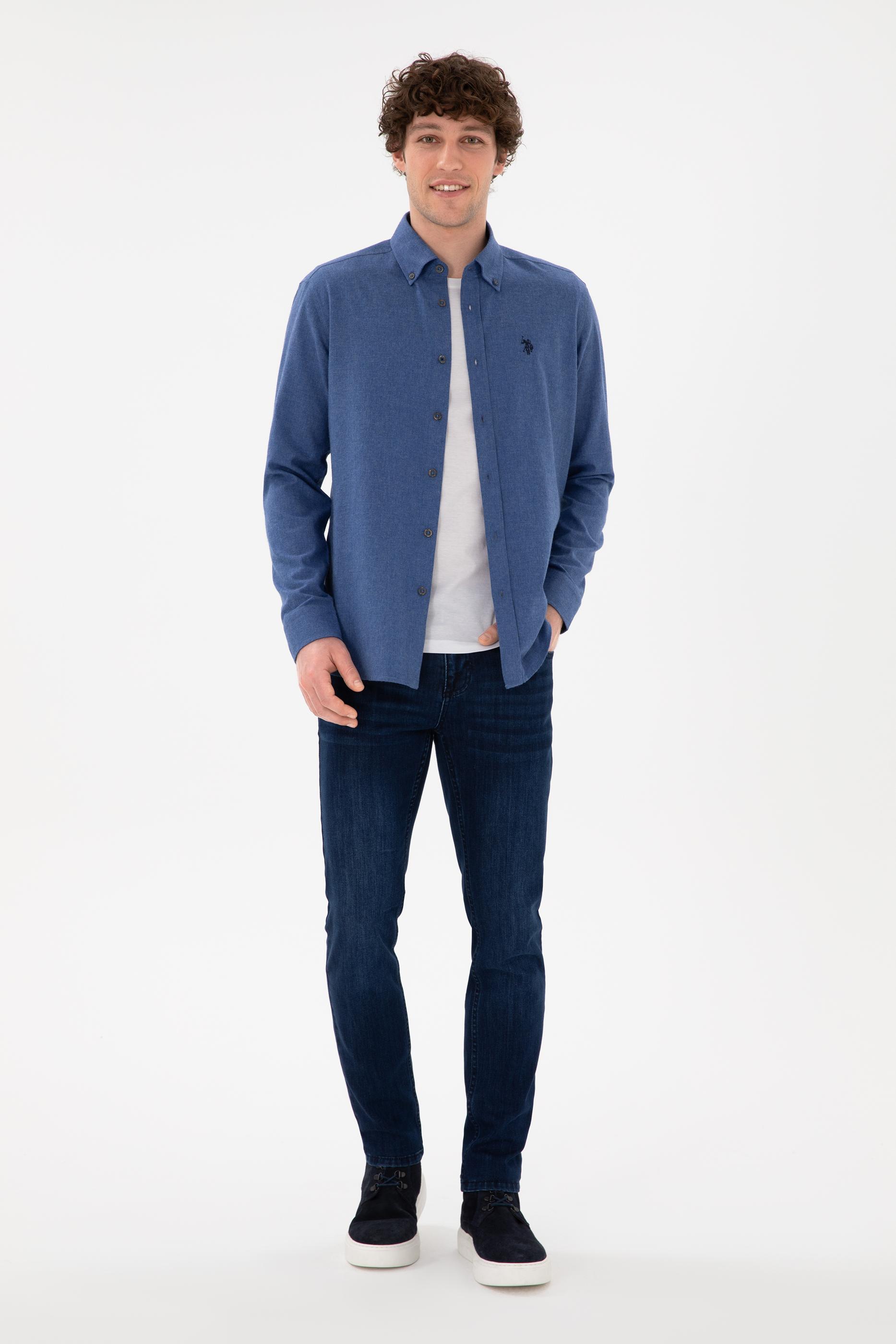 - Erkek İndigo Uzun Kollu Basic Gömlek