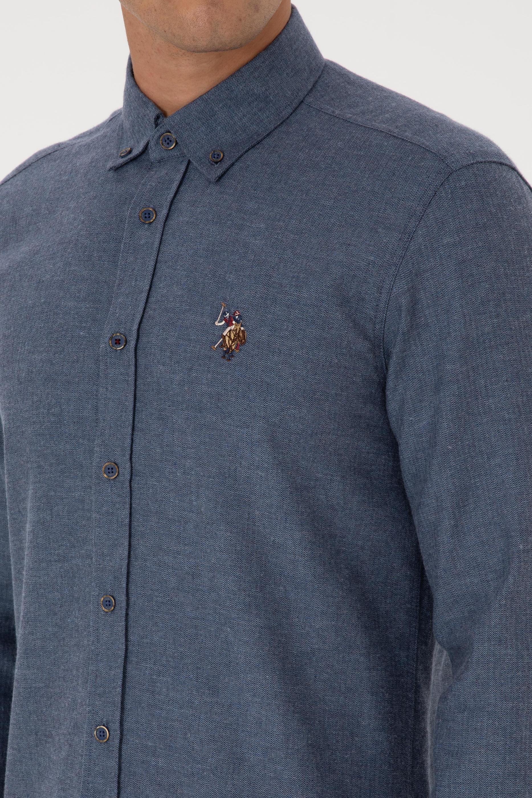 "name": "Erkek İndigo Uzun Kollu Basic Gömlek",