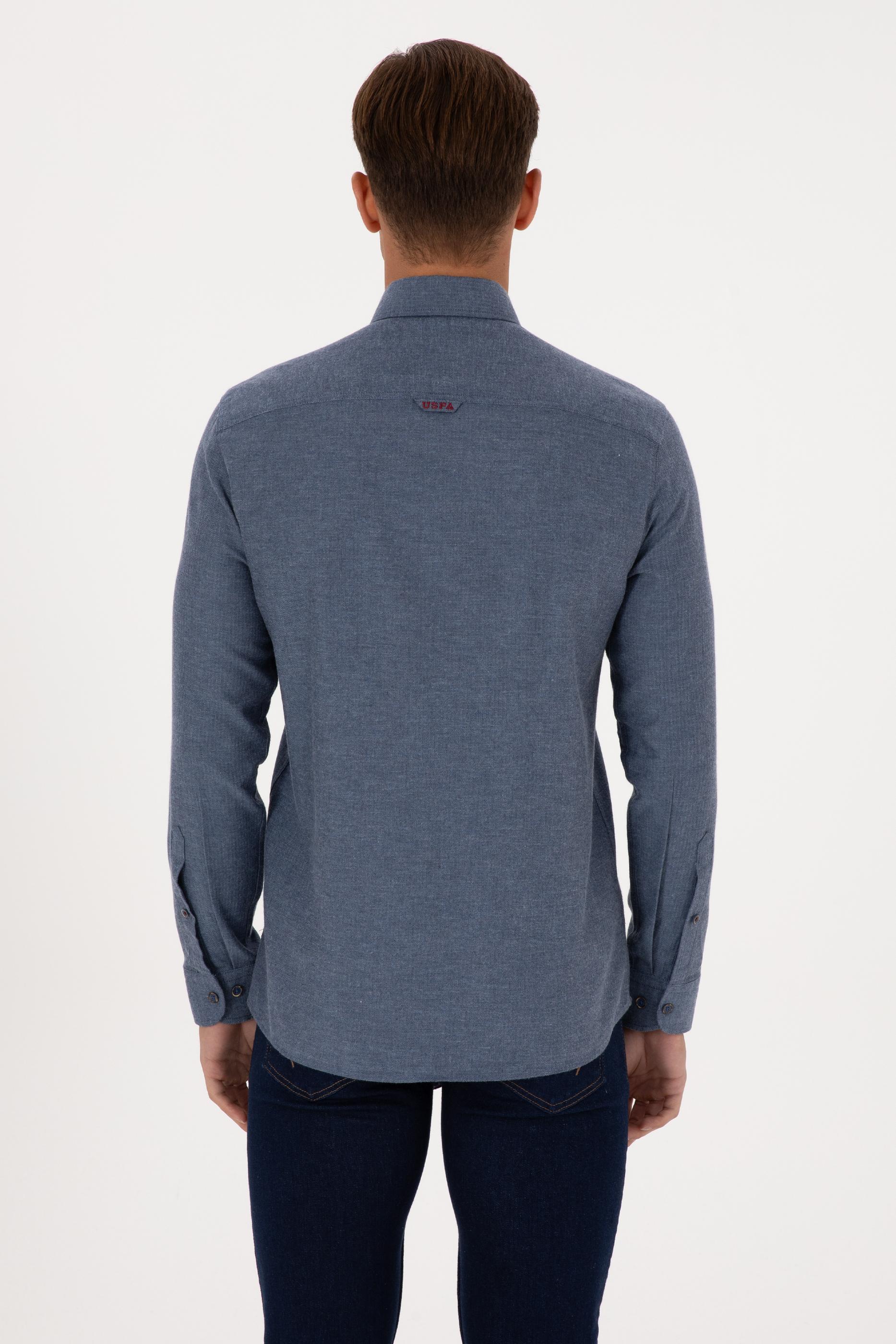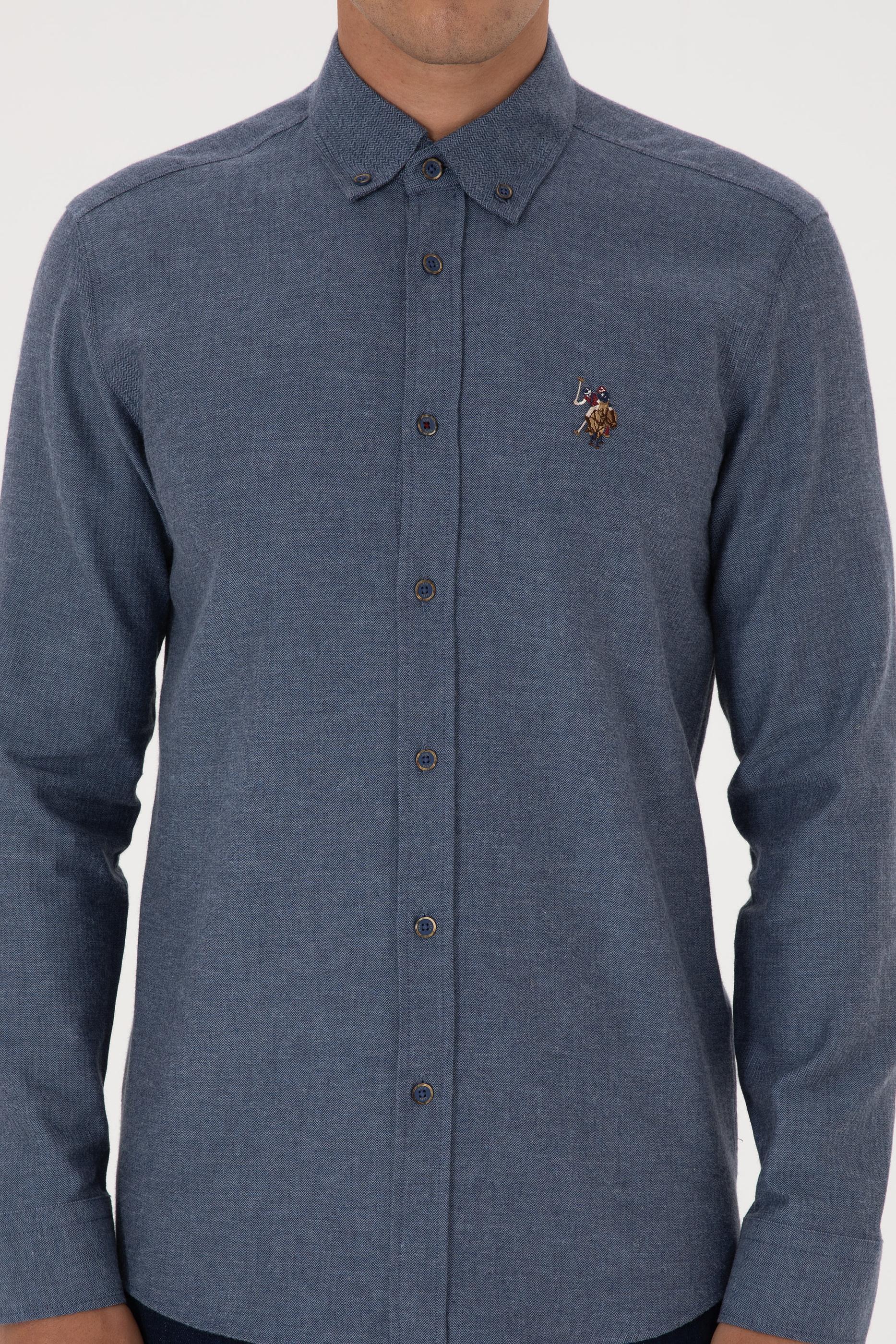Erkek İndigo Uzun Kollu Basic Gömlek