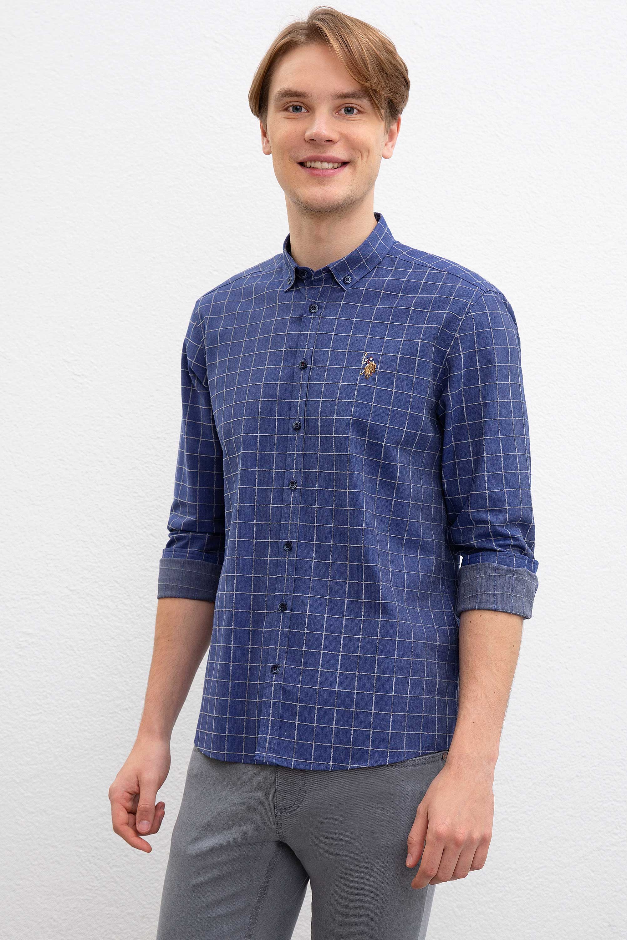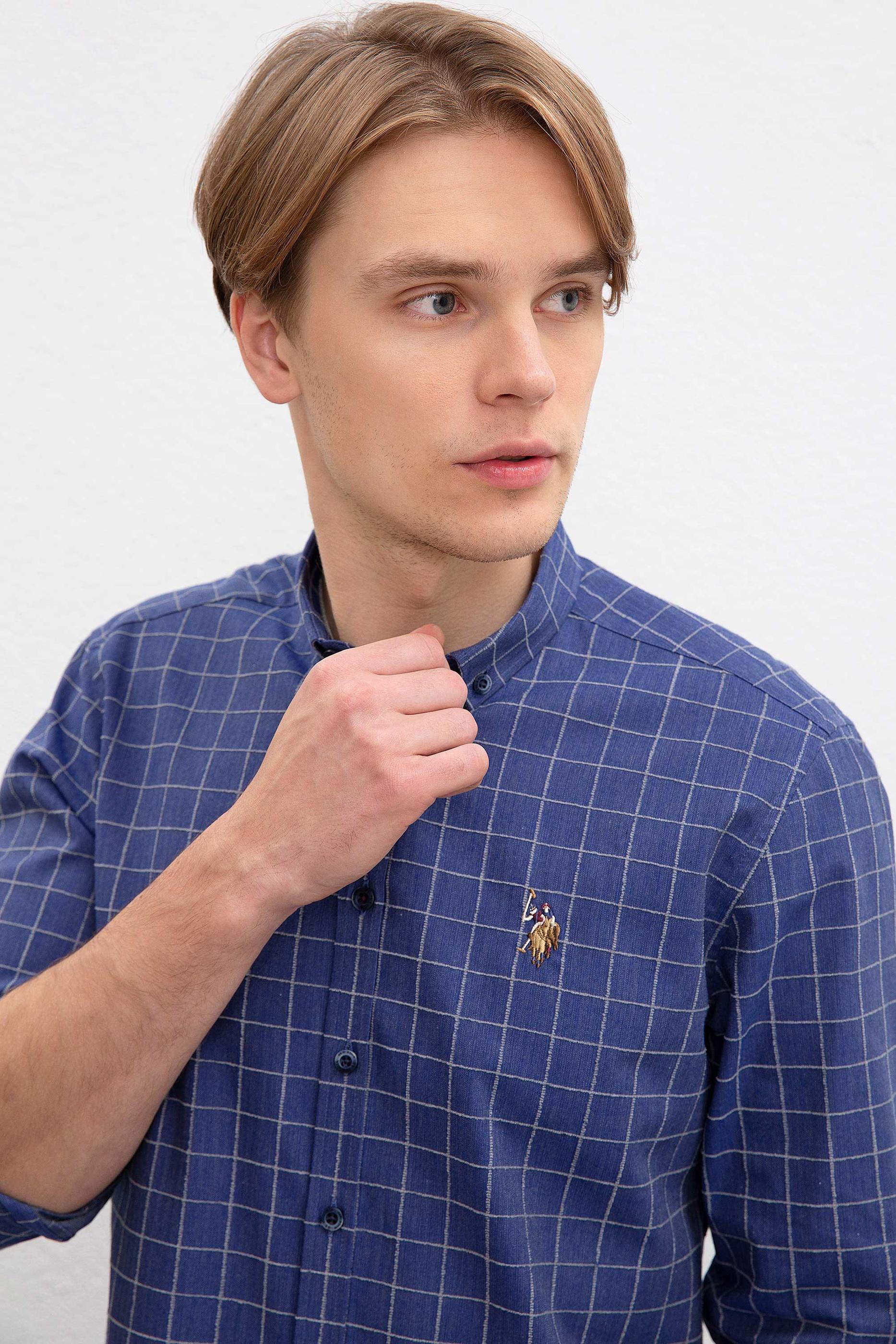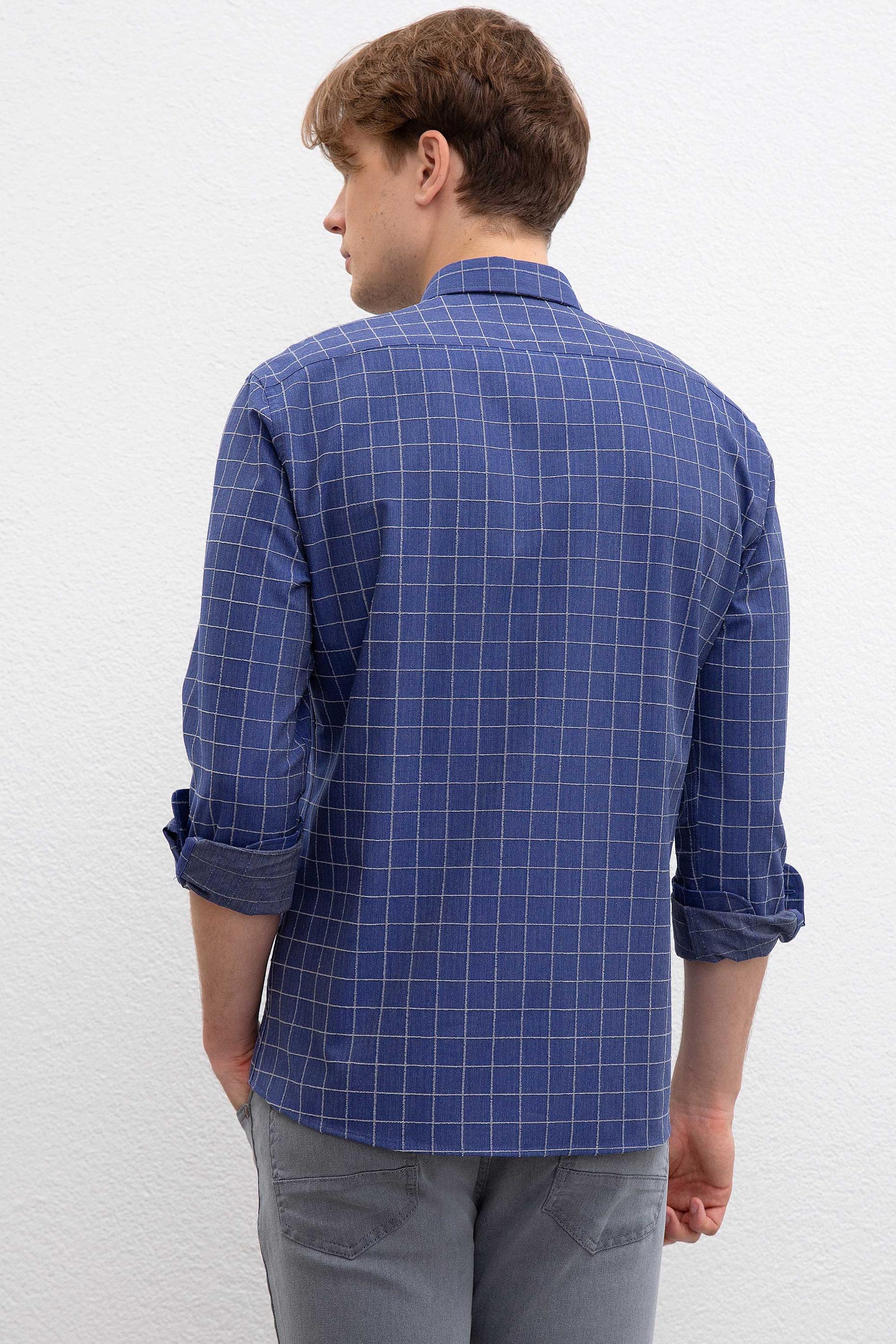 Erkek İndigo Uzun Kollu Gömlek