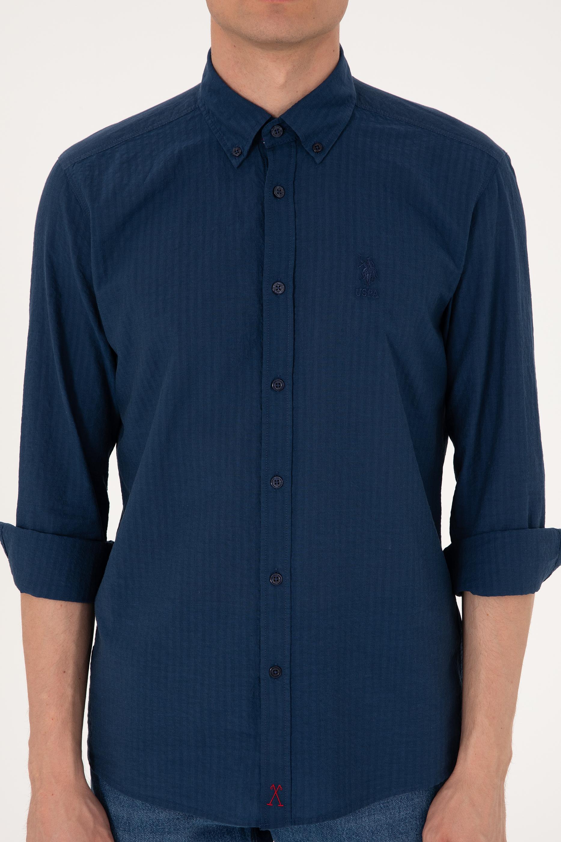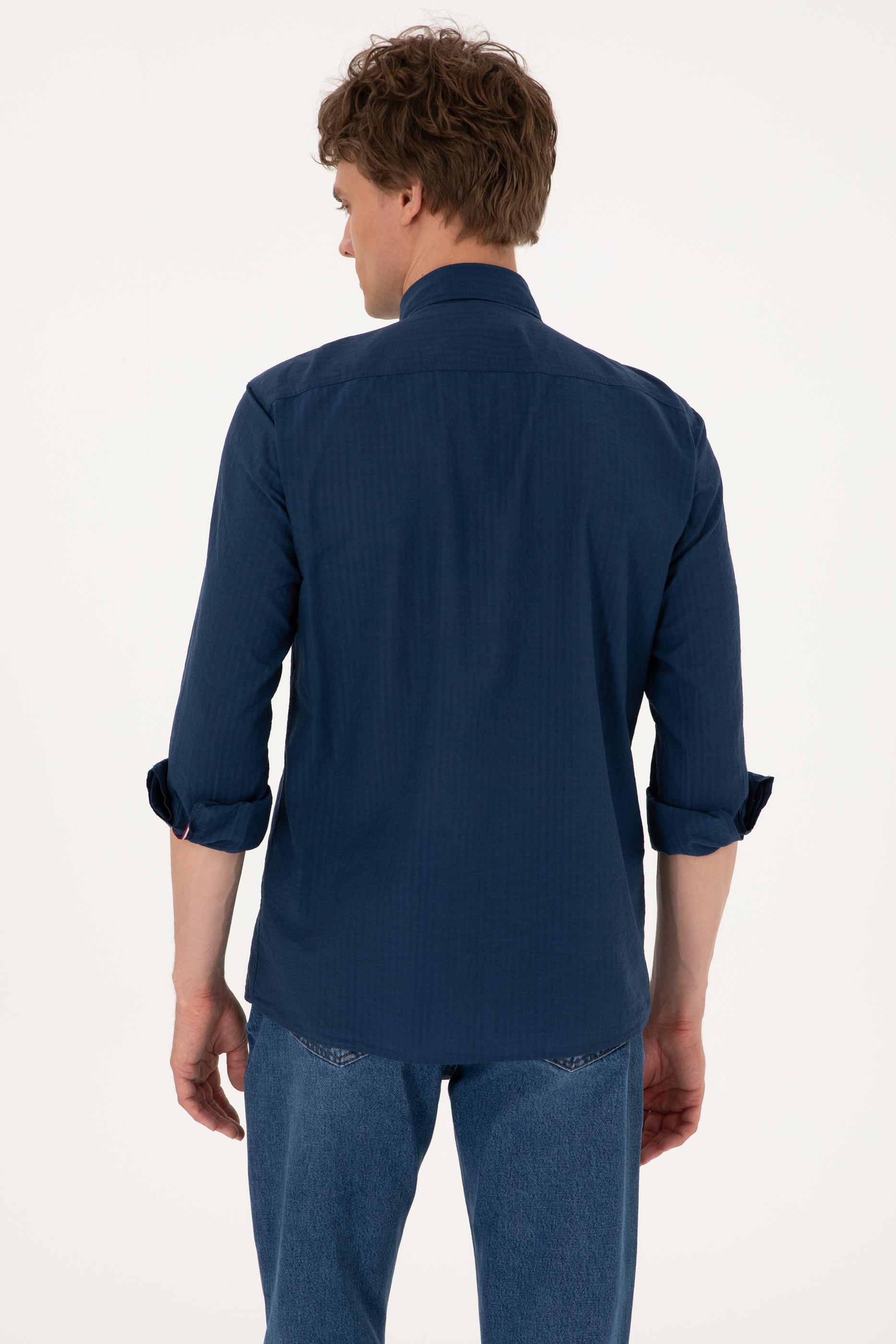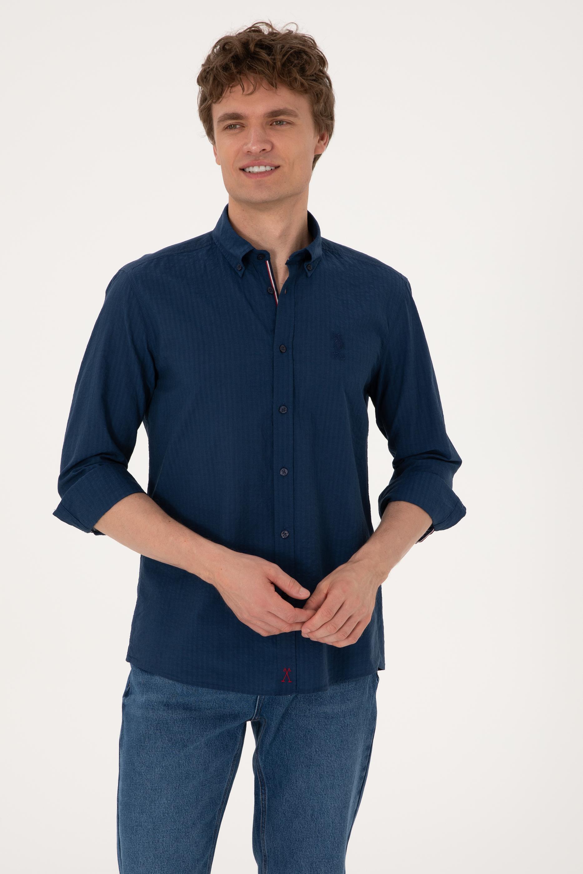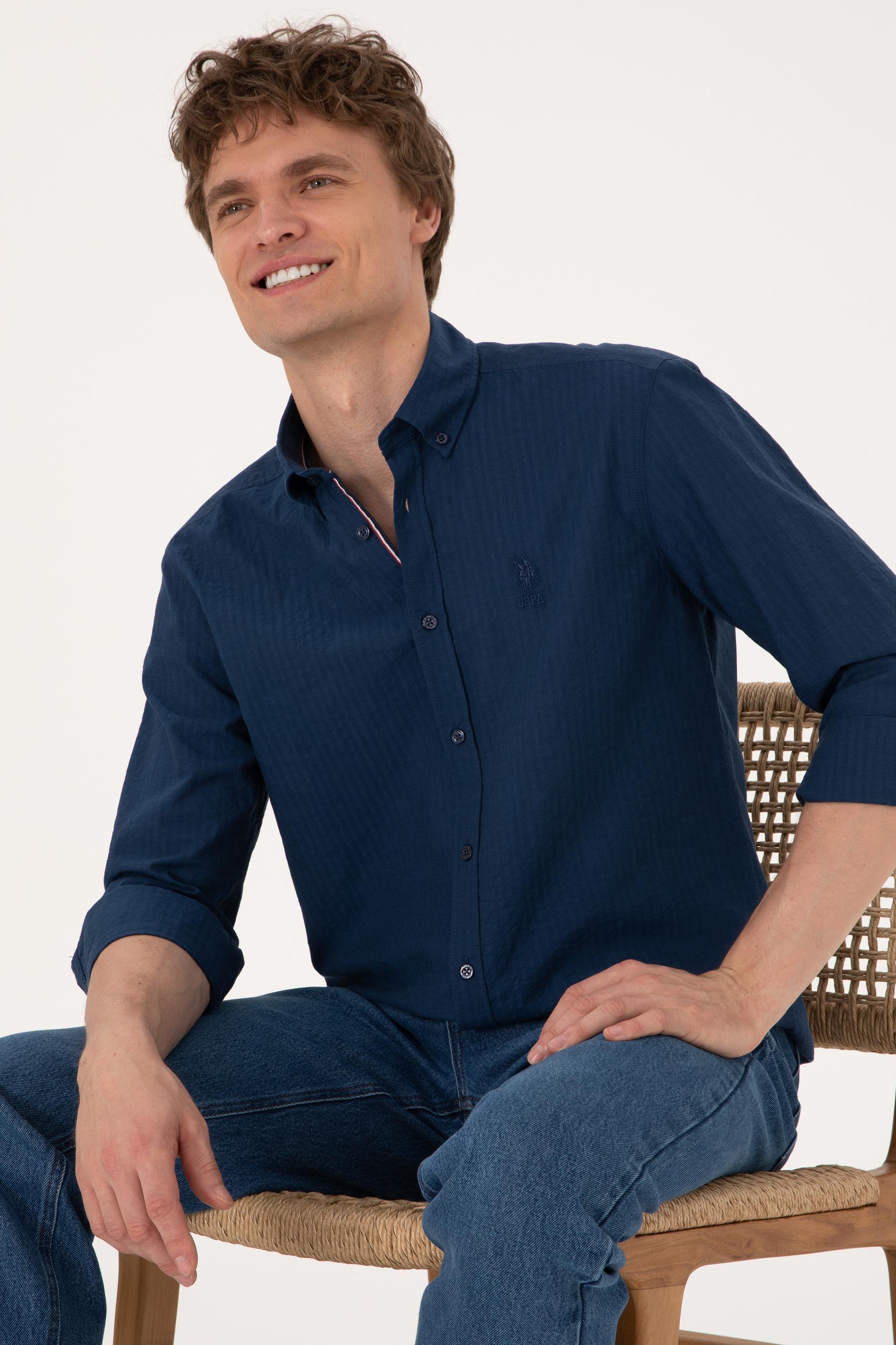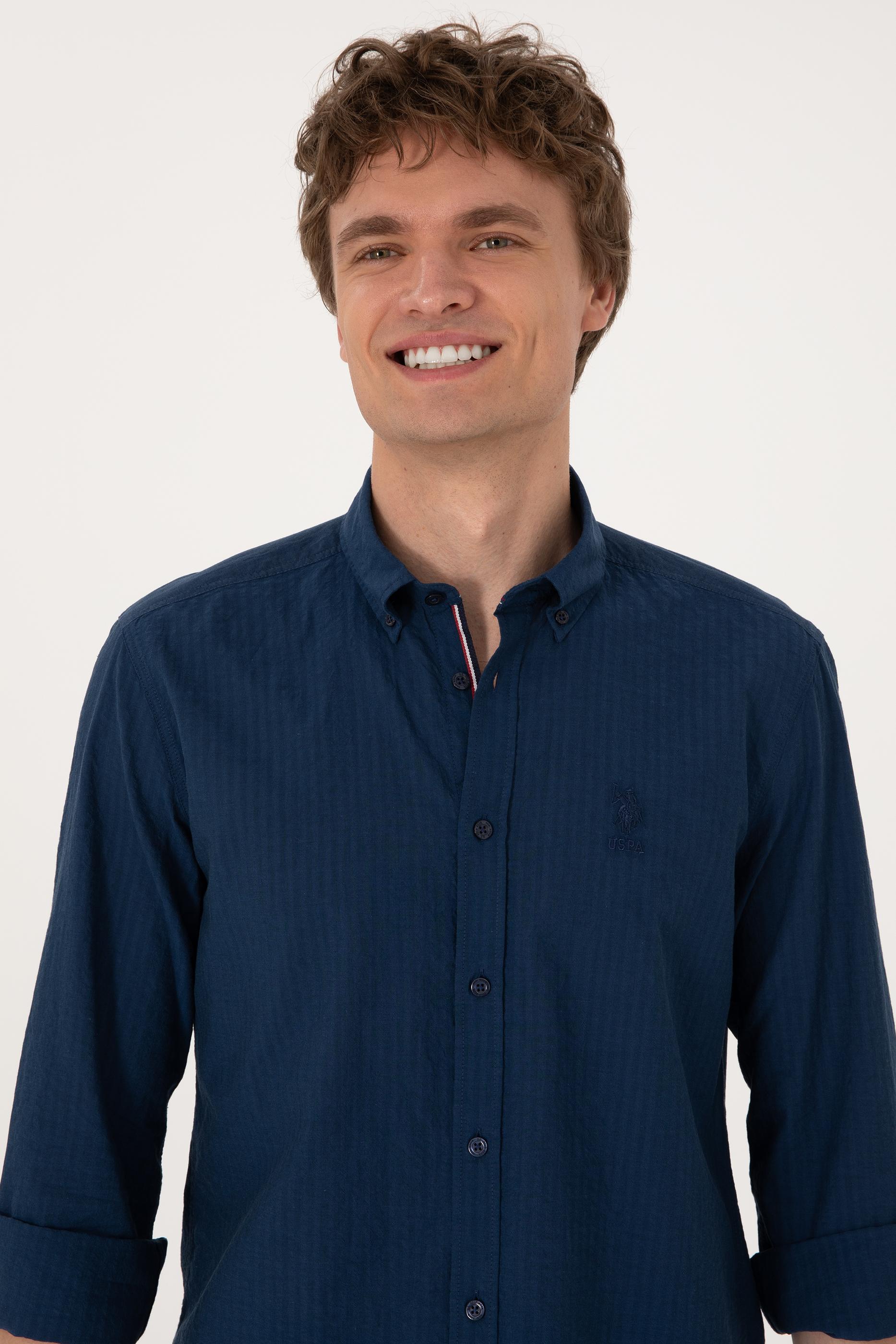 Erkek İndigo Uzun Kollu Gömlek